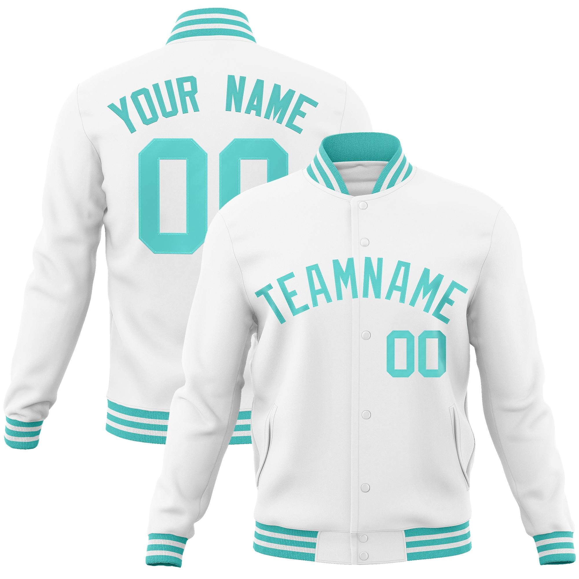 Custom White Aqua Classic Style Varsity Full-Snap Letterman Jacket
