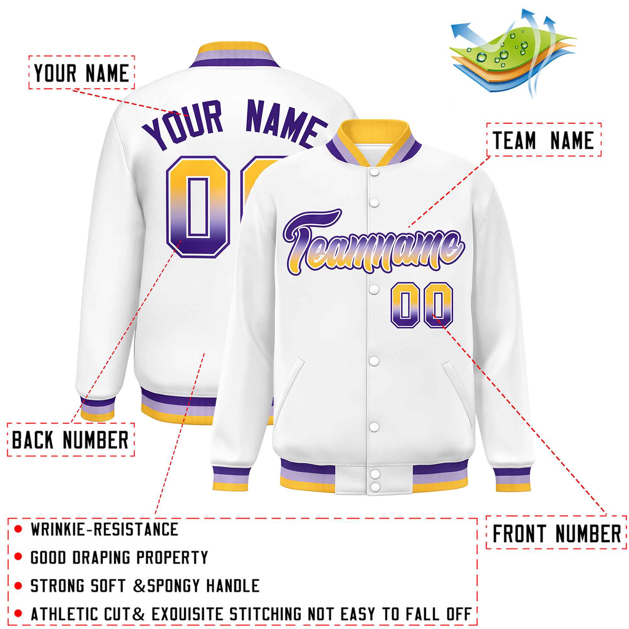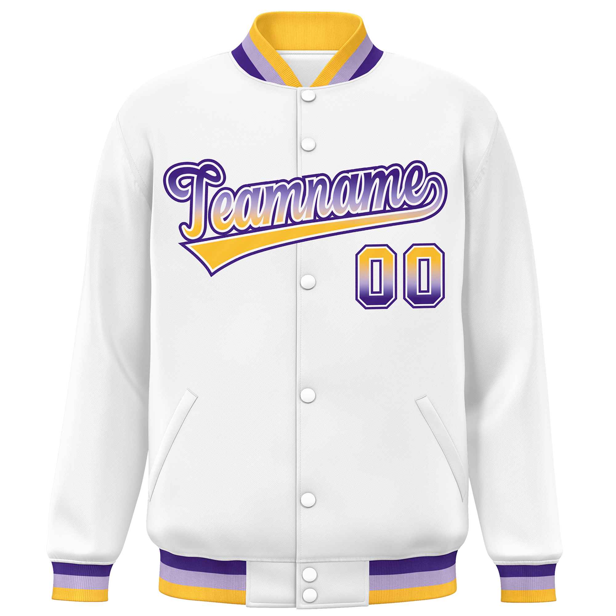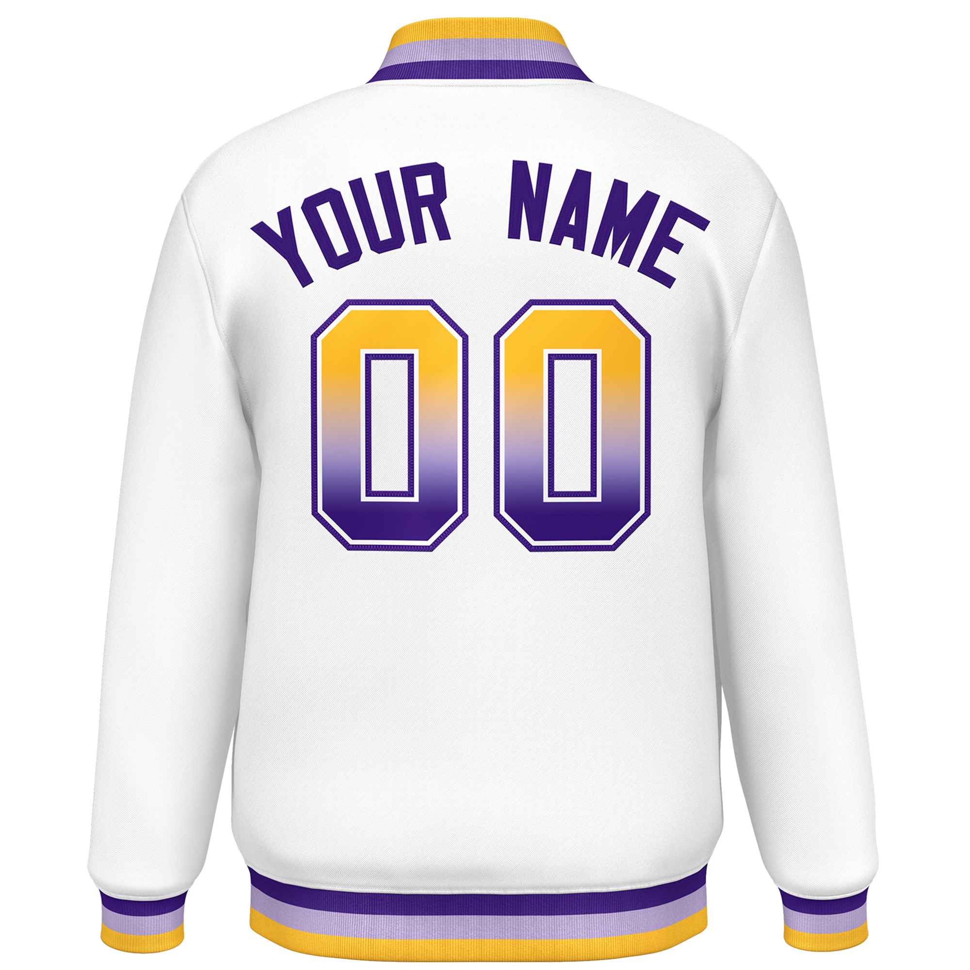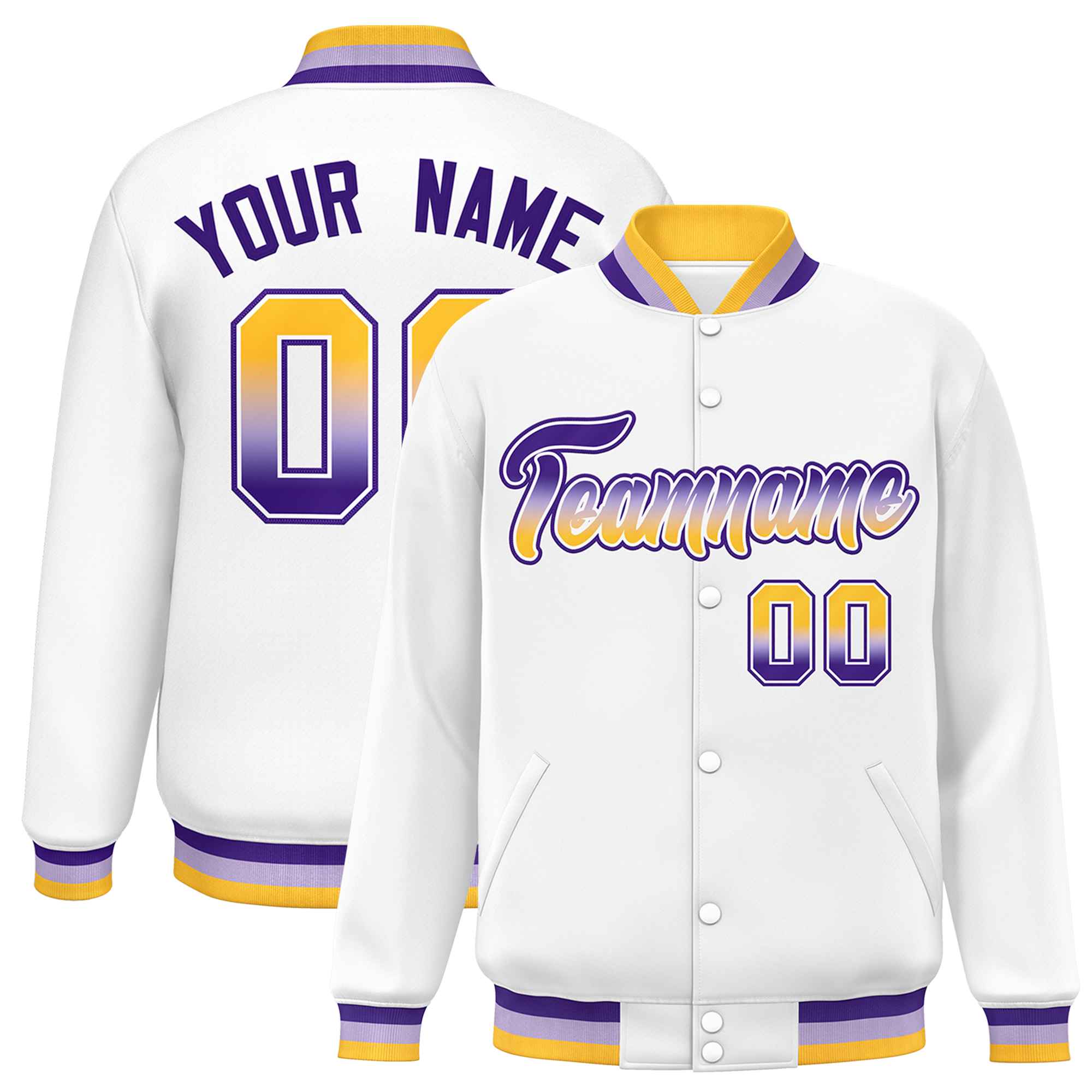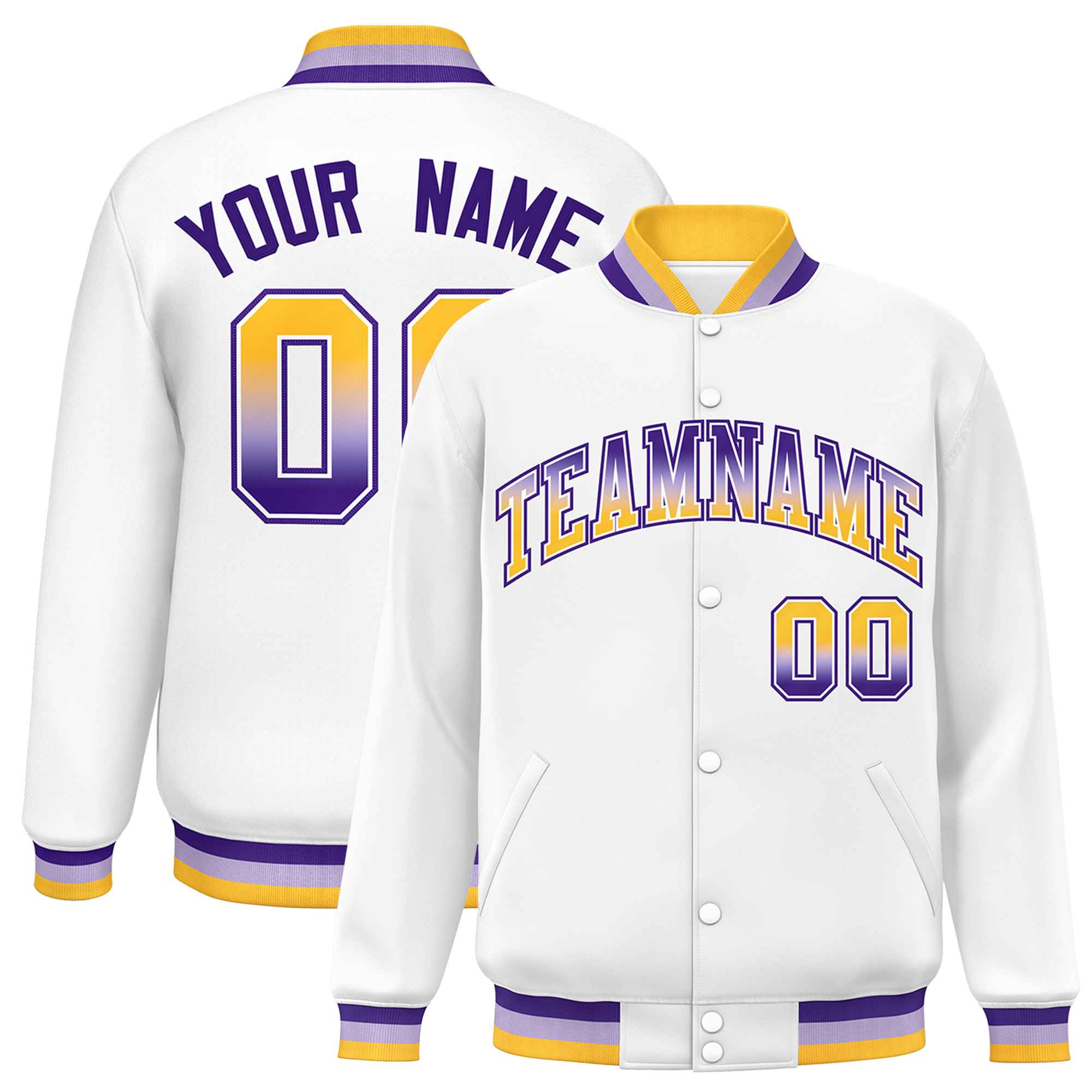 Custom White Varsity Full-Snap Gradient Font Letterman Baseball Jacket