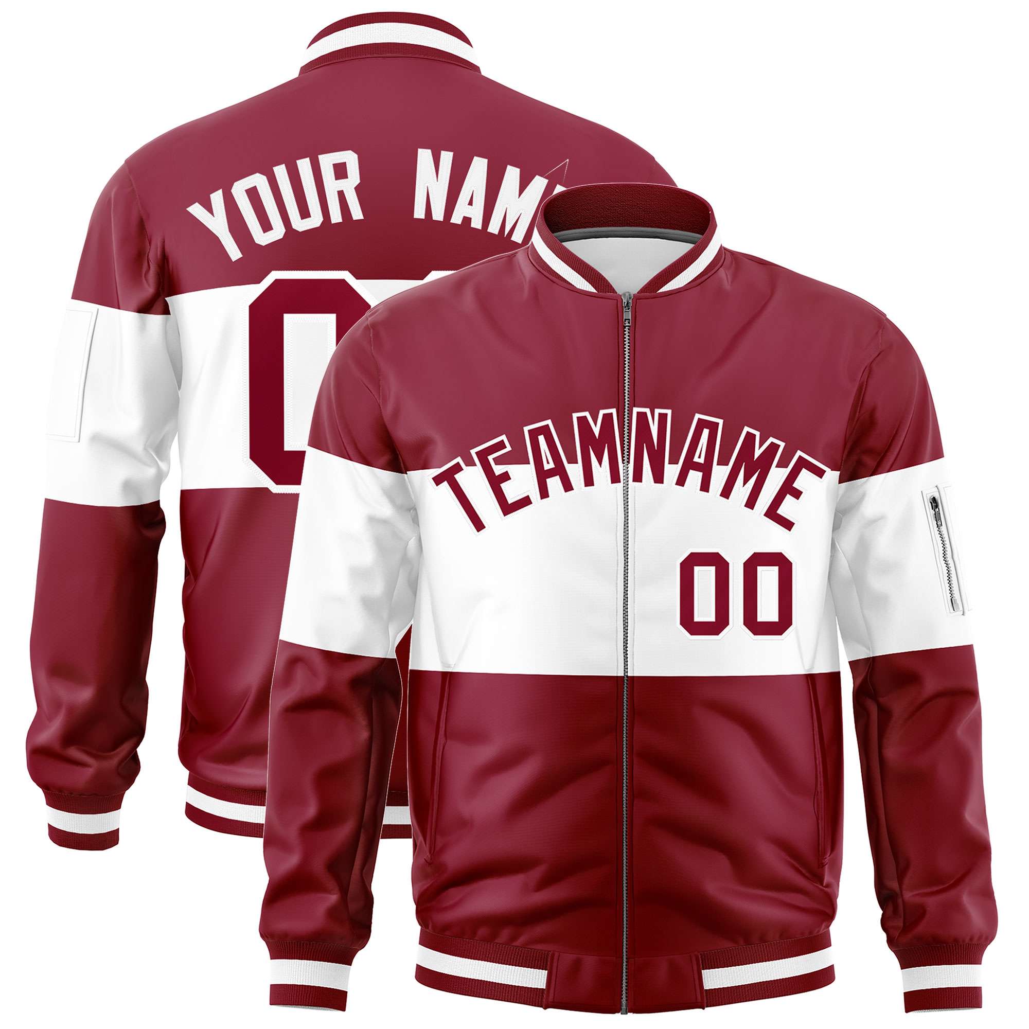 Custom Crimson White-Crimson Varsity Full-Zip Color Block Letterman Bomber Jacket