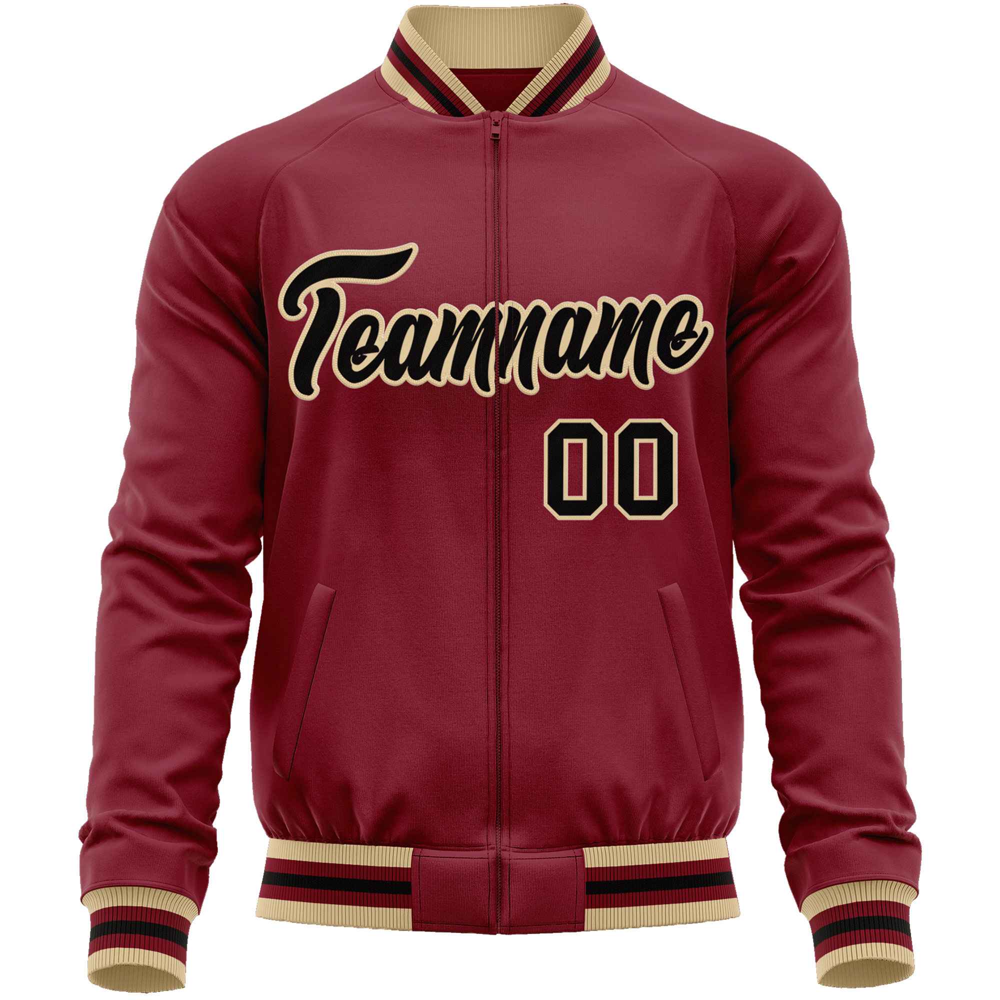 Custom Crimson Black Classic Style Varsity Full-Zip Letterman Baseball Jacket