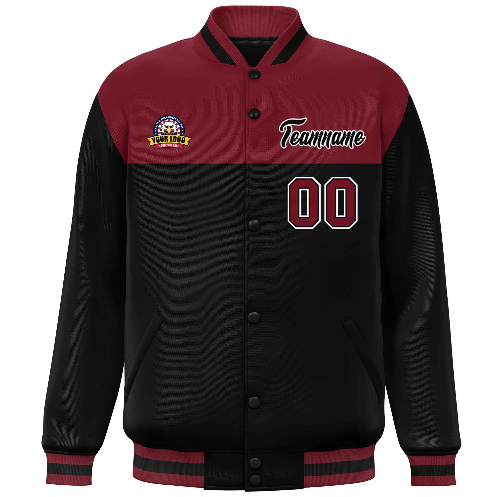 Custom Crimson Black-White Varsity Full-Snap Color Block Lettermen Baseball Jacket