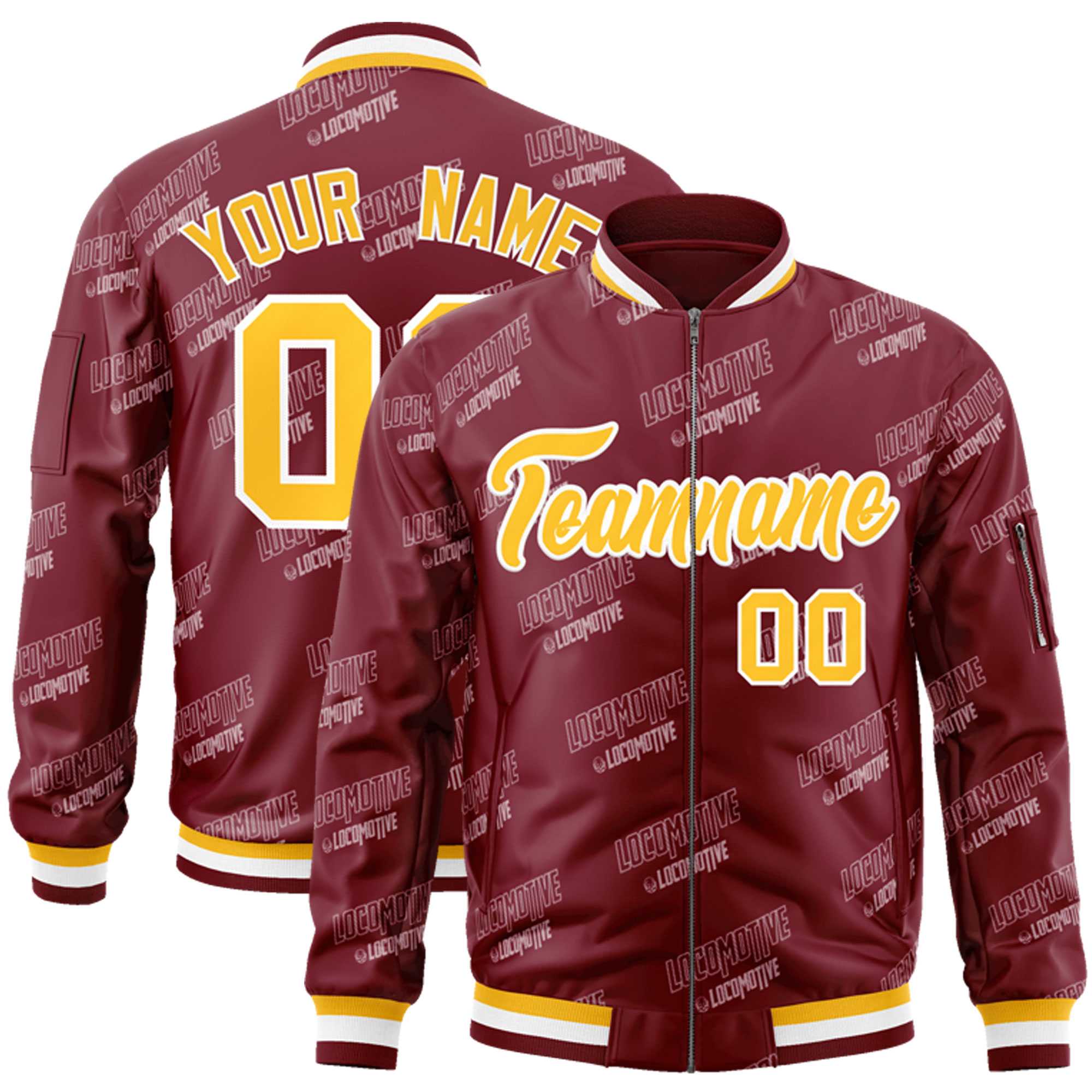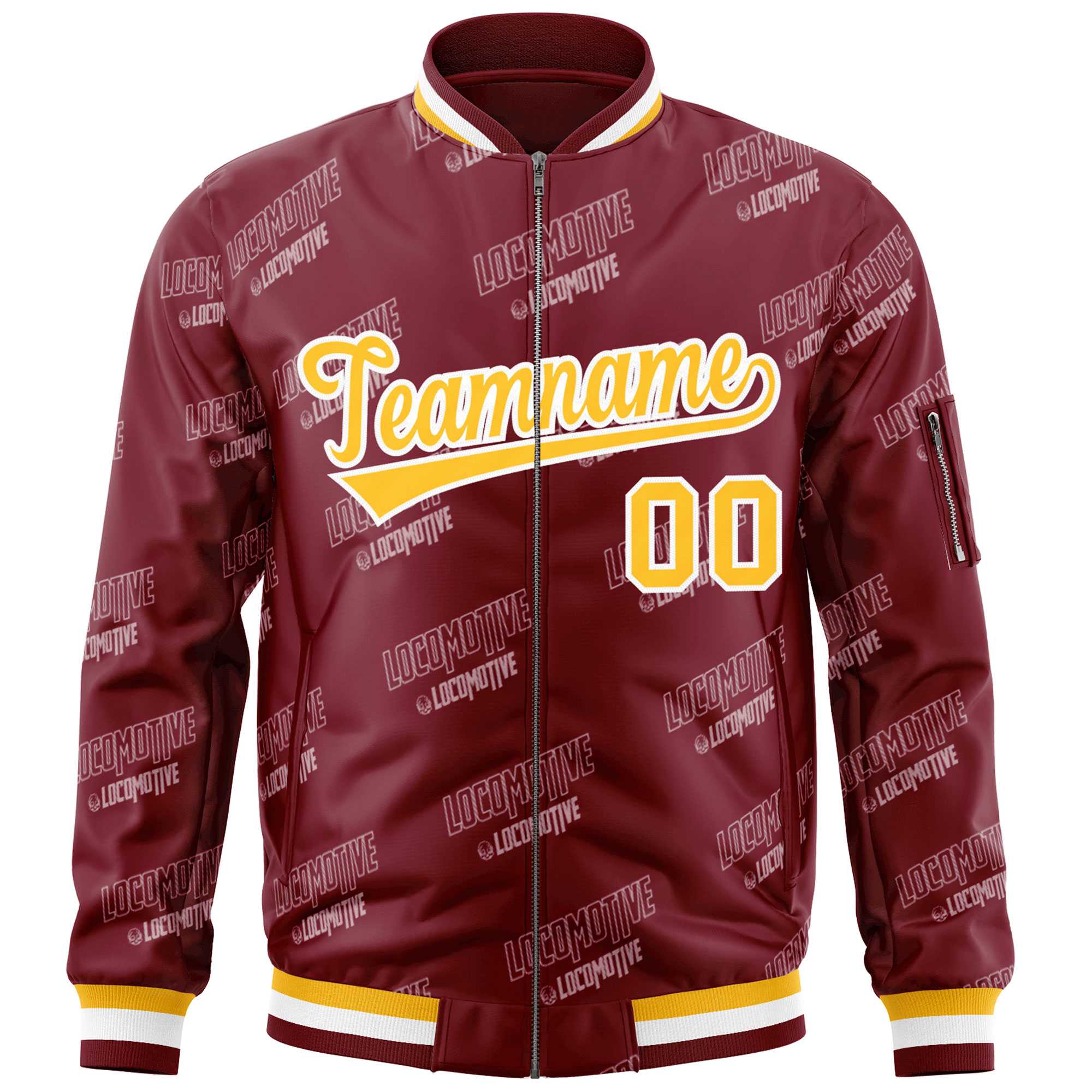 Custom Crimson Gold-White Letter Full-Zip Varsity Bomber Jacket