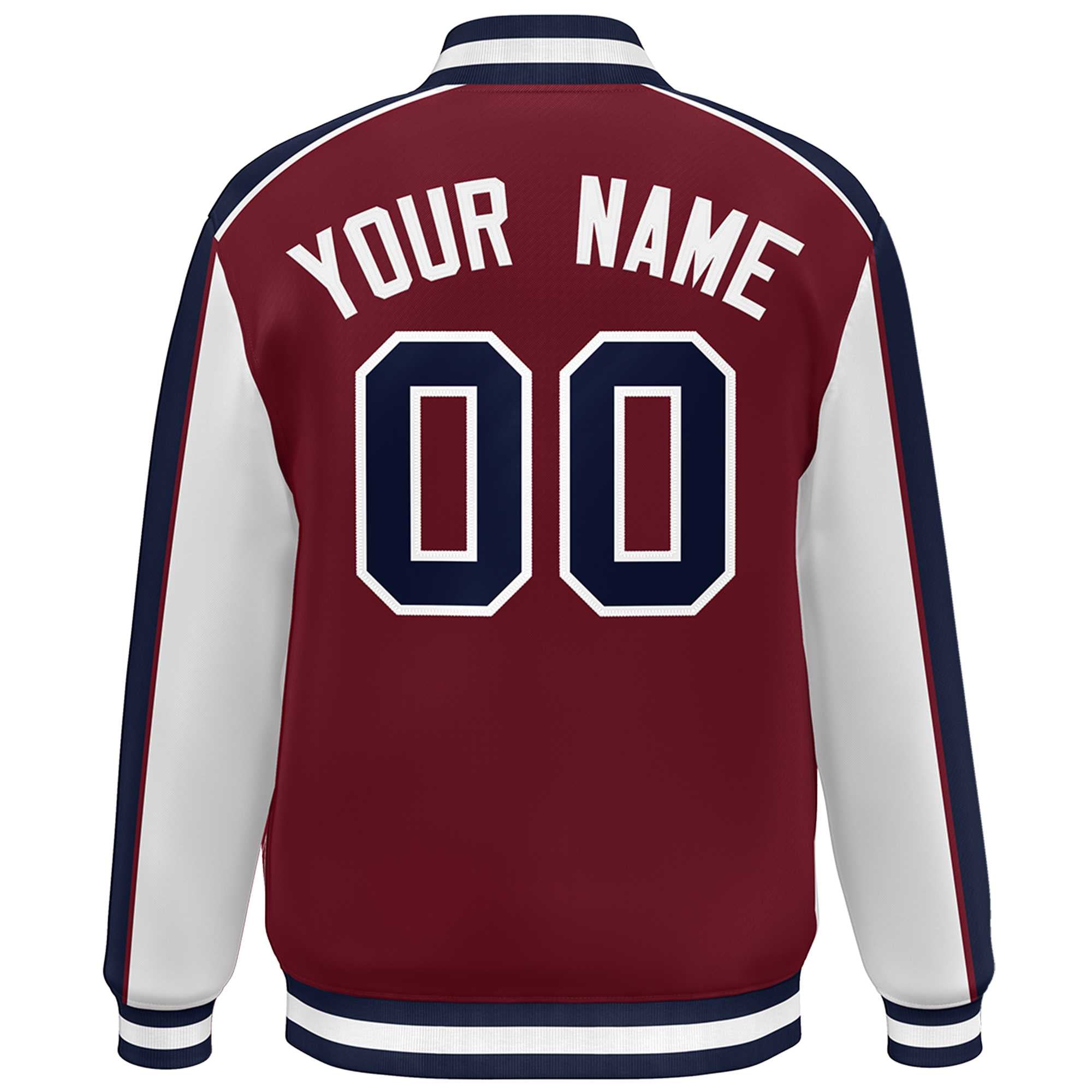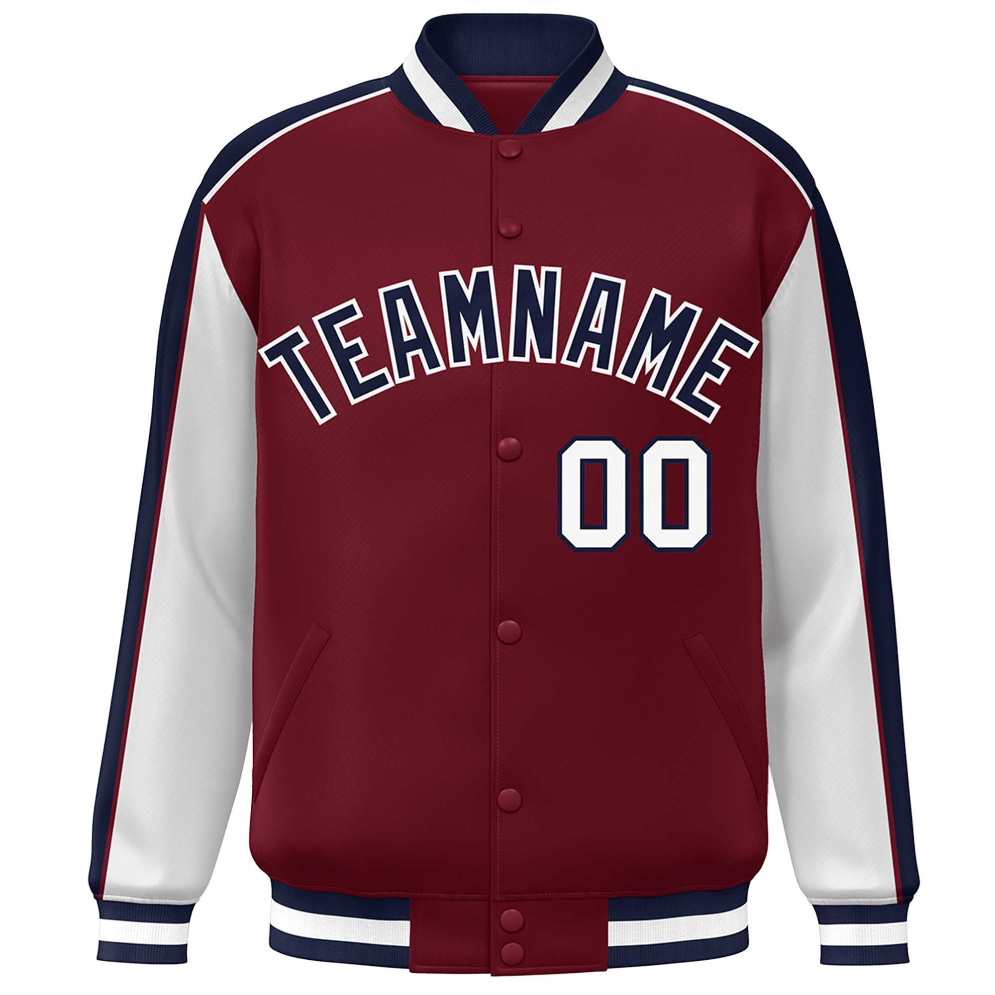 Custom Crimson White-Navy Color Block Bomber Varsity Full-Snap Baseball Jacket