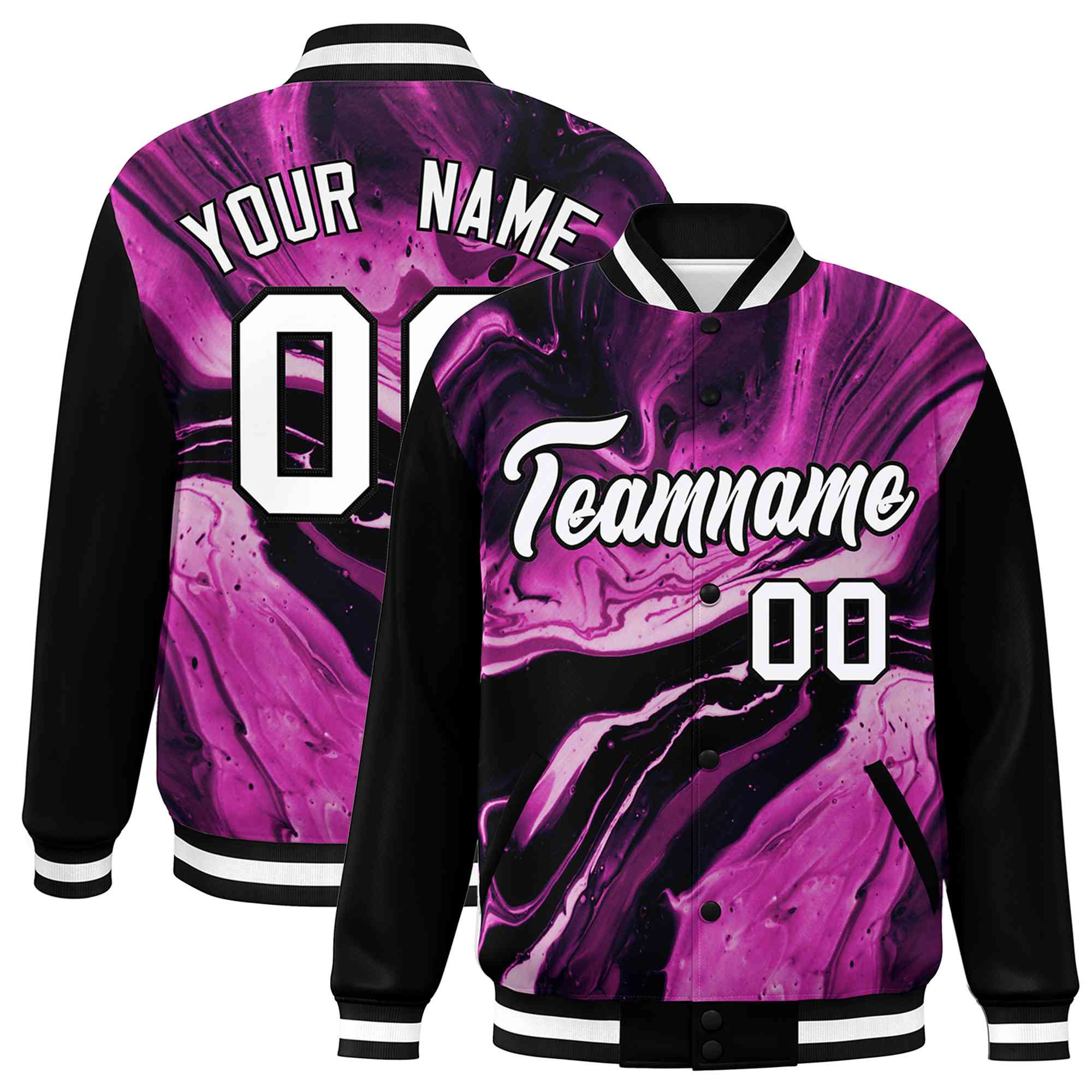 Custom Black White Tie Dye Ink Paint Varsity Graffiti Pattern Letterman Jacket