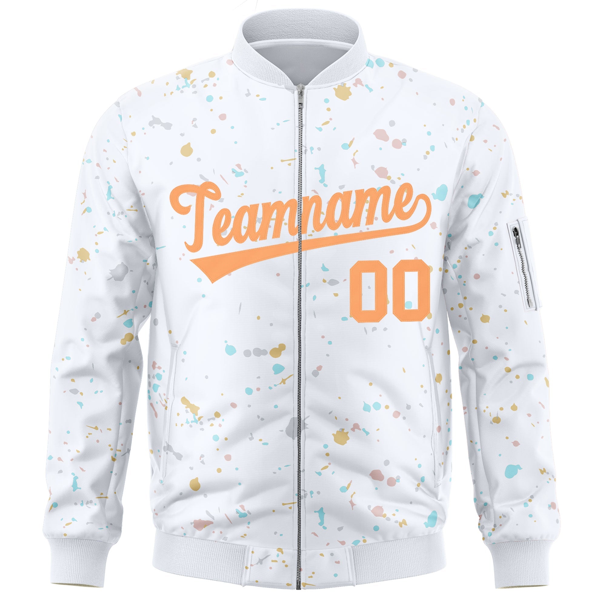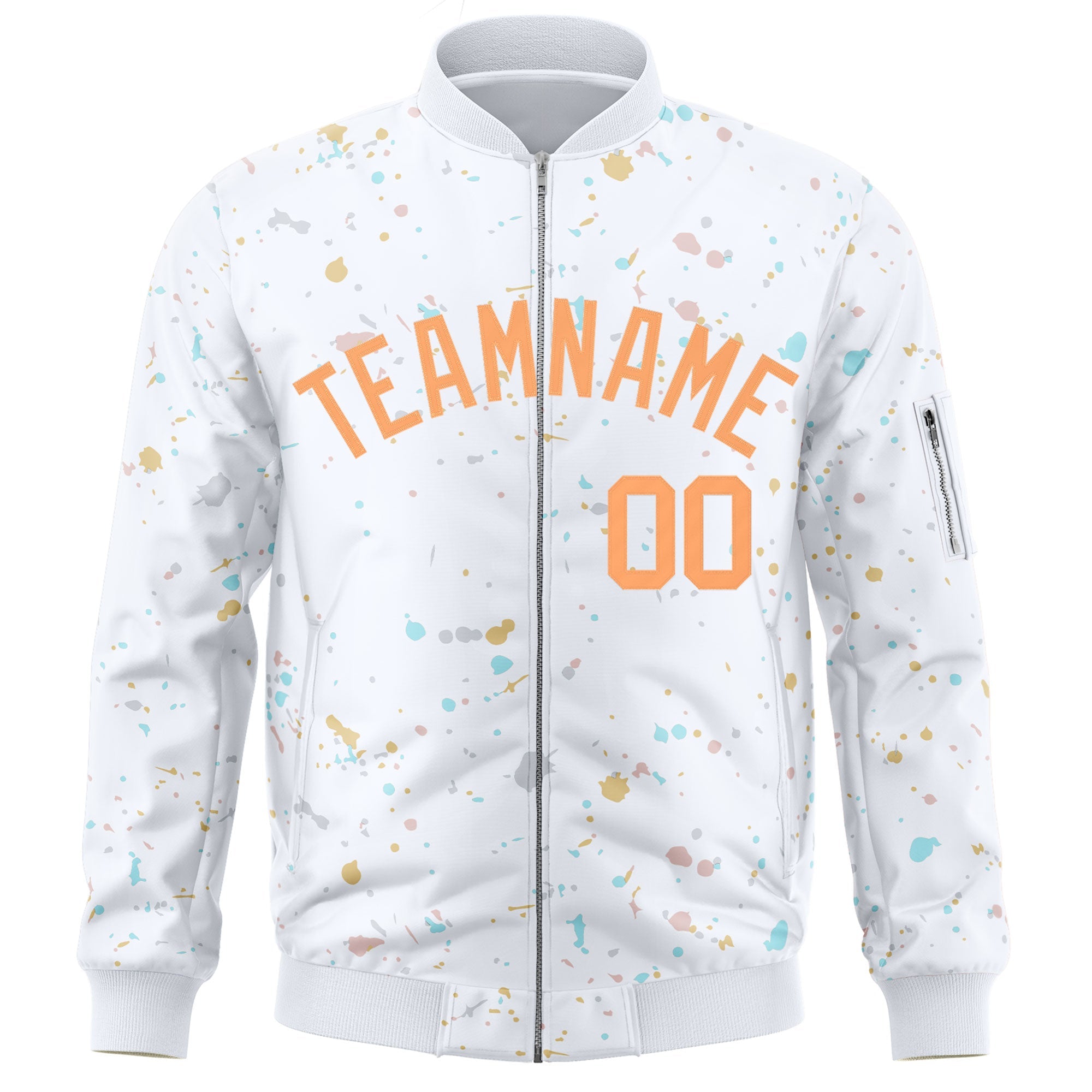Custom White Orange Varsity Full-Zip Splash Graffiti Pattern Letterman Jacket