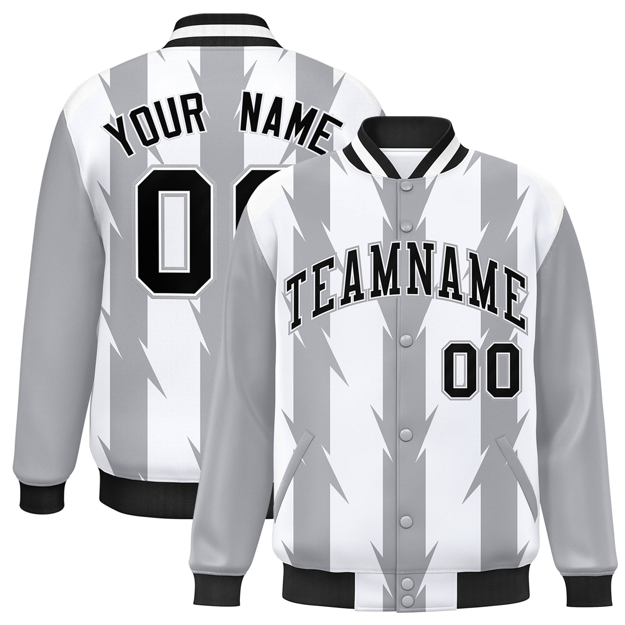 Custom White White Varsity Full-Snap Blade Pattern Raglan Sleeves Letterman Baseball Jacket