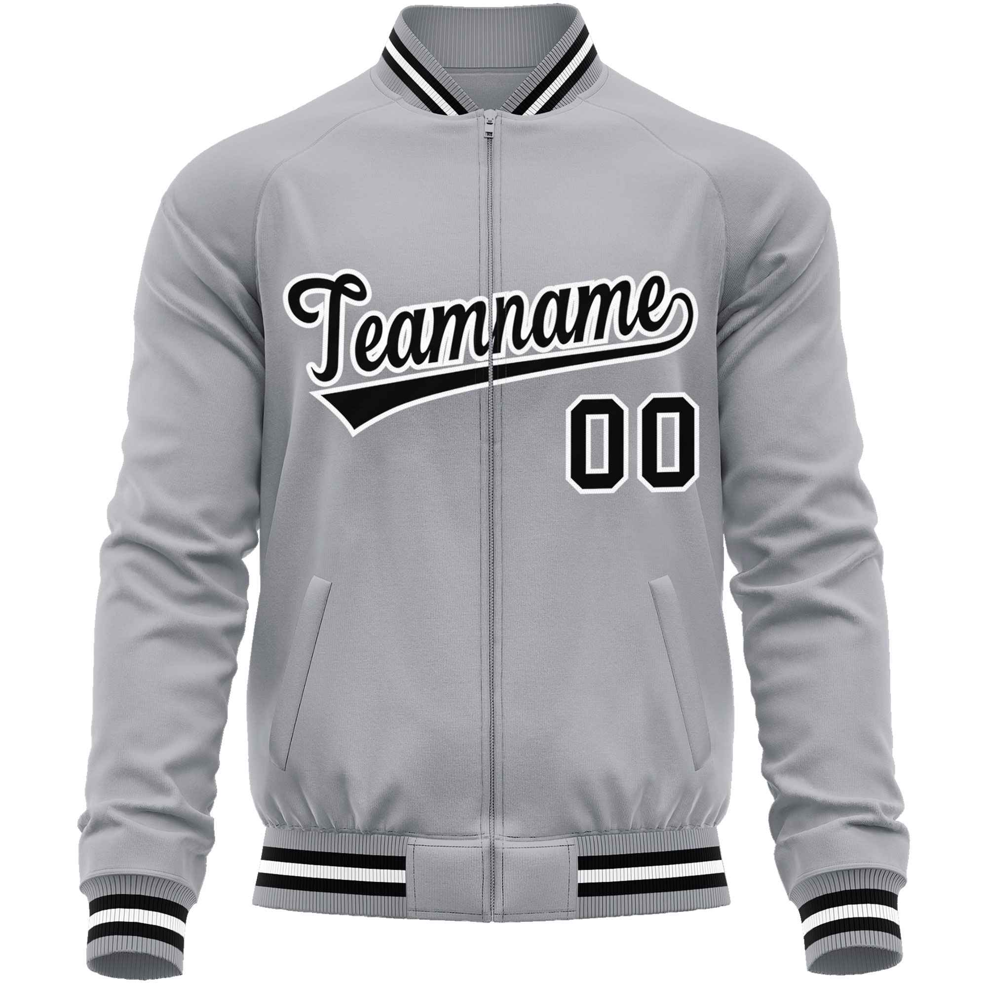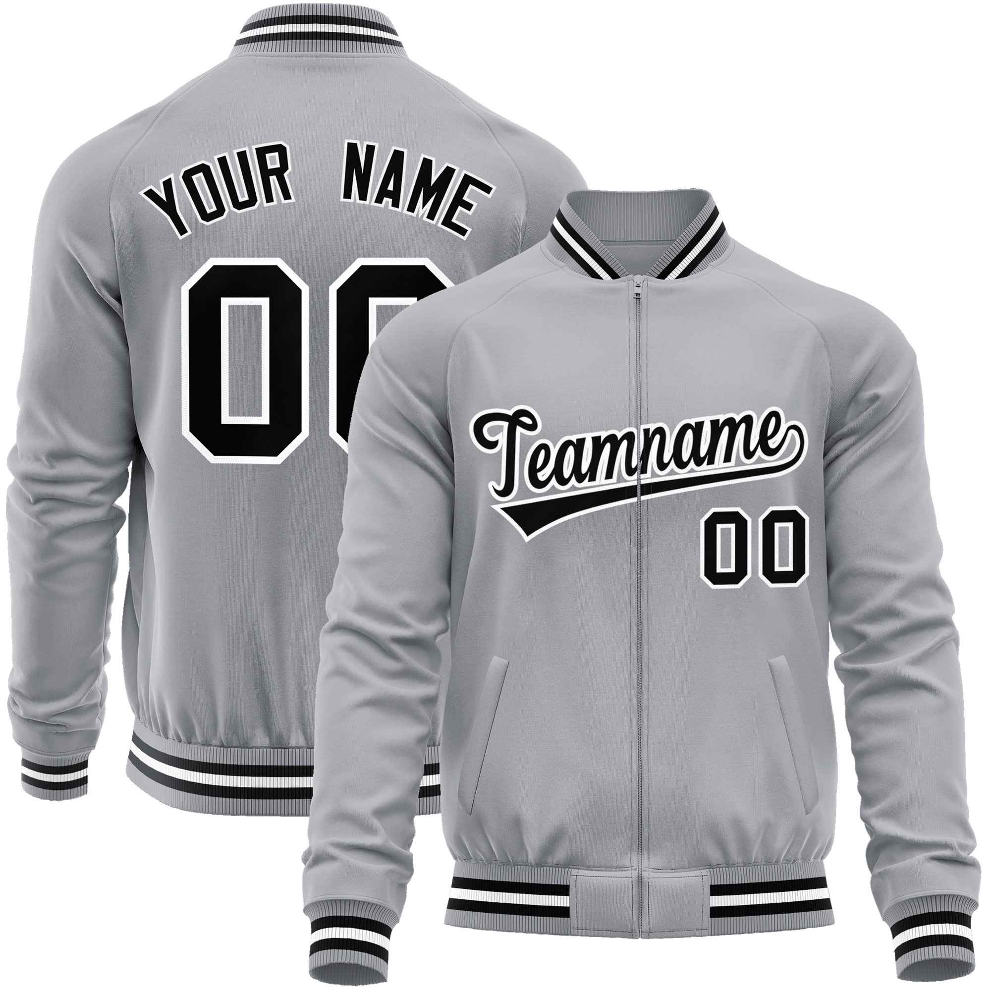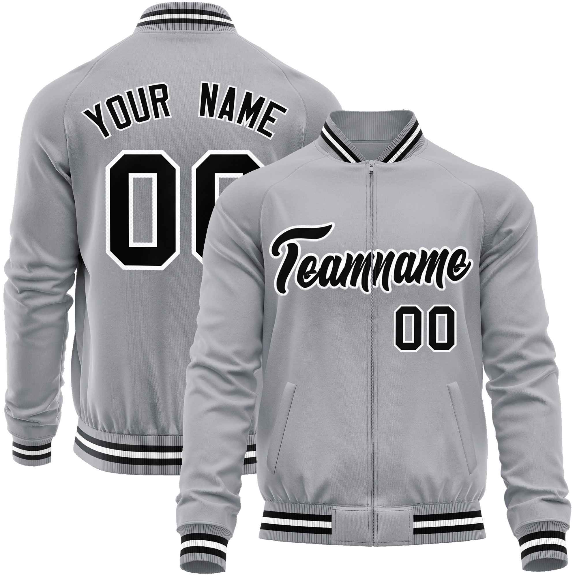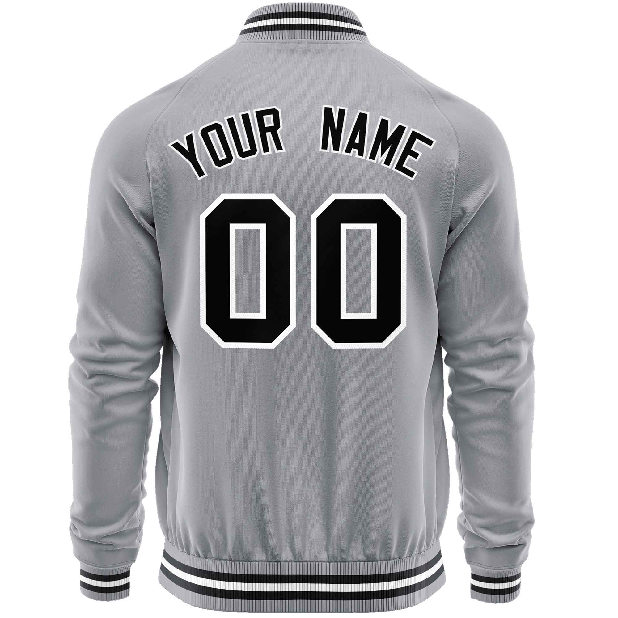 Custom Gray Black Classic Style Varsity Full-Zip Letterman Baseball Jacket