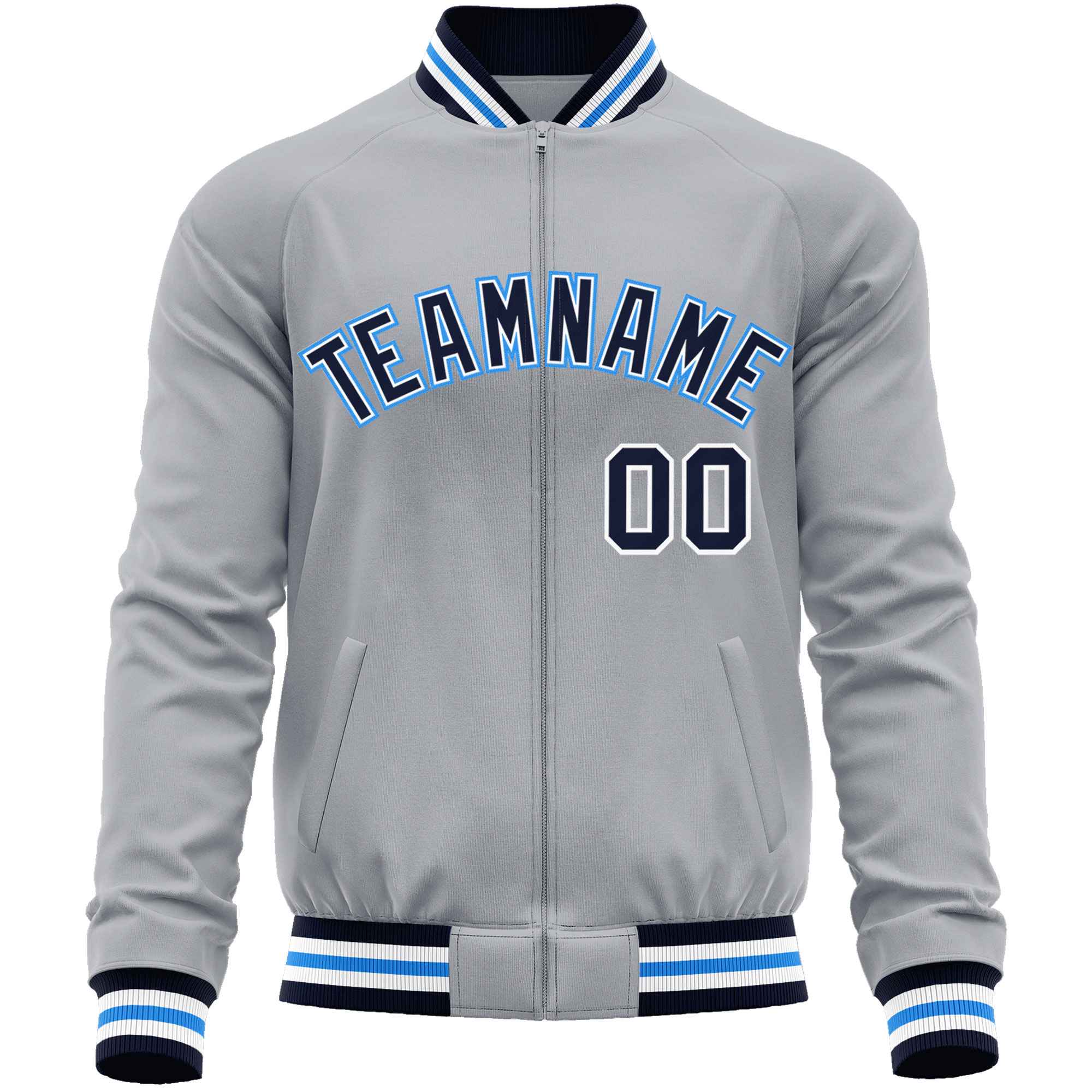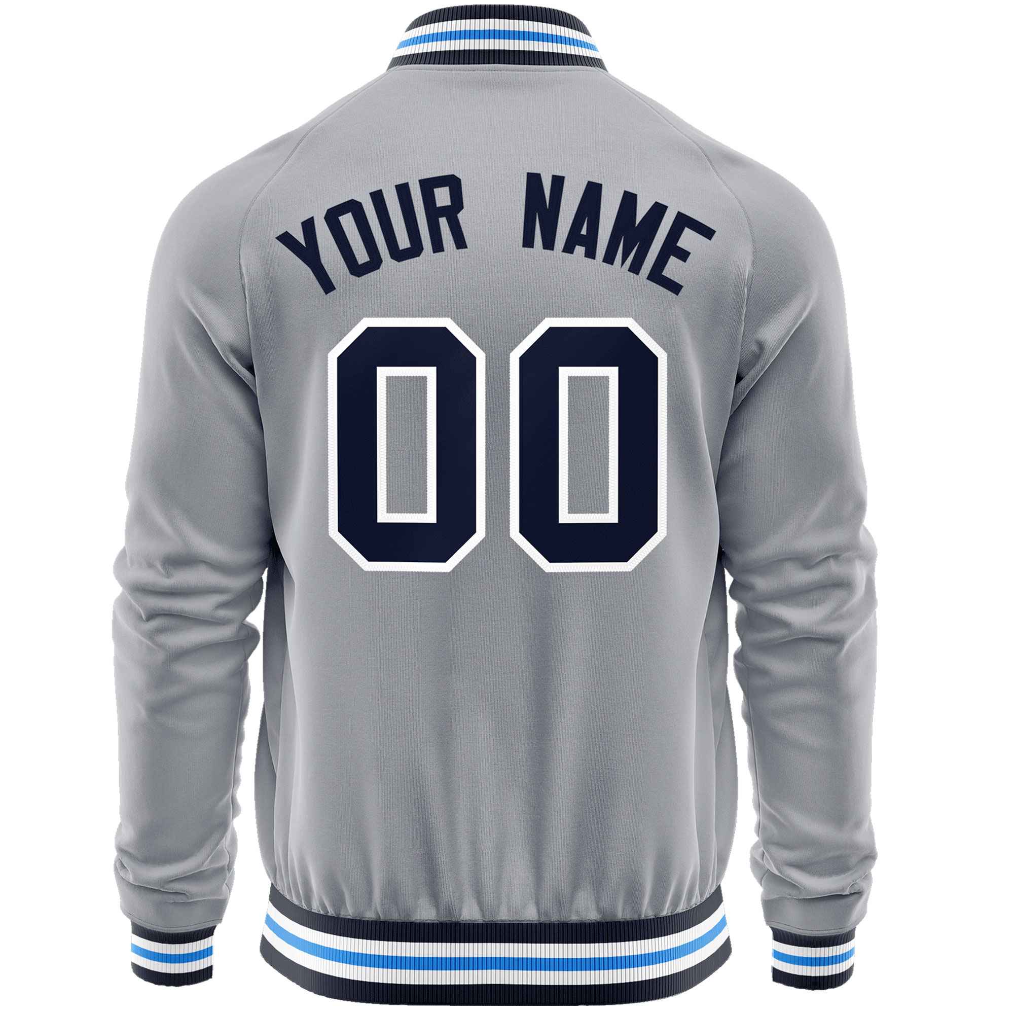 Custom Gray Navy Classic Style Varsity Full-Zip Letterman Baseball Jacket