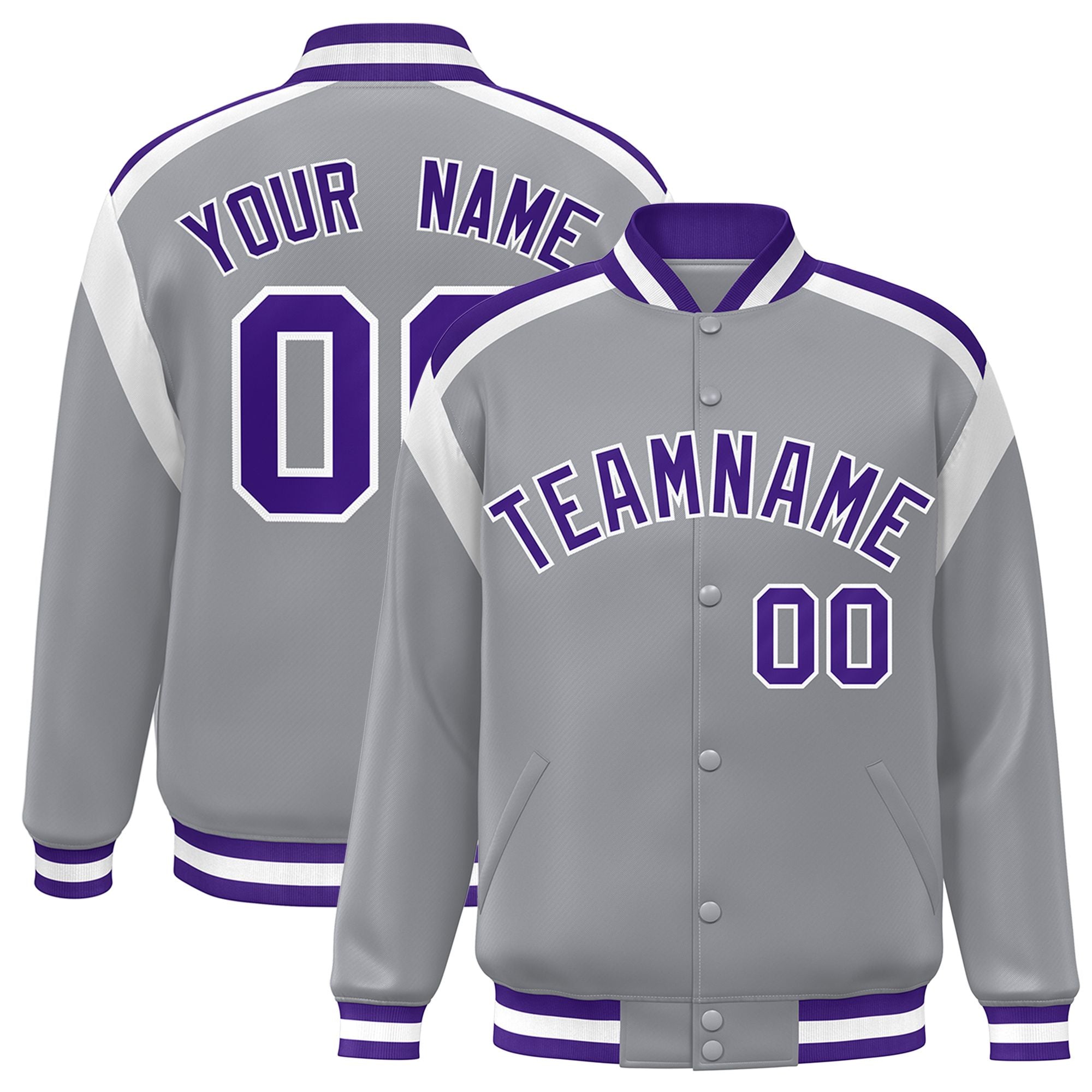 Custom Gray Varsity Full-Snap Color Block Letterman Jacket
