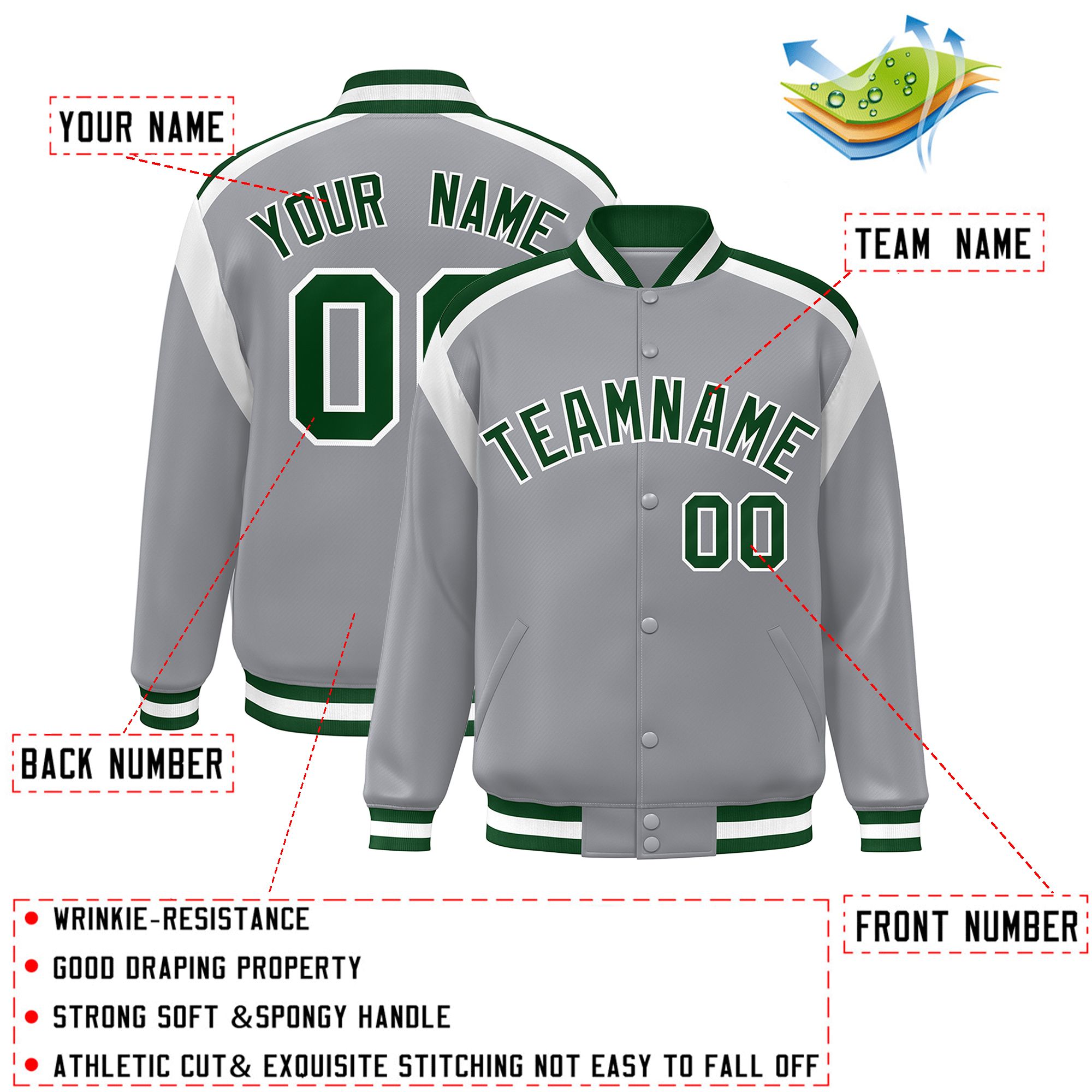 Custom Gray Varsity Full-Snap Color Block Letterman Jacket