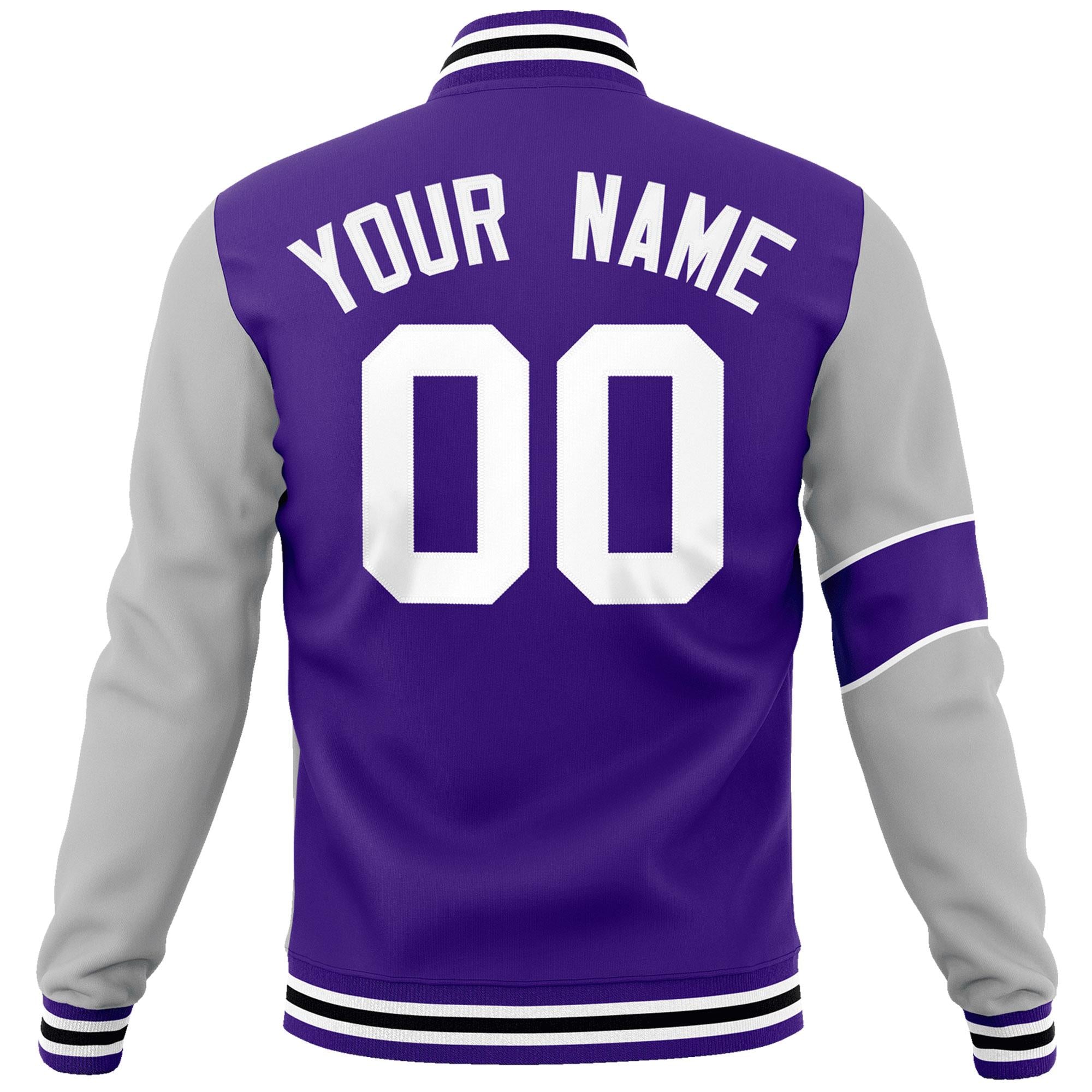 Custom Purple Gray-White Letterman Two Tone Full-Snap Split Fashion Jacket