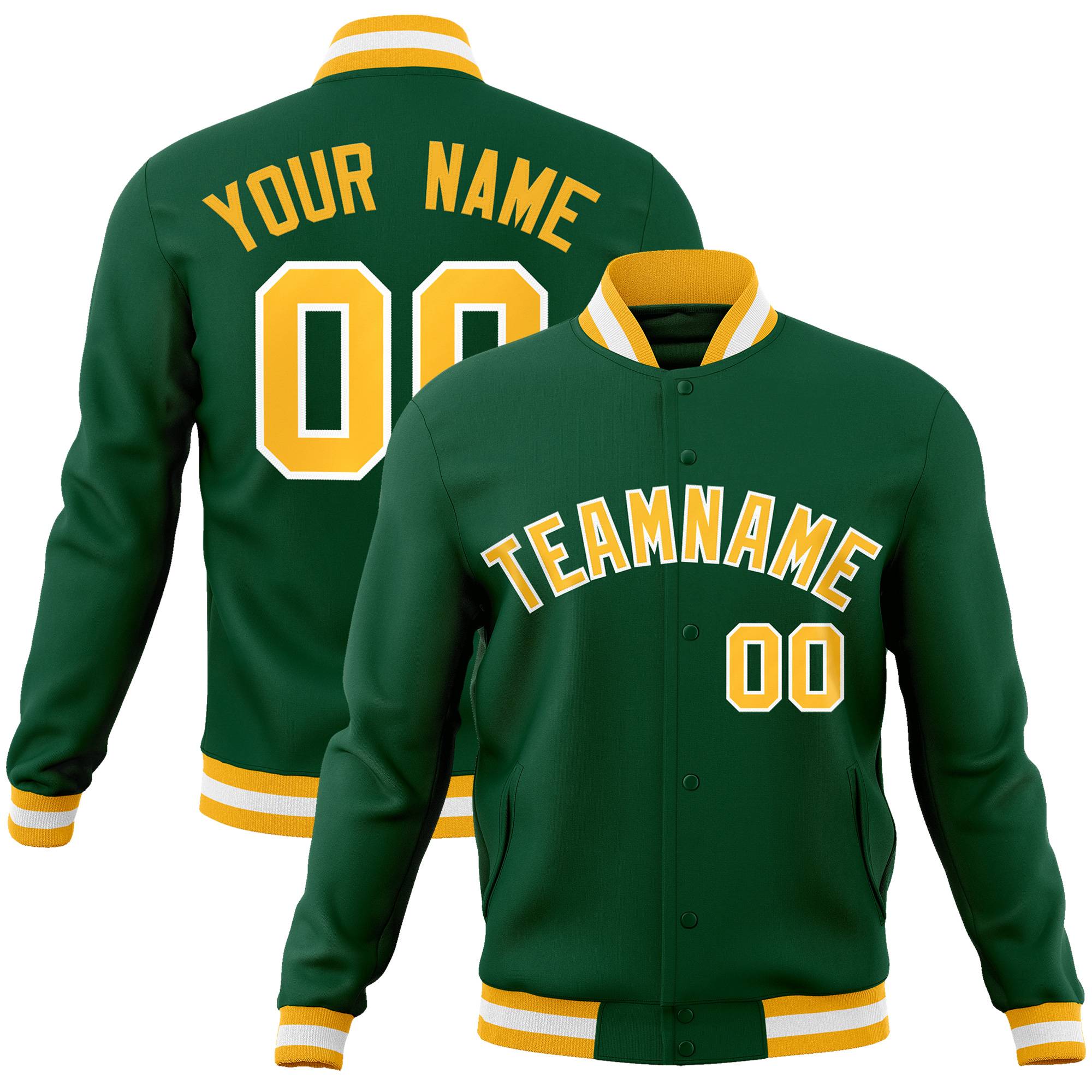 Custom Green Gold-White Classic Style Varsity Full-Snap Letterman Jacket