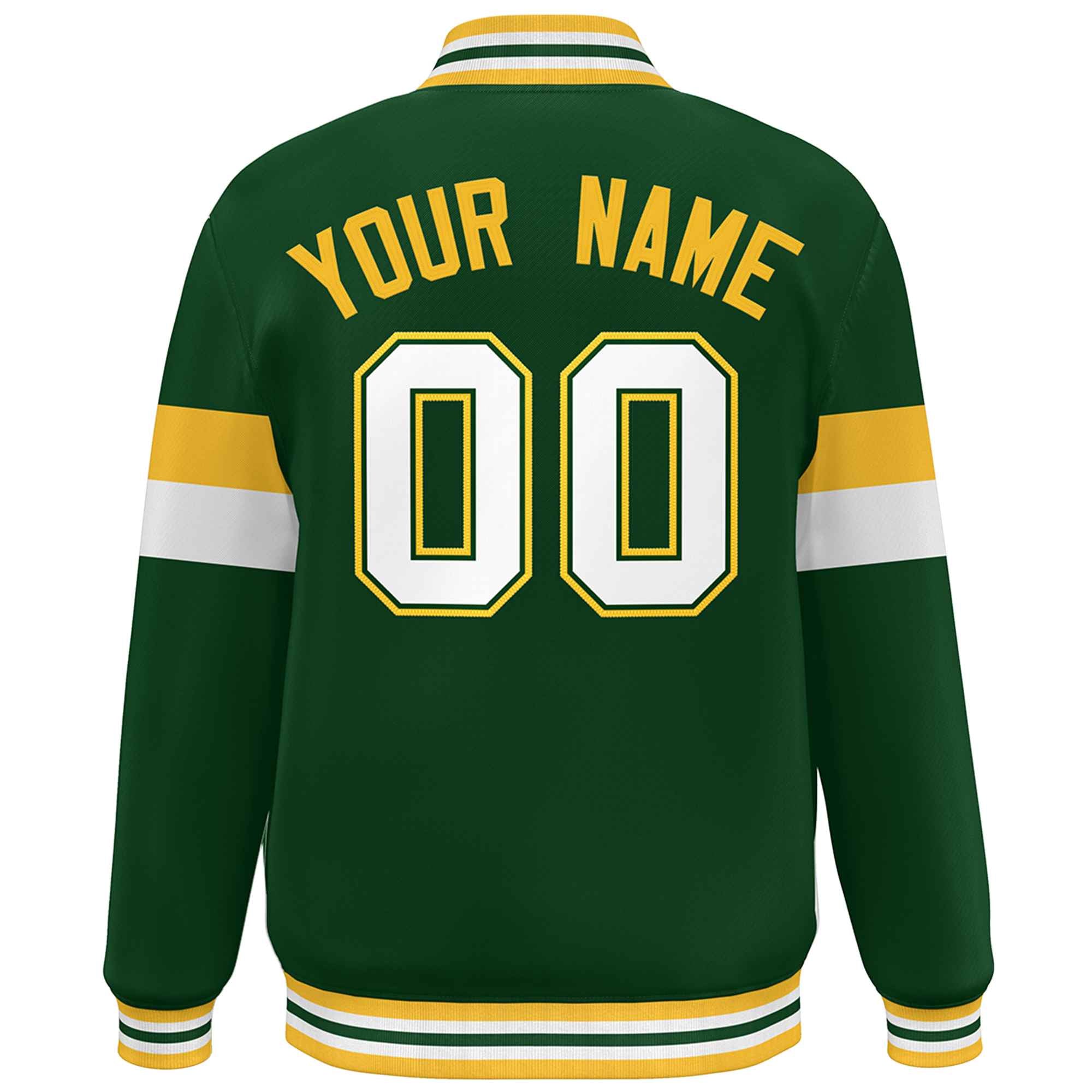 Custom Green White-Gold Color Block Bomber Varsity Full-Snap Baseball Jacket