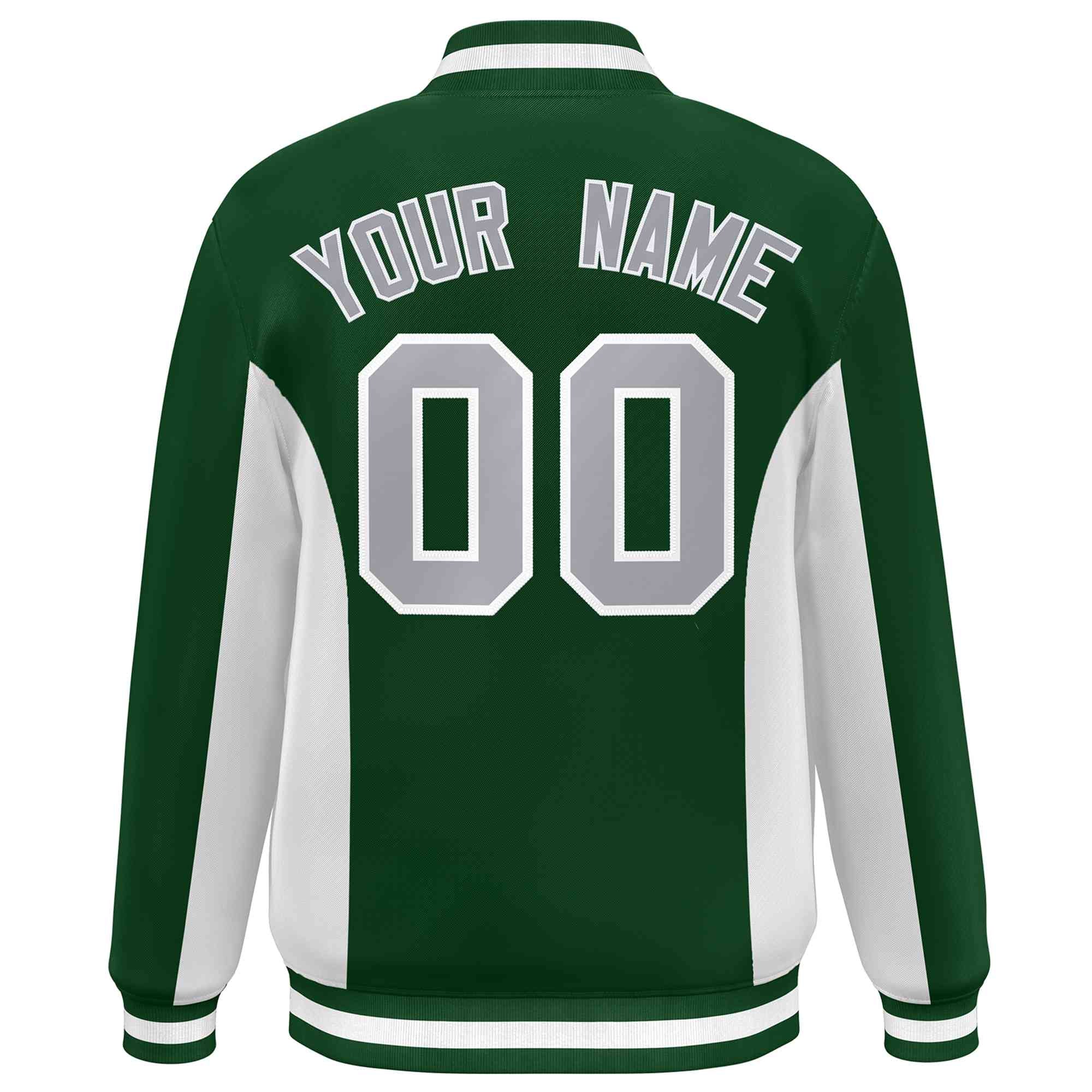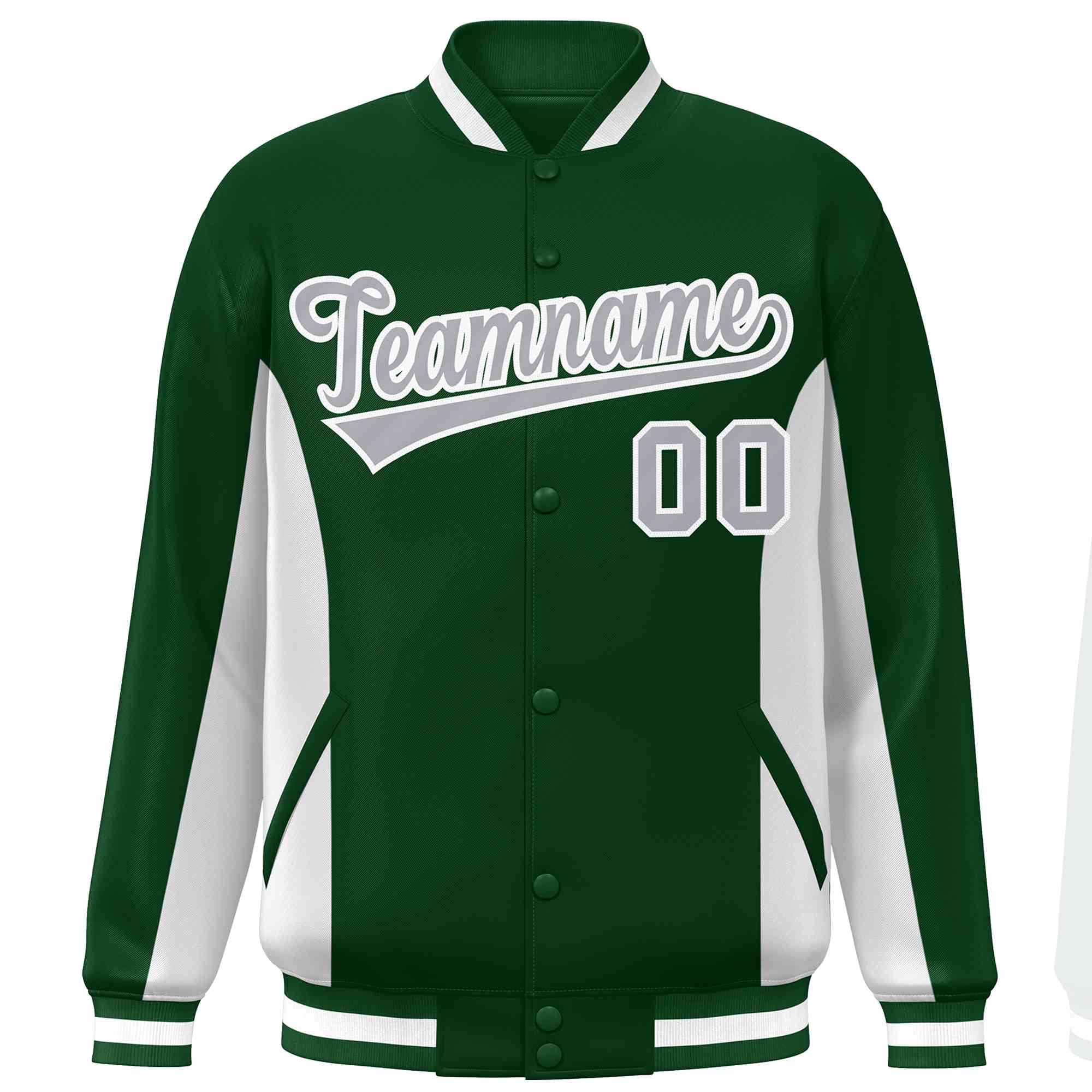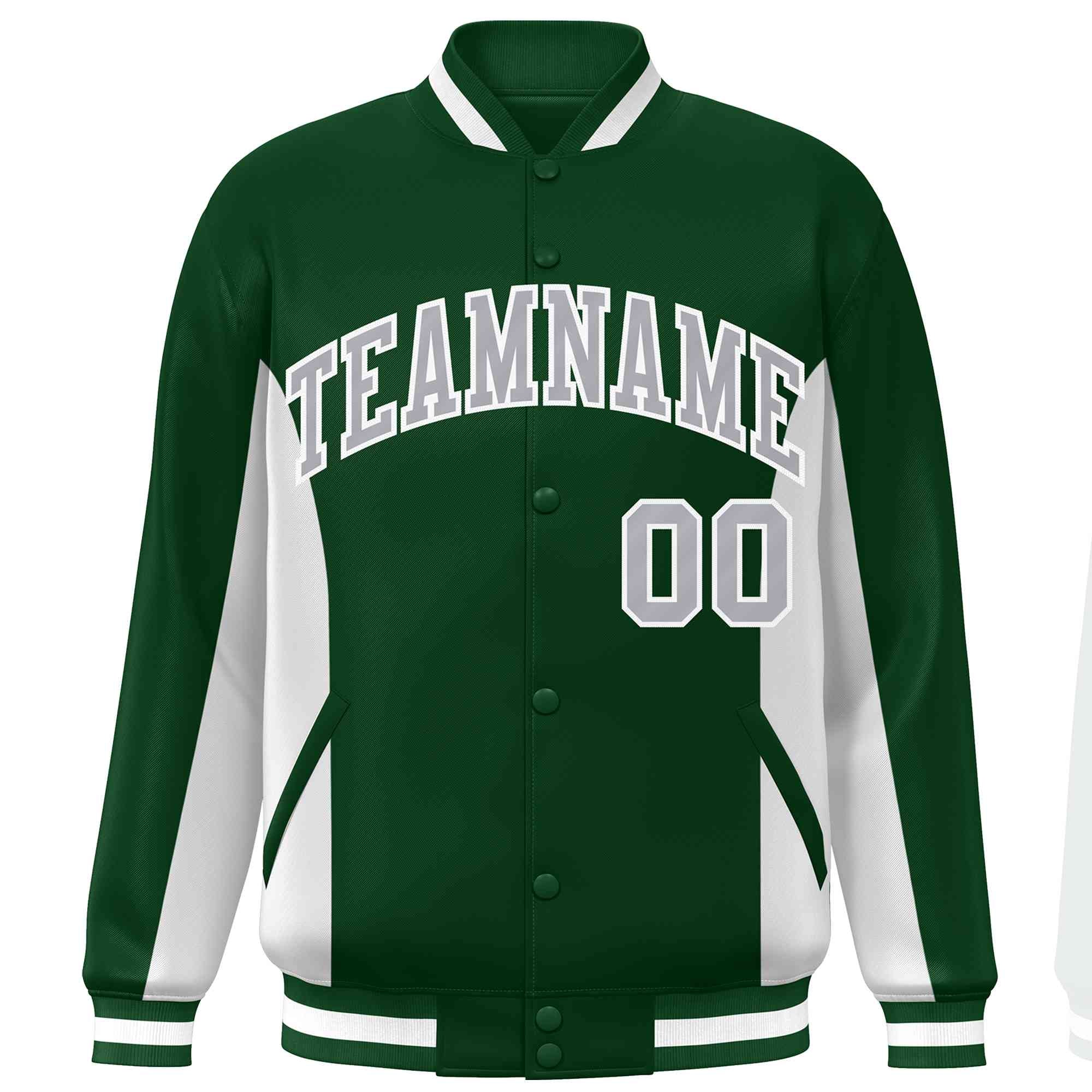 Custom Green White-Gray Varsity Full-Snap Color Block Letterman Baseball Jacket