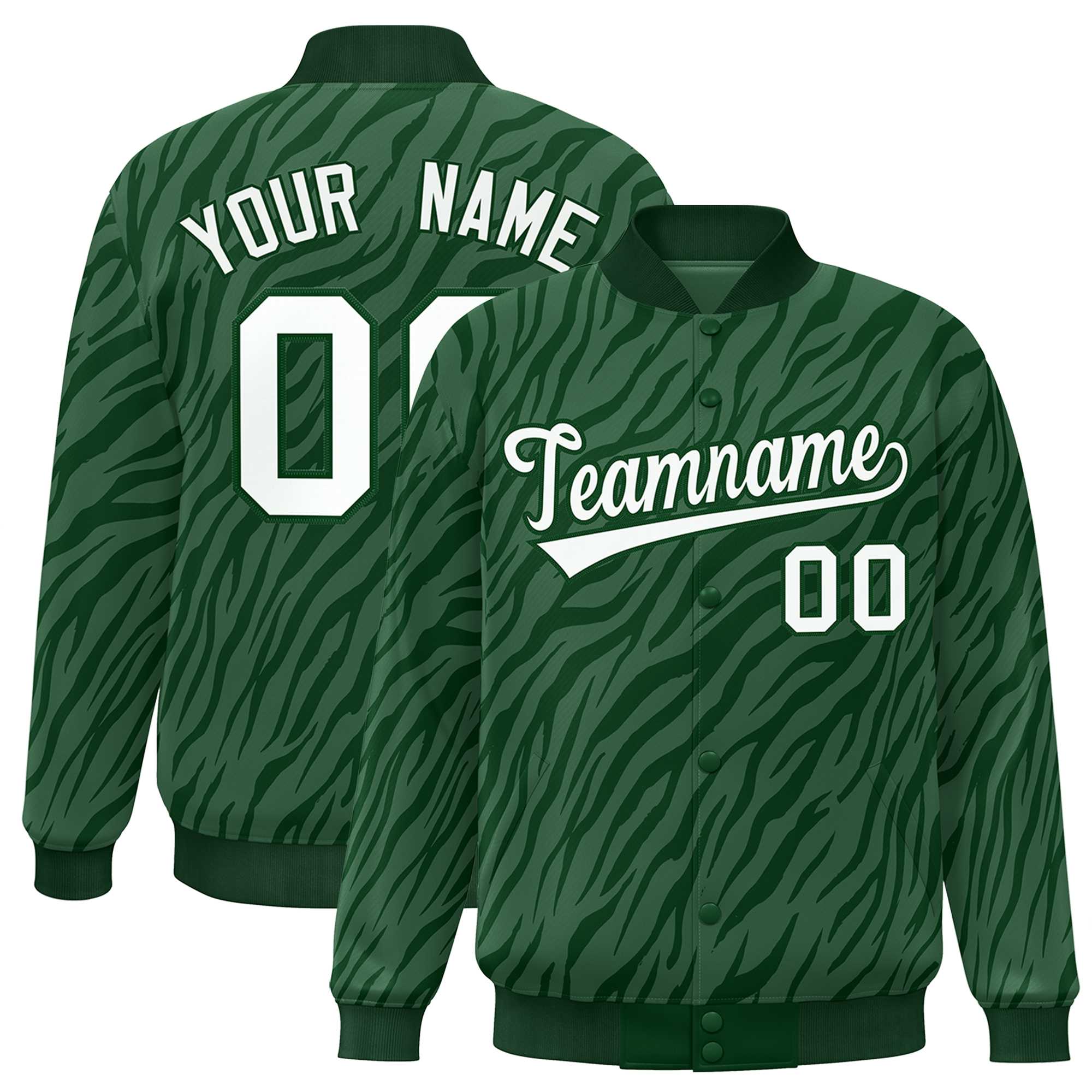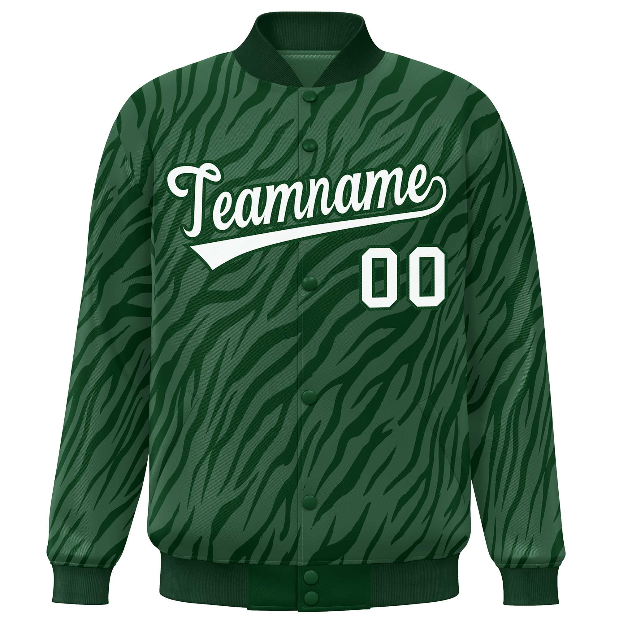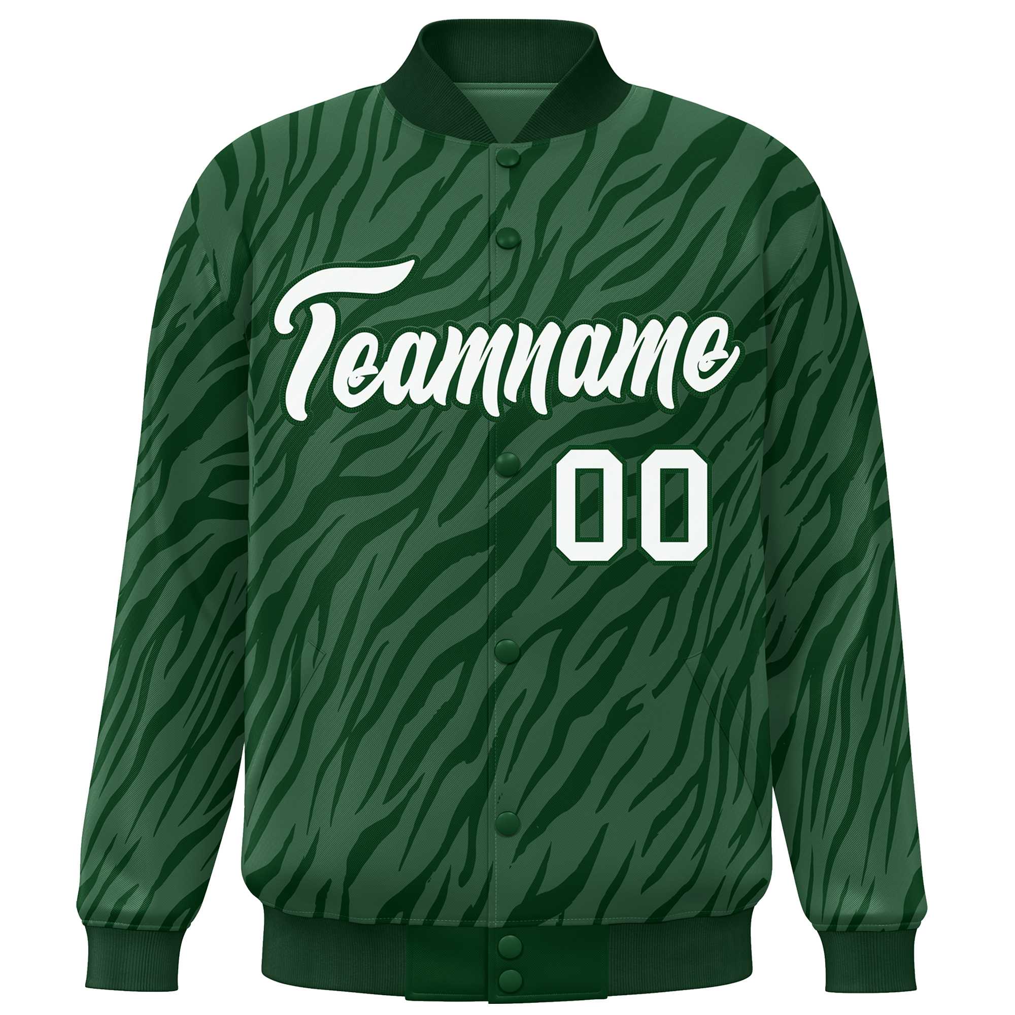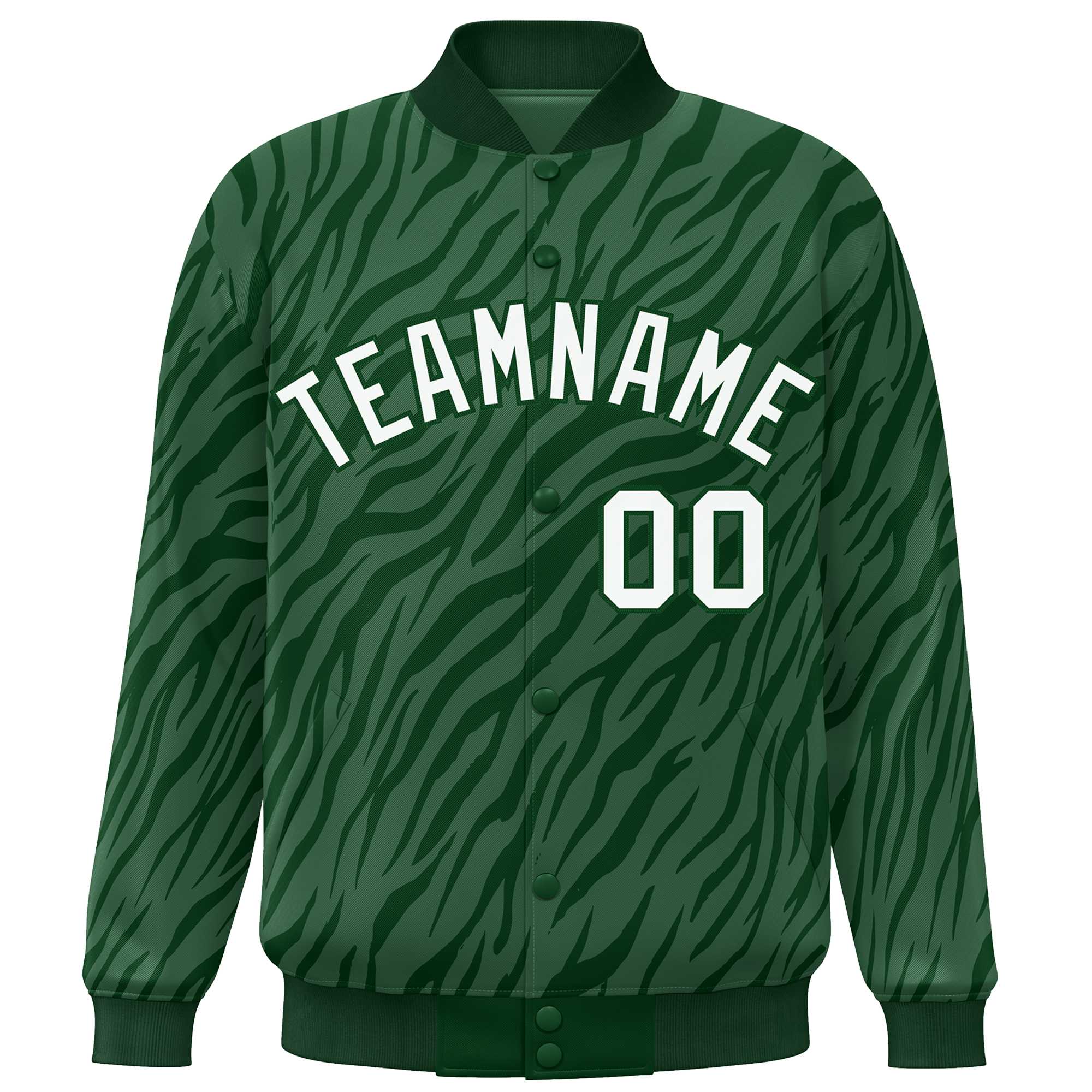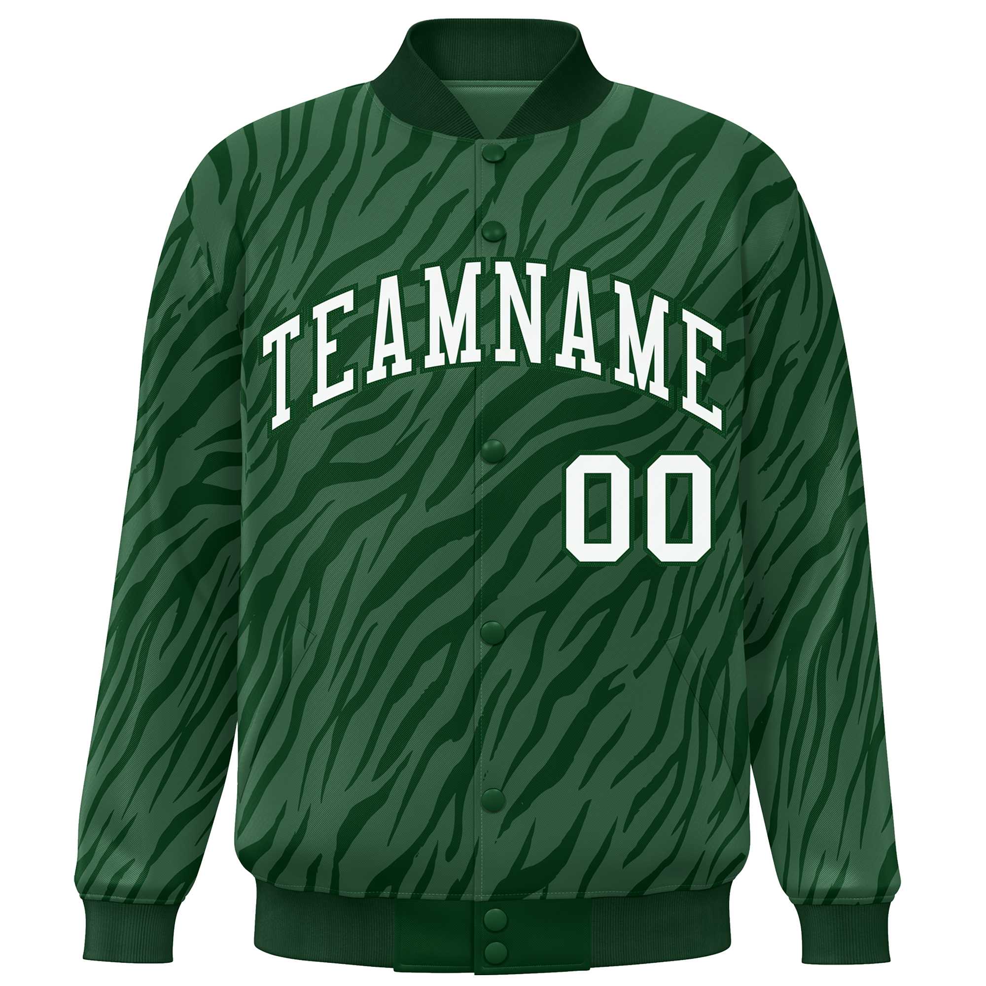 Custom Green White Tiger Stripes Graffiti Pattern Bomber Varsity Jacket