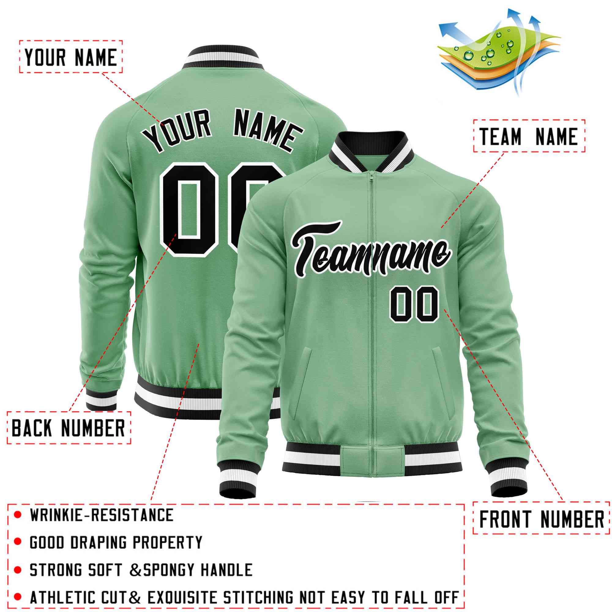 Custom Green Black Varsity Full-Zip Classic Style Letterman Baseball Jacket
