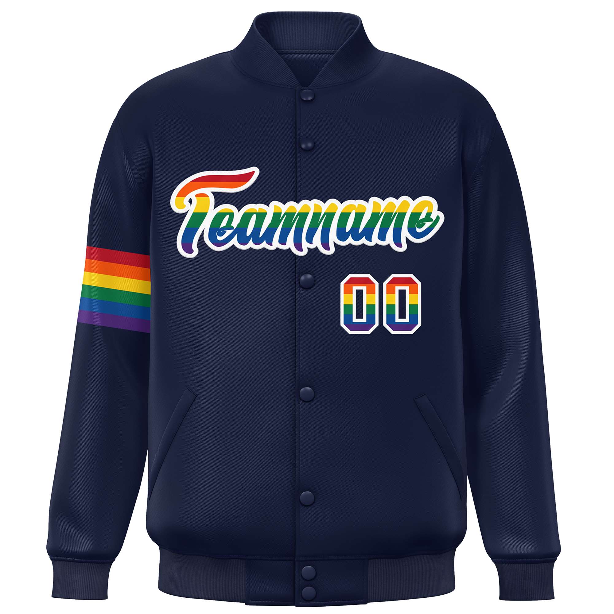 Custom Navy LGBT Rainbow For Pride Month Classic Style Letterman Baseball Jacket