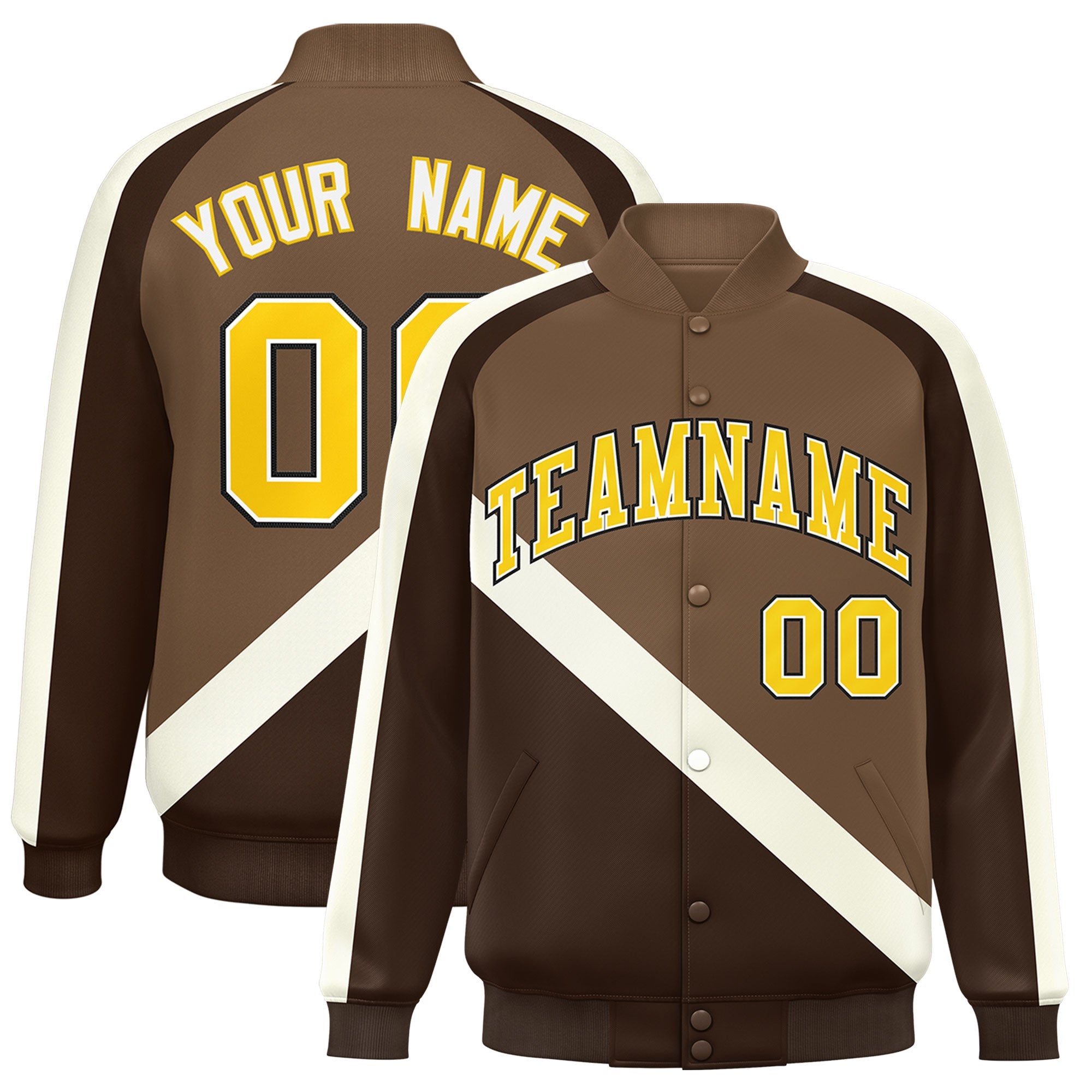 Custom Light Brown Brown Raglan Sleeves Varsity Full-Snap Letterman Baseball Jacket