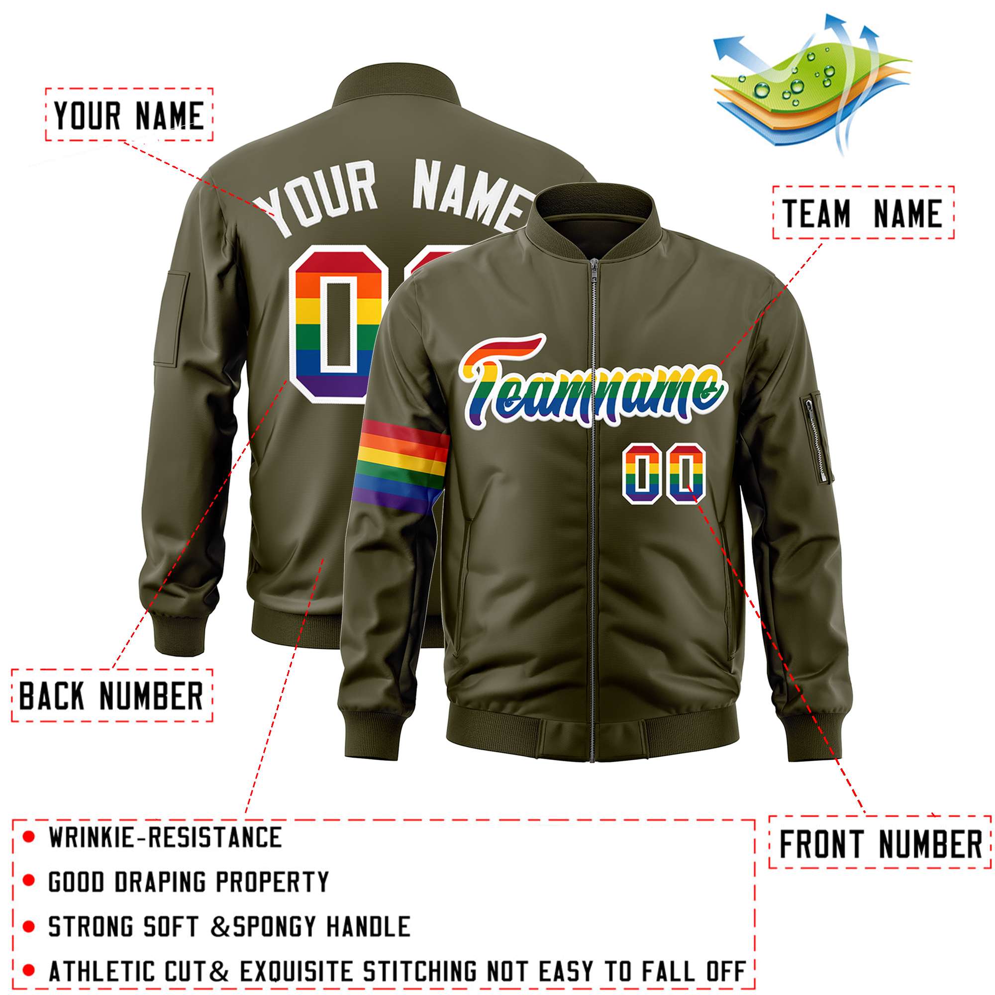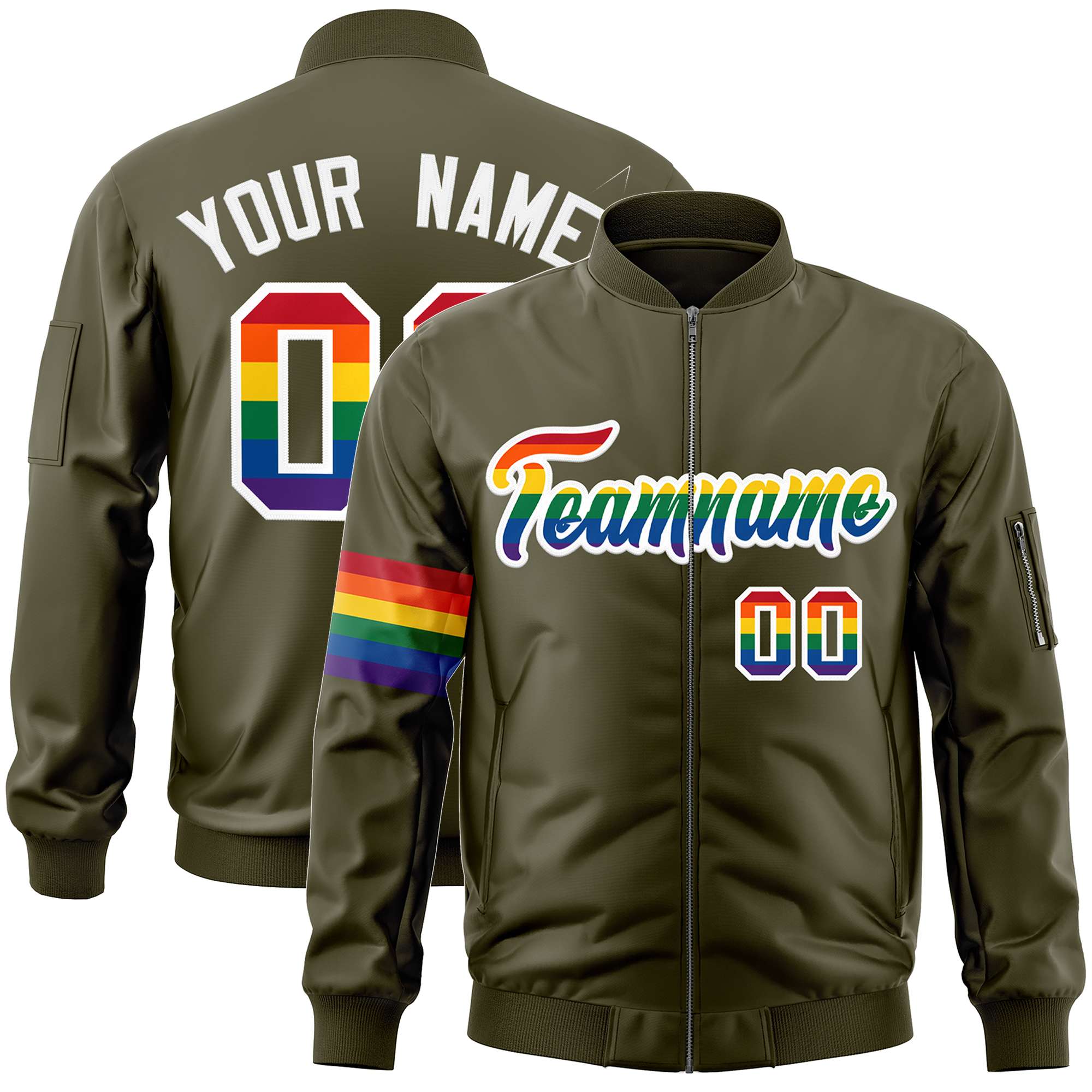 Custom Olive LGBT Rainbow For Pride Month Classic Style Letterman Bomber Jacket
