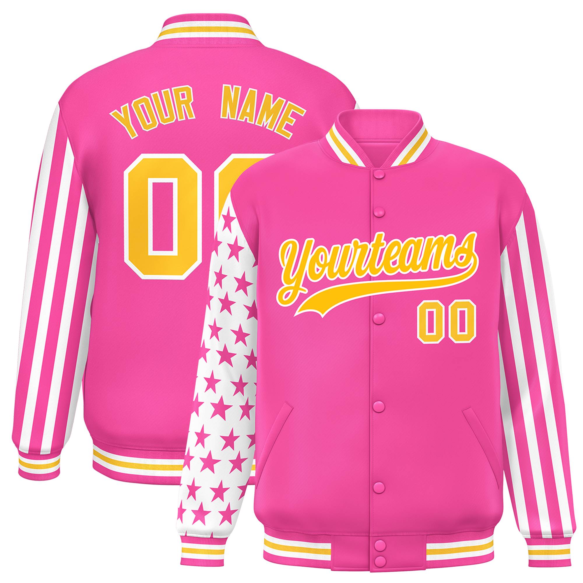 Custom Pink American Flag Varsity Full-Snap Authentic Raglan Sleeves Letterman Bomber Jacket