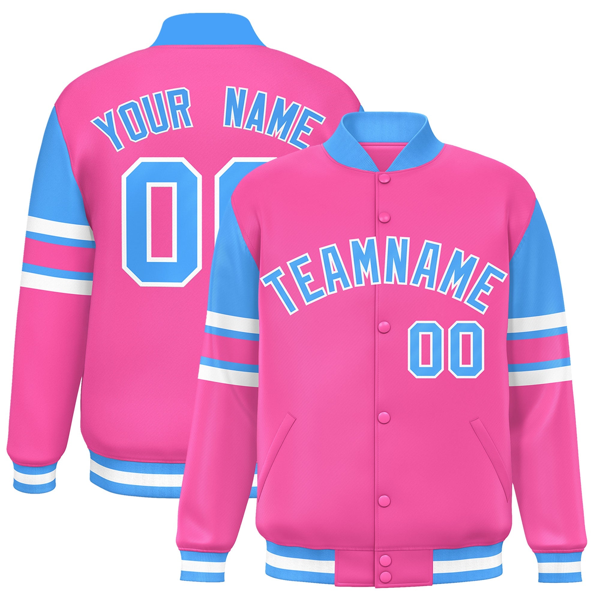 Custom Pink Varsity Full-Snap Color Block Letterman Jacket