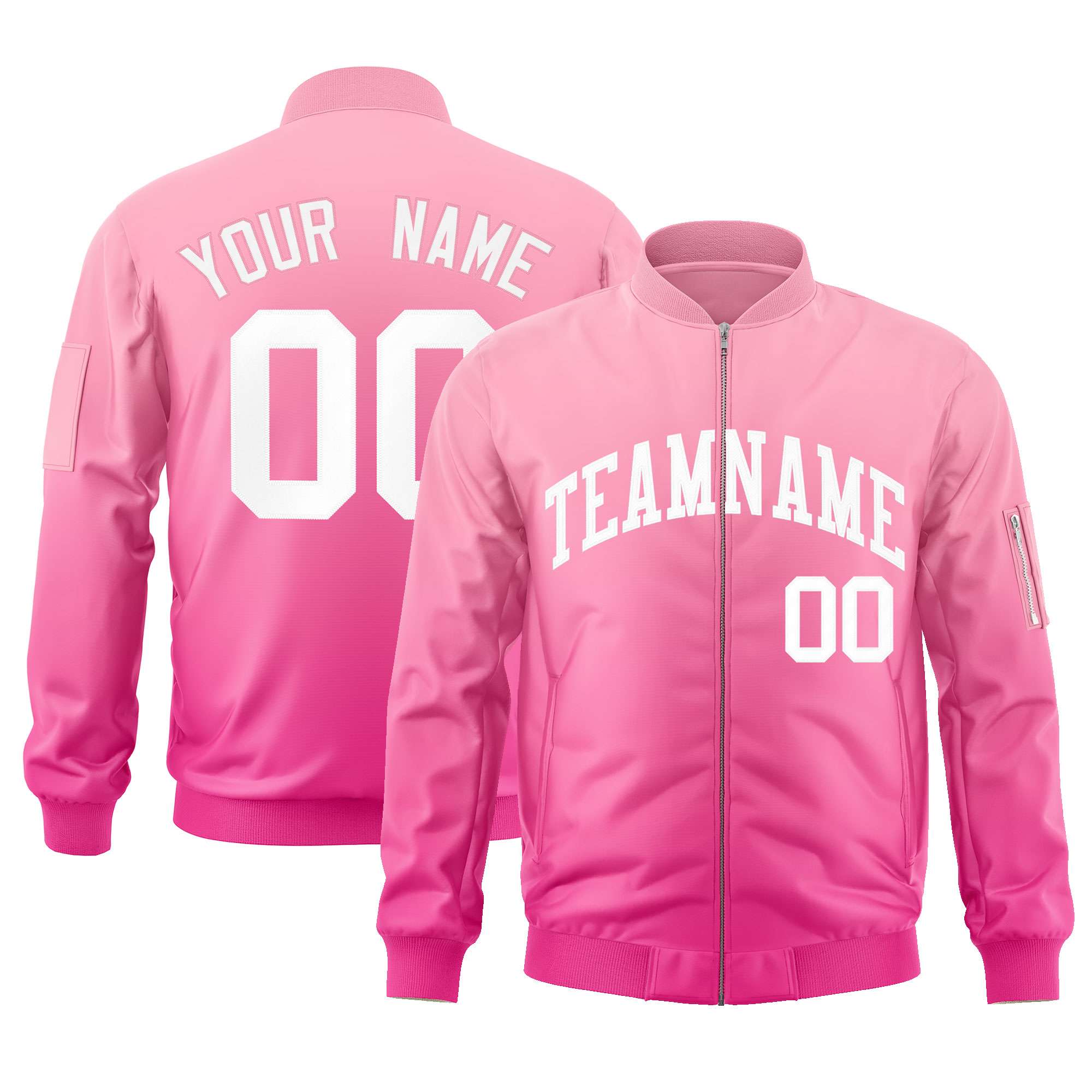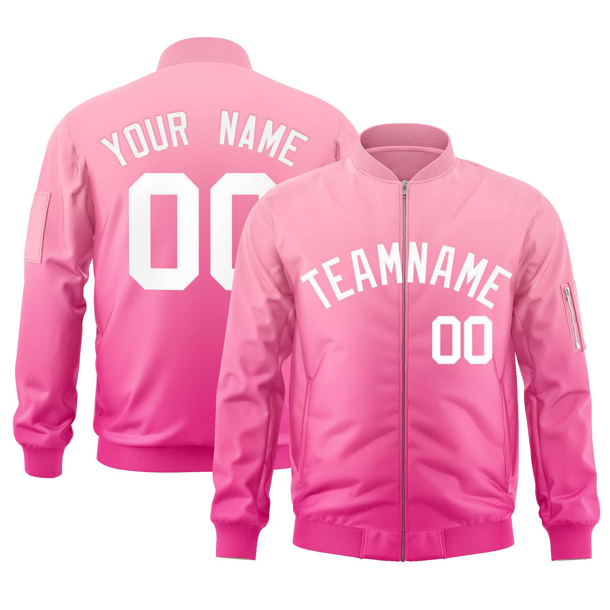 Custom Pink White Varsity Full-Zip Gradient Fashion Letterman Bomber Jacket