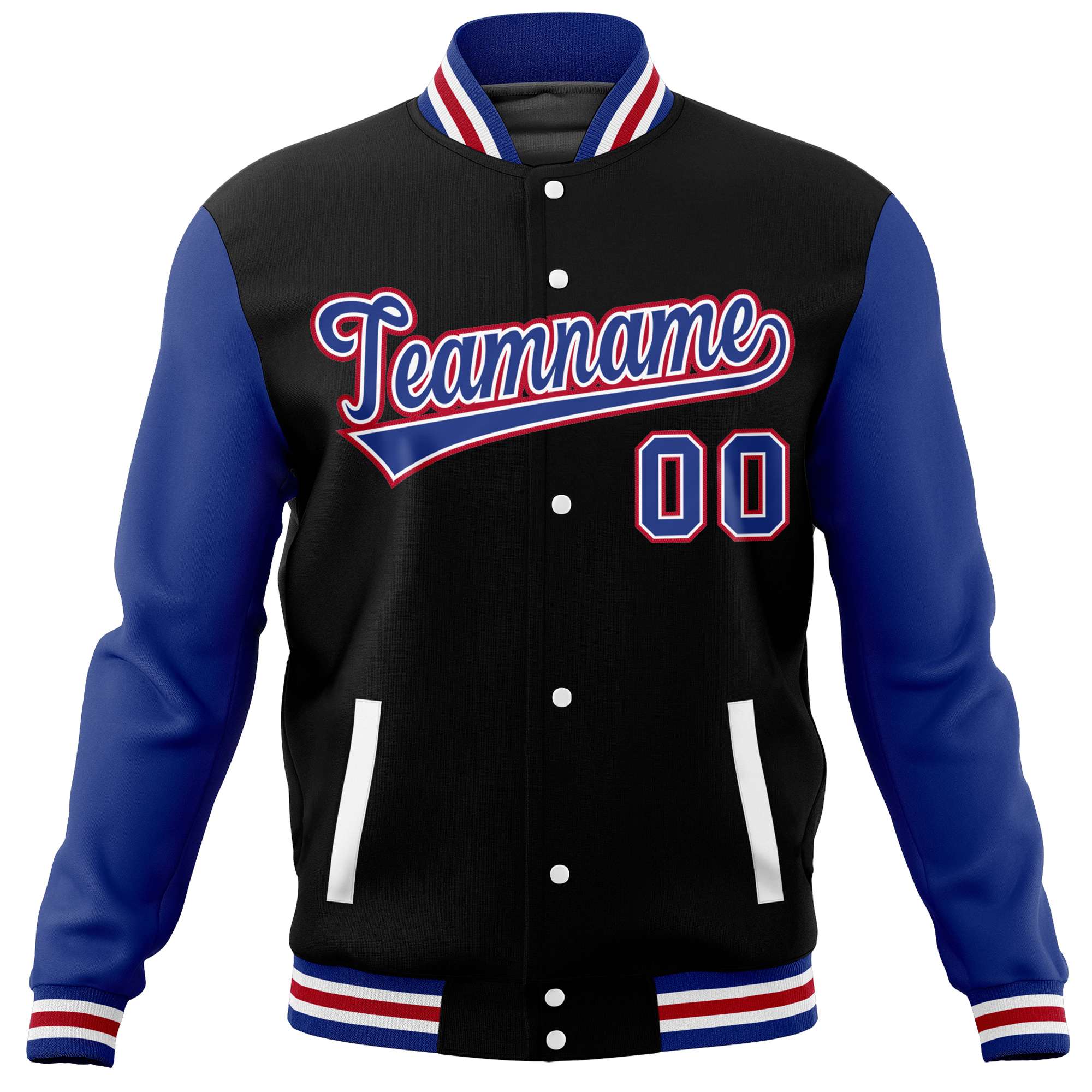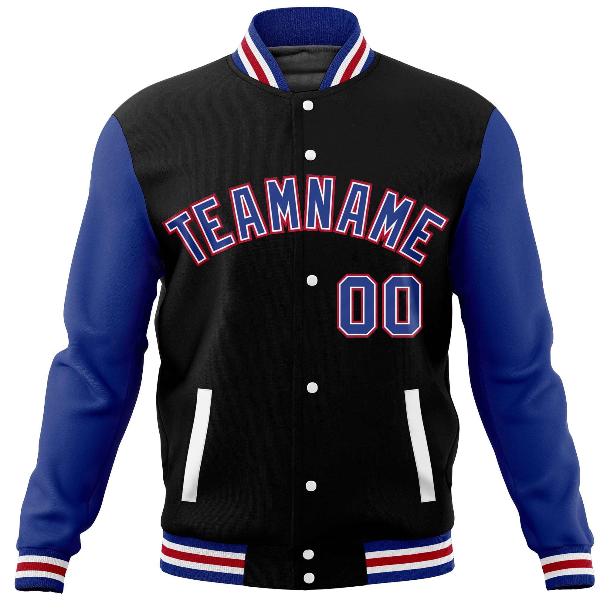 Custom Black Royal Varsity Full-Snap Raglan Sleeves Letterman Baseball Jacket