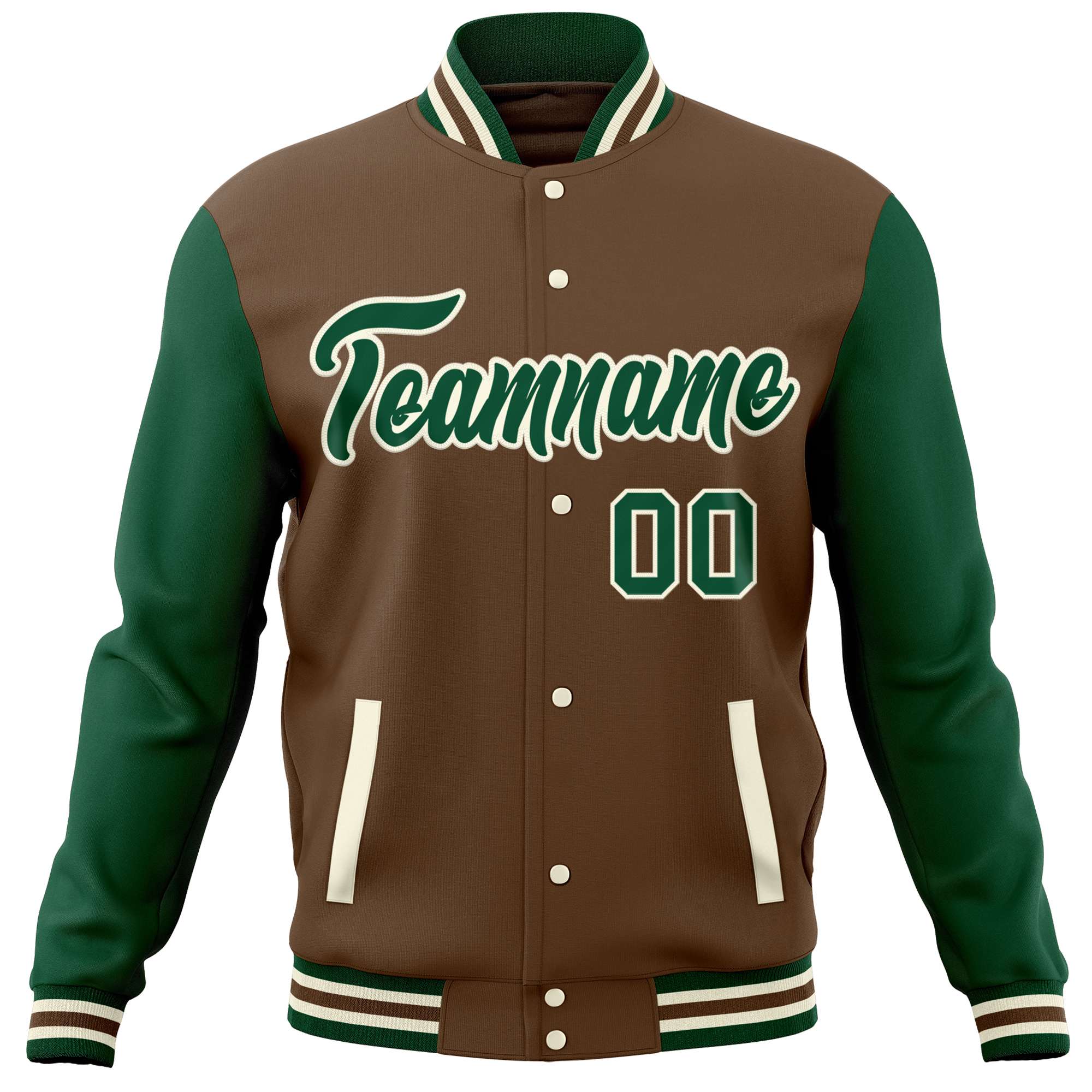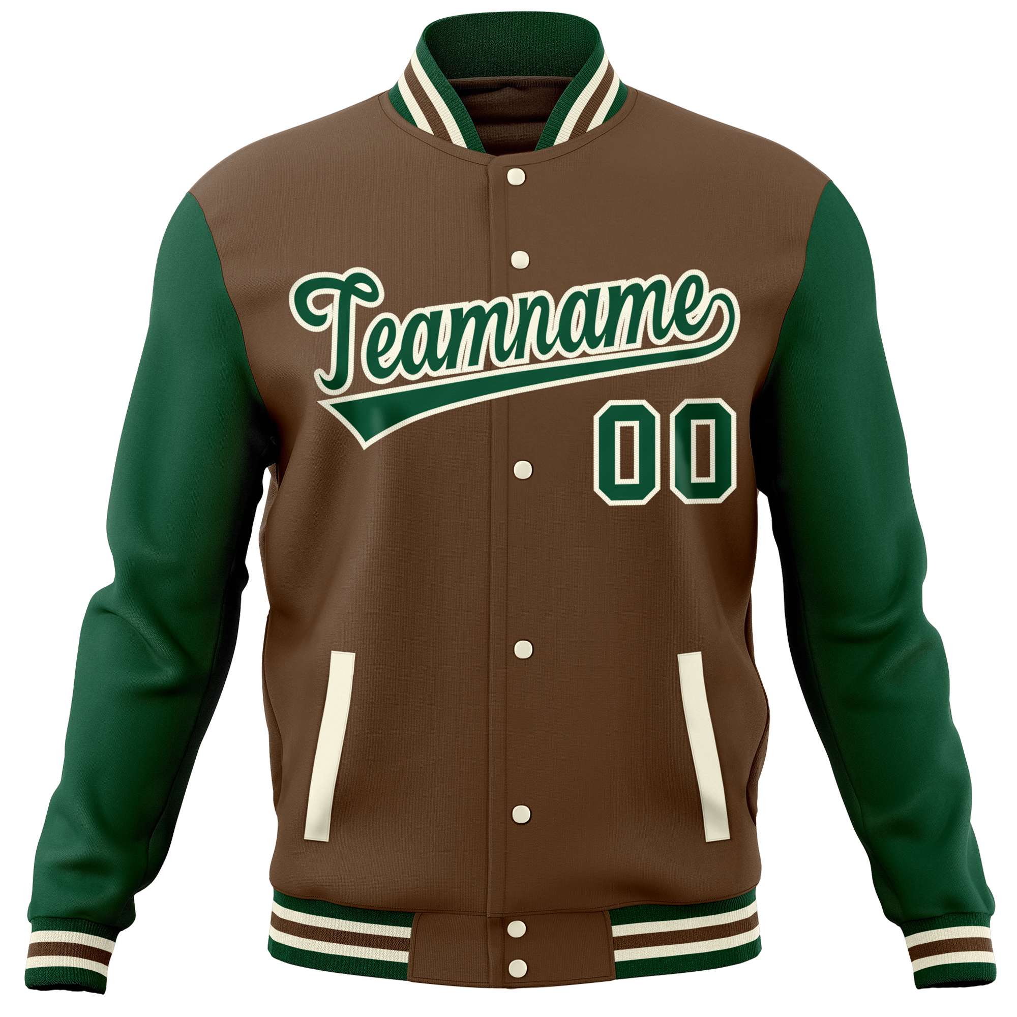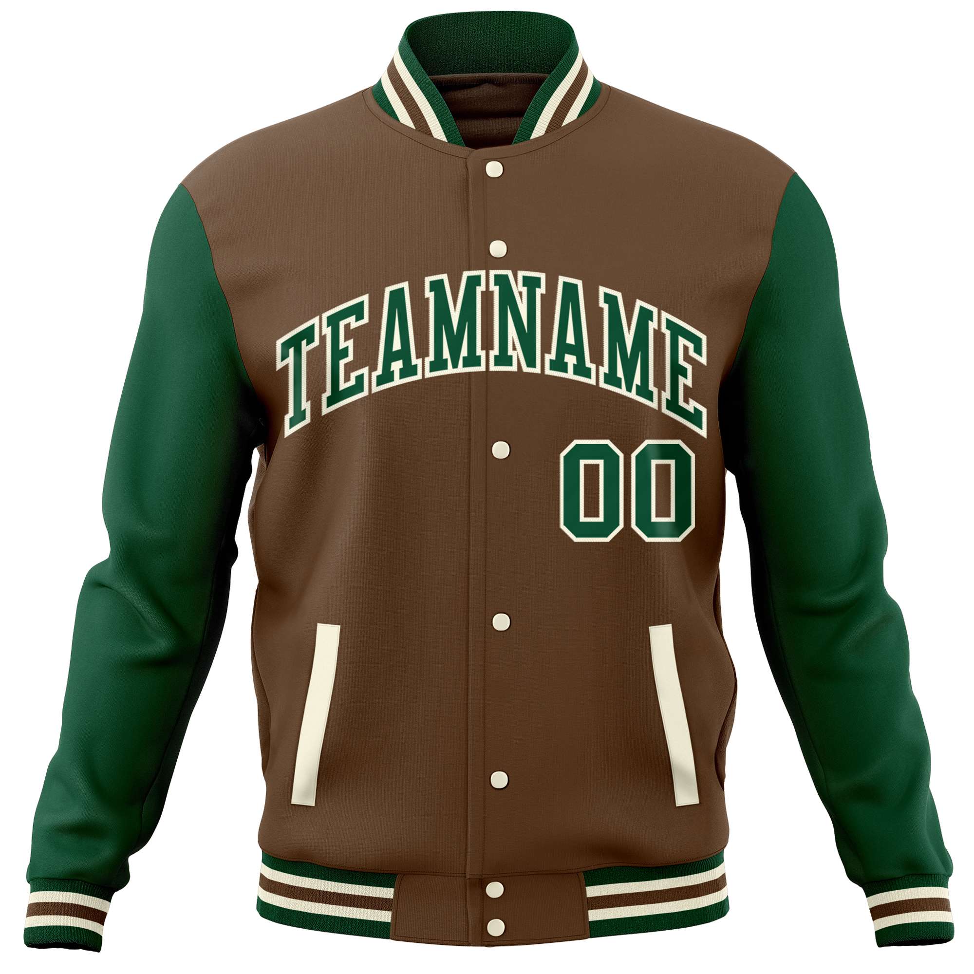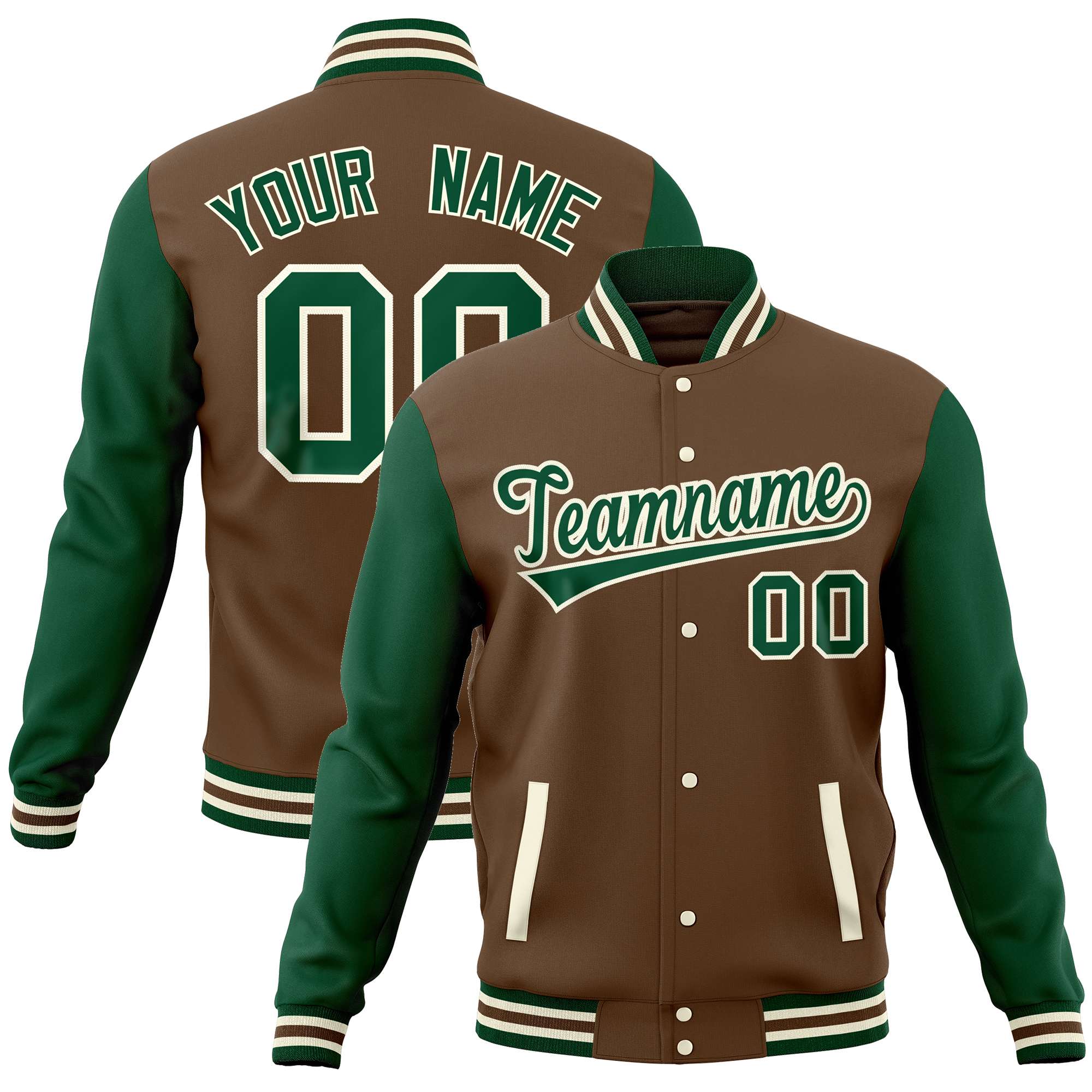 Custom Light Brown Green Varsity Full-Snap Raglan Sleeves Letterman Baseball Jacket
