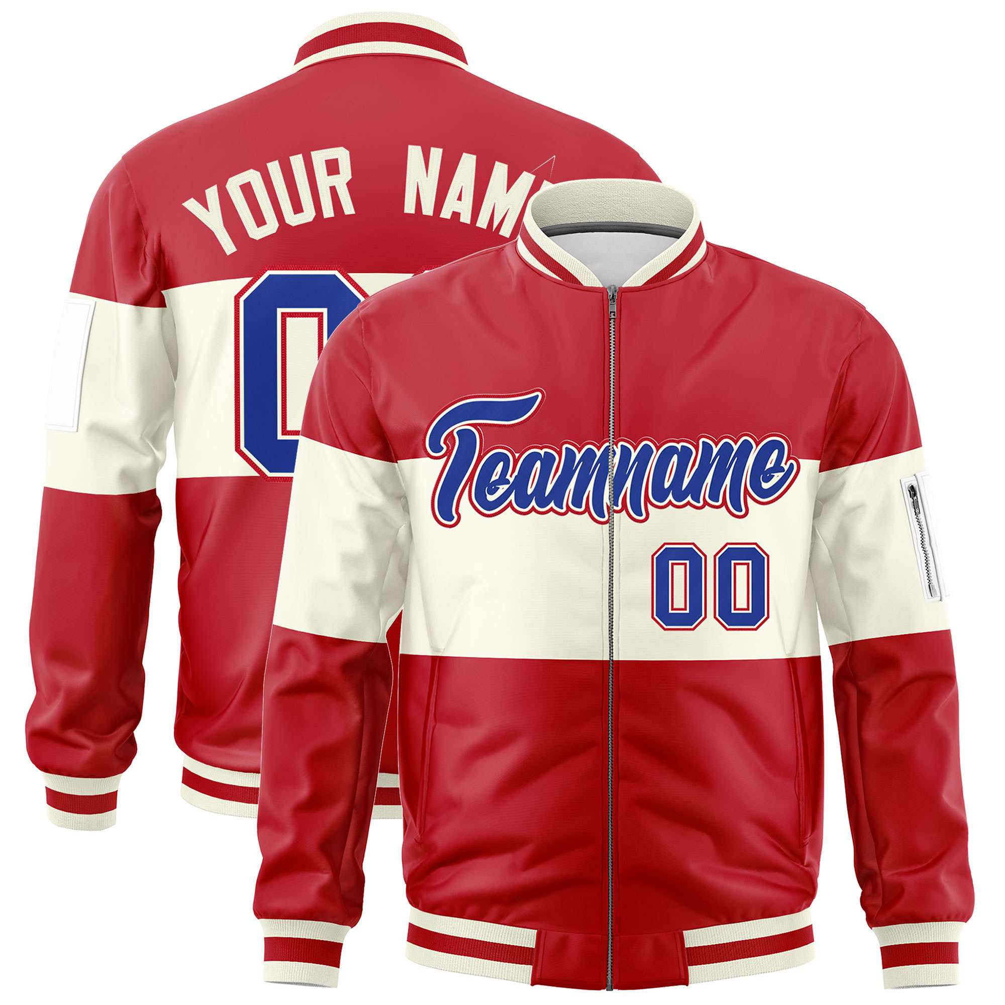 Custom Red Cream-Red Varsity Full-Zip Color Block Letterman Bomber Jacket