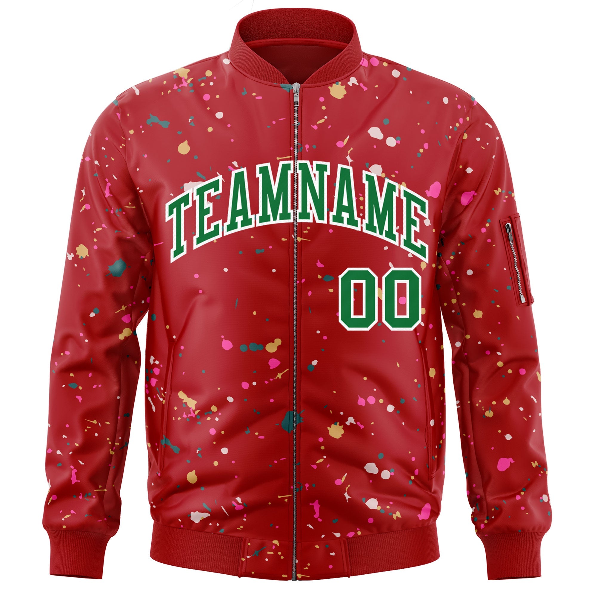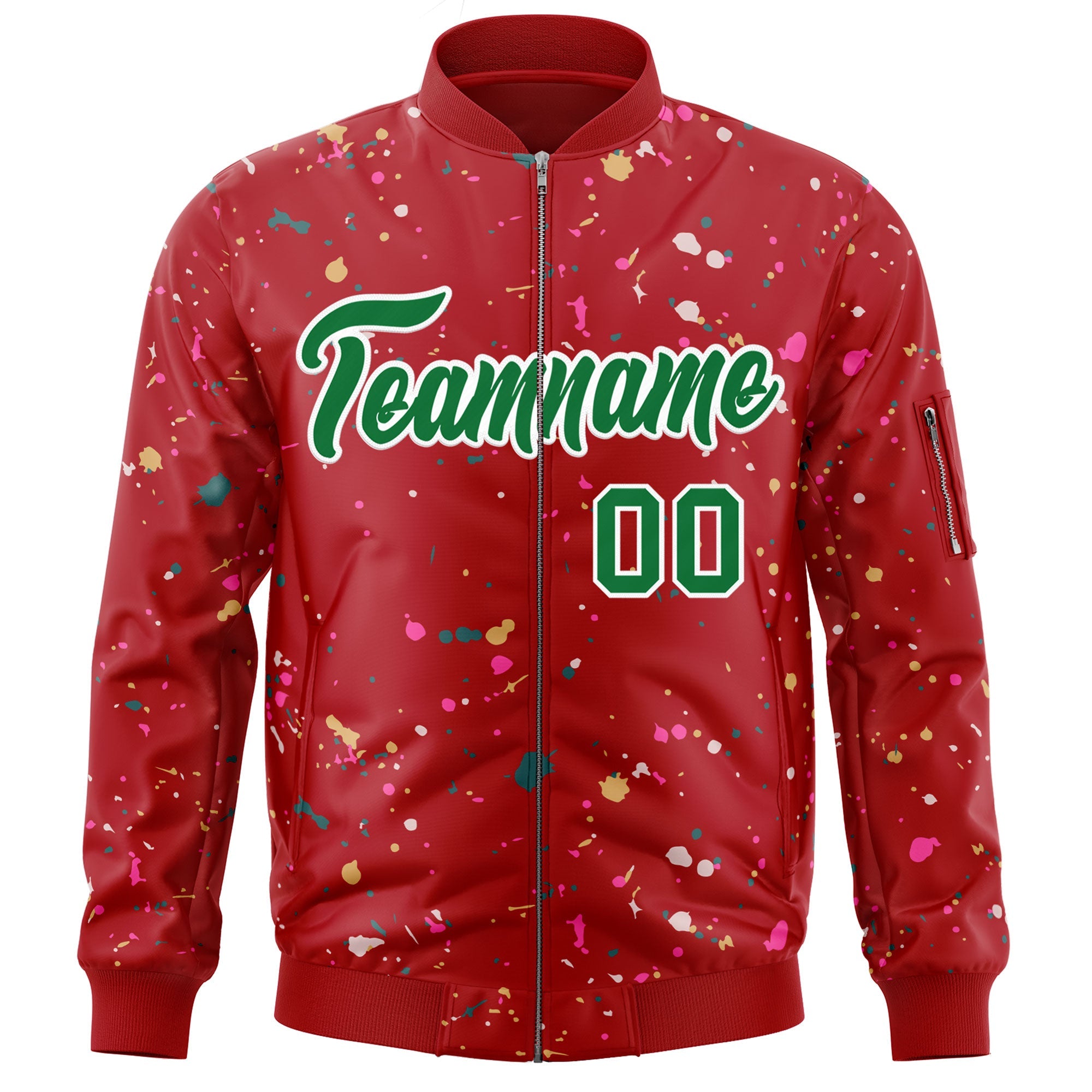 Custom Red Kelly Green Varsity Full-Zip Splash Graffiti Pattern Letterman Jacket