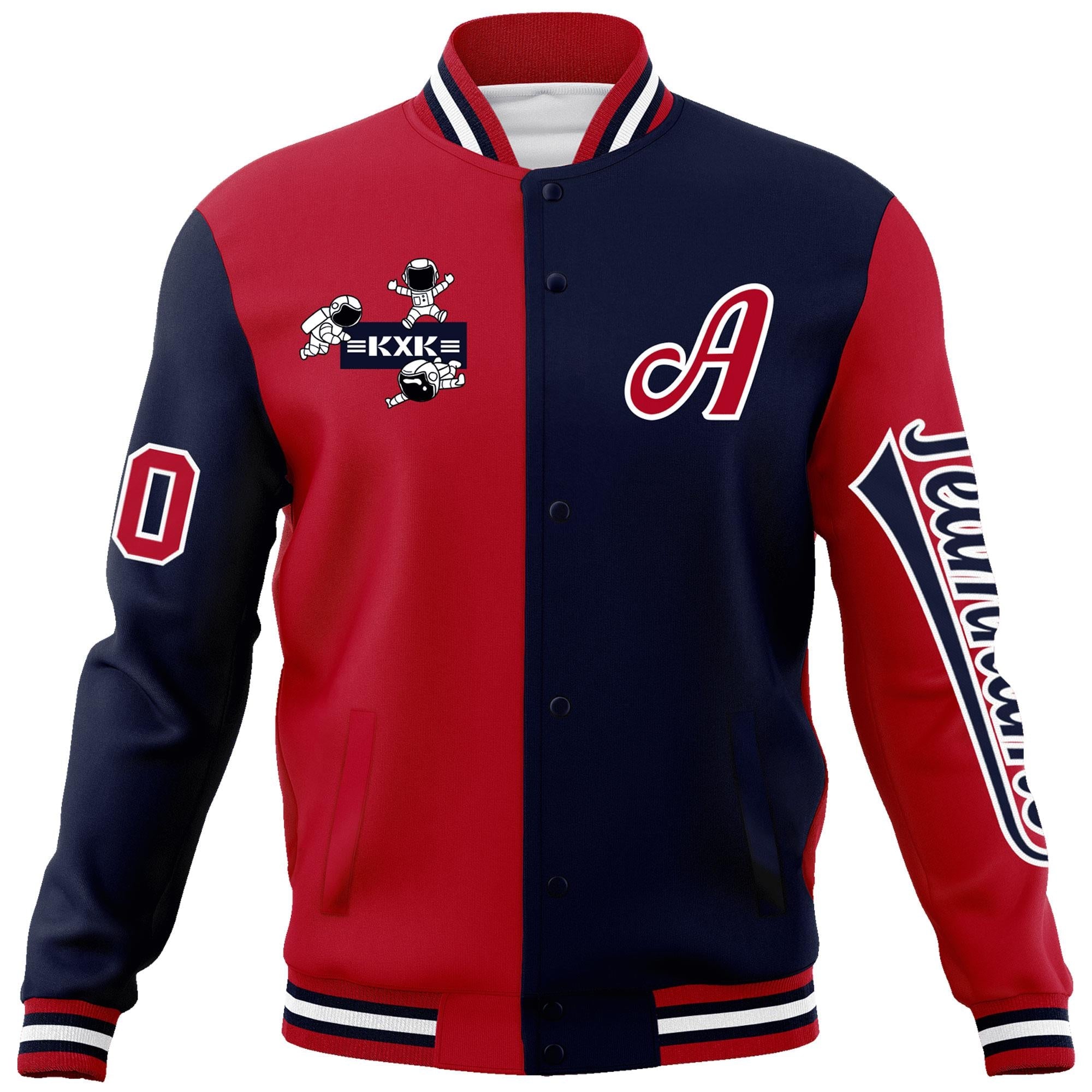 Custom Red Navy Two Tone Split Fashion Varsity Letterman Jacket with Raglan Sleeves