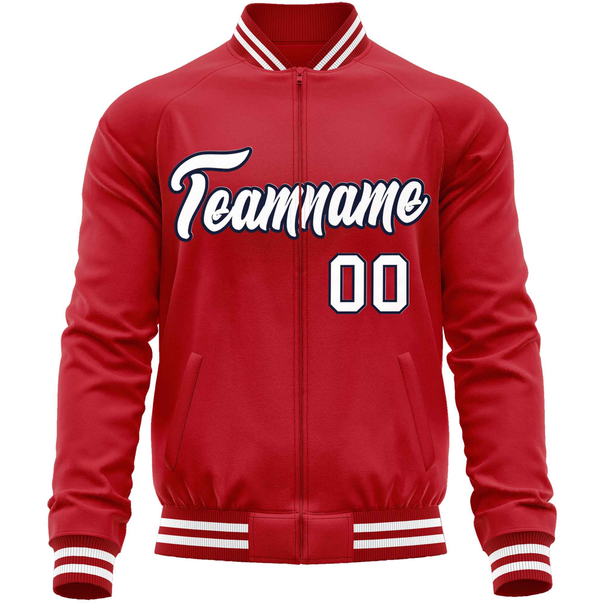 Custom Red White Classic Style Varsity Full-Zip Letterman Baseball Jacket