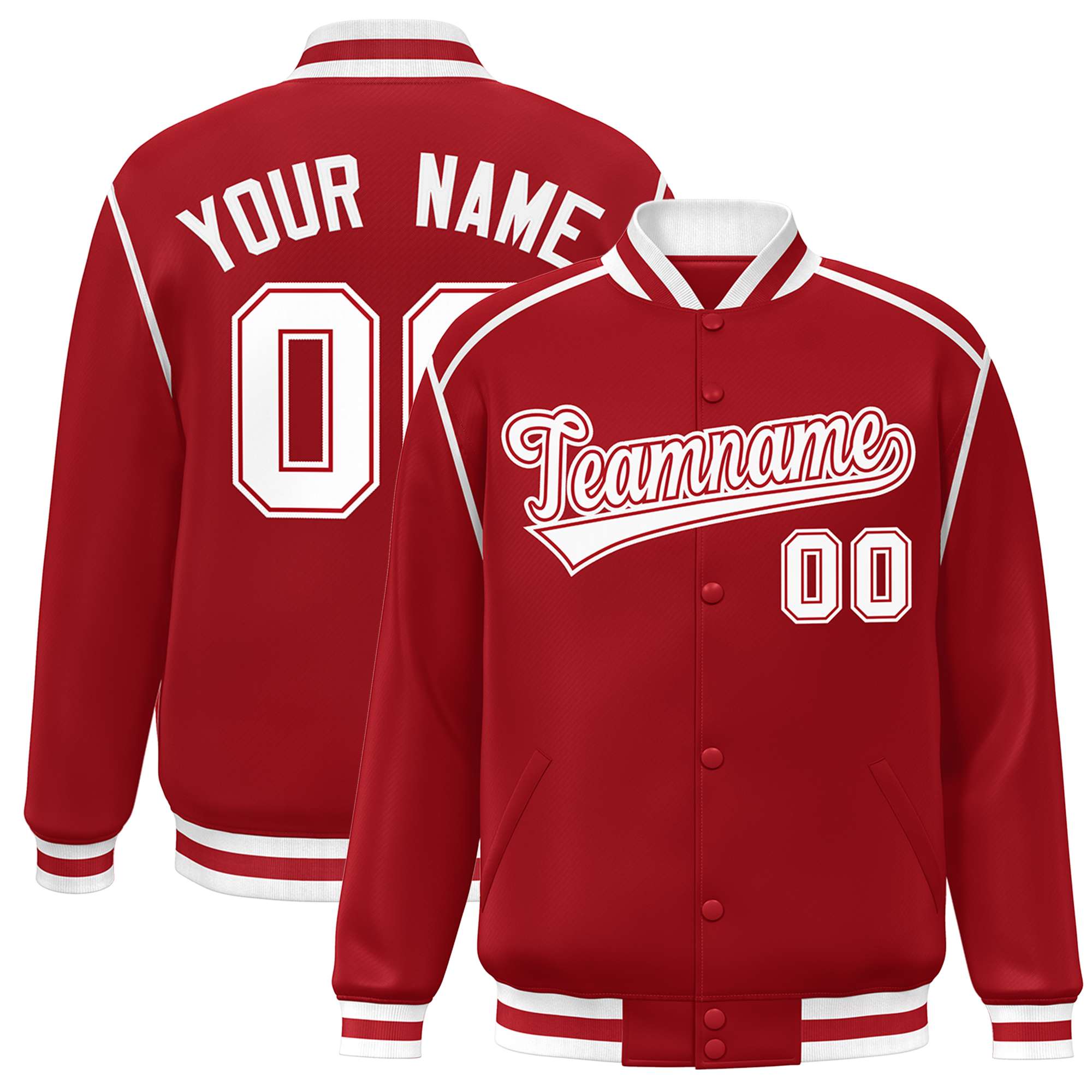 Custom Red White Color Block Ribbon Varsity Full-Snap Bomber Jacket