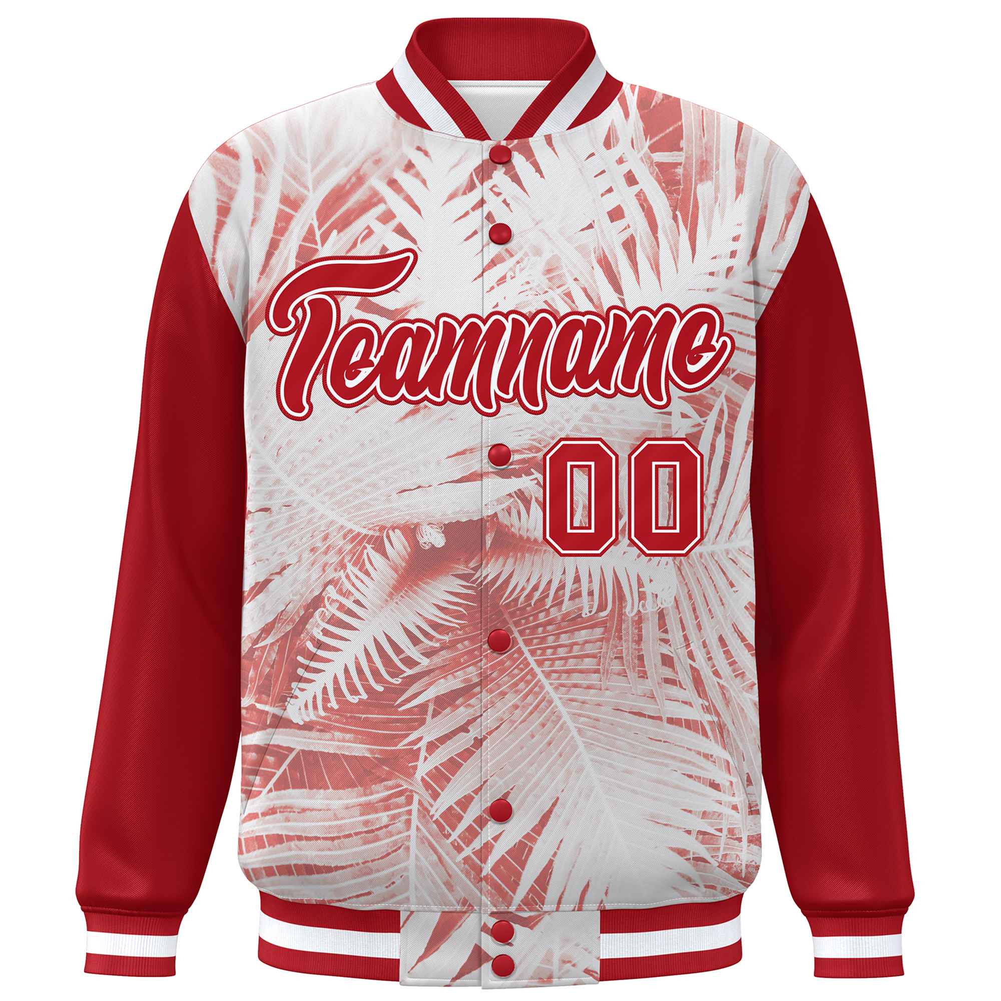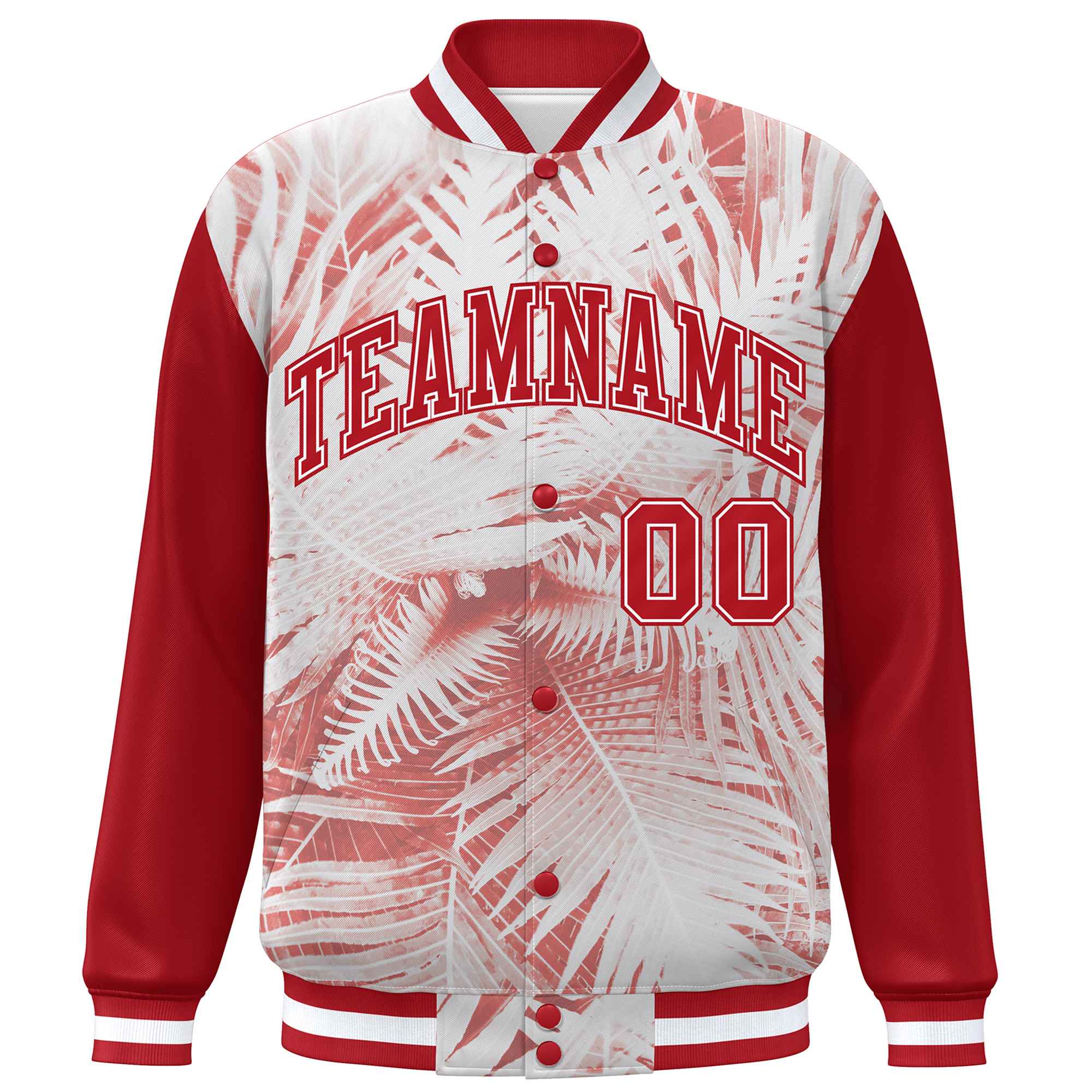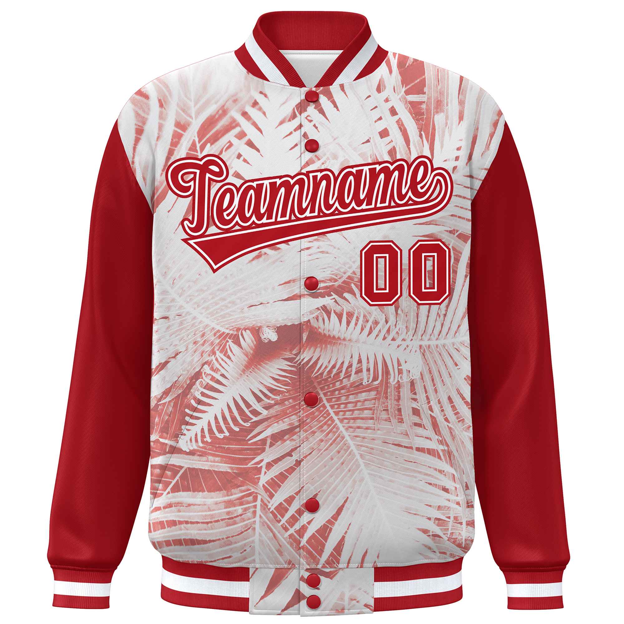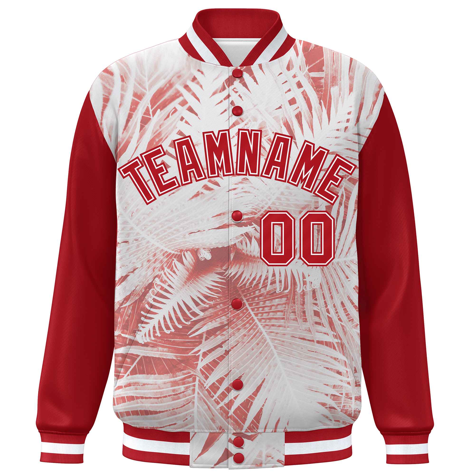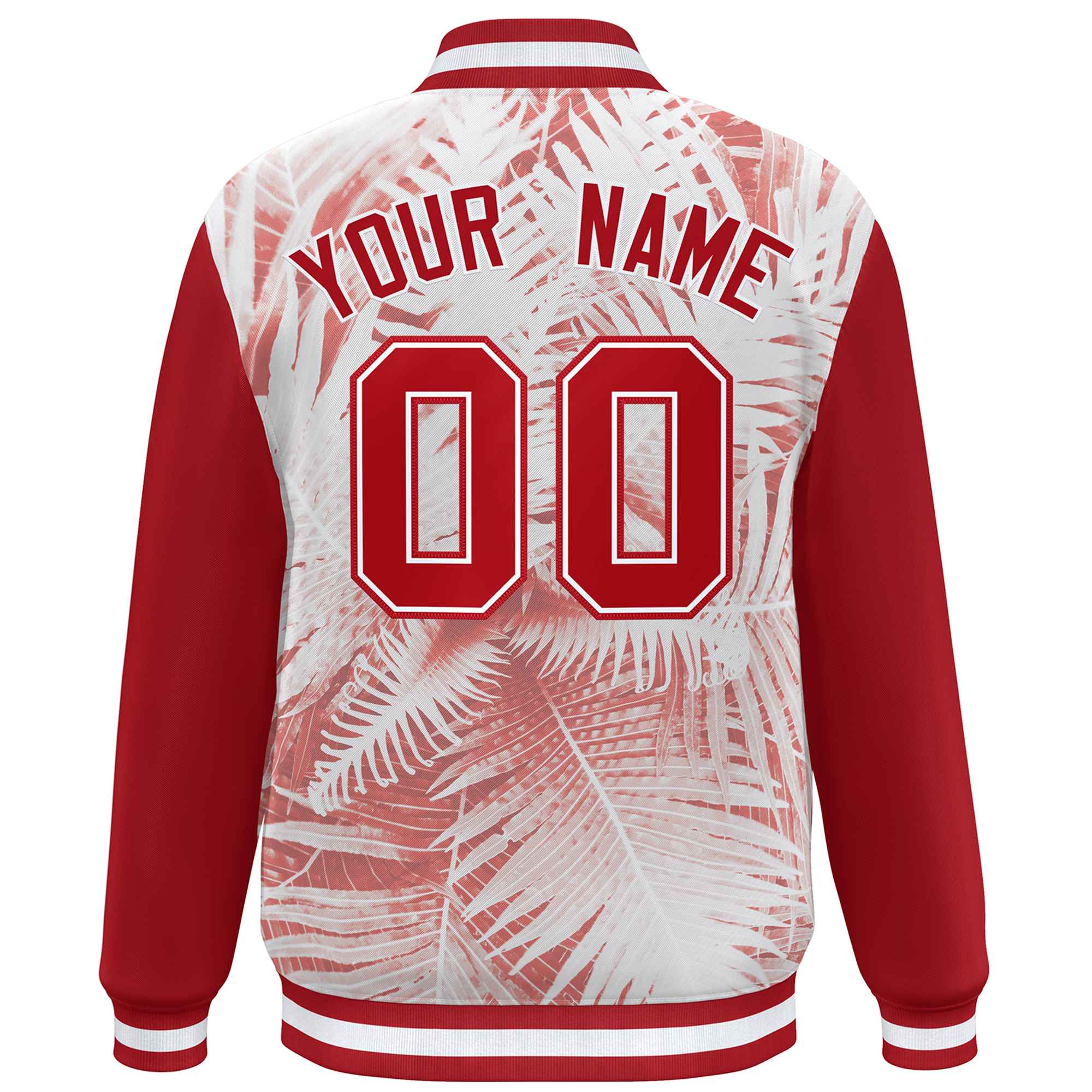 Custom Red White Maple Leaf Raglan Sleeves Bomber Graffiti Pattern Varsity Jacket