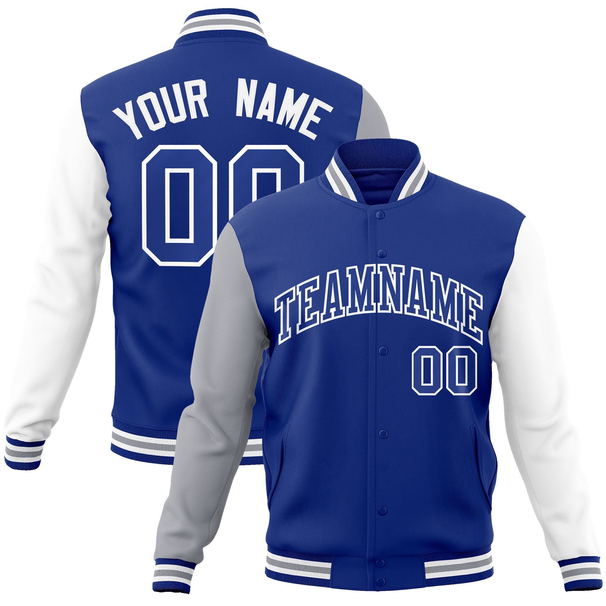 Custom Royal Royal-White Raglan Sleeves Varsity Full-Snap Letterman Jacket