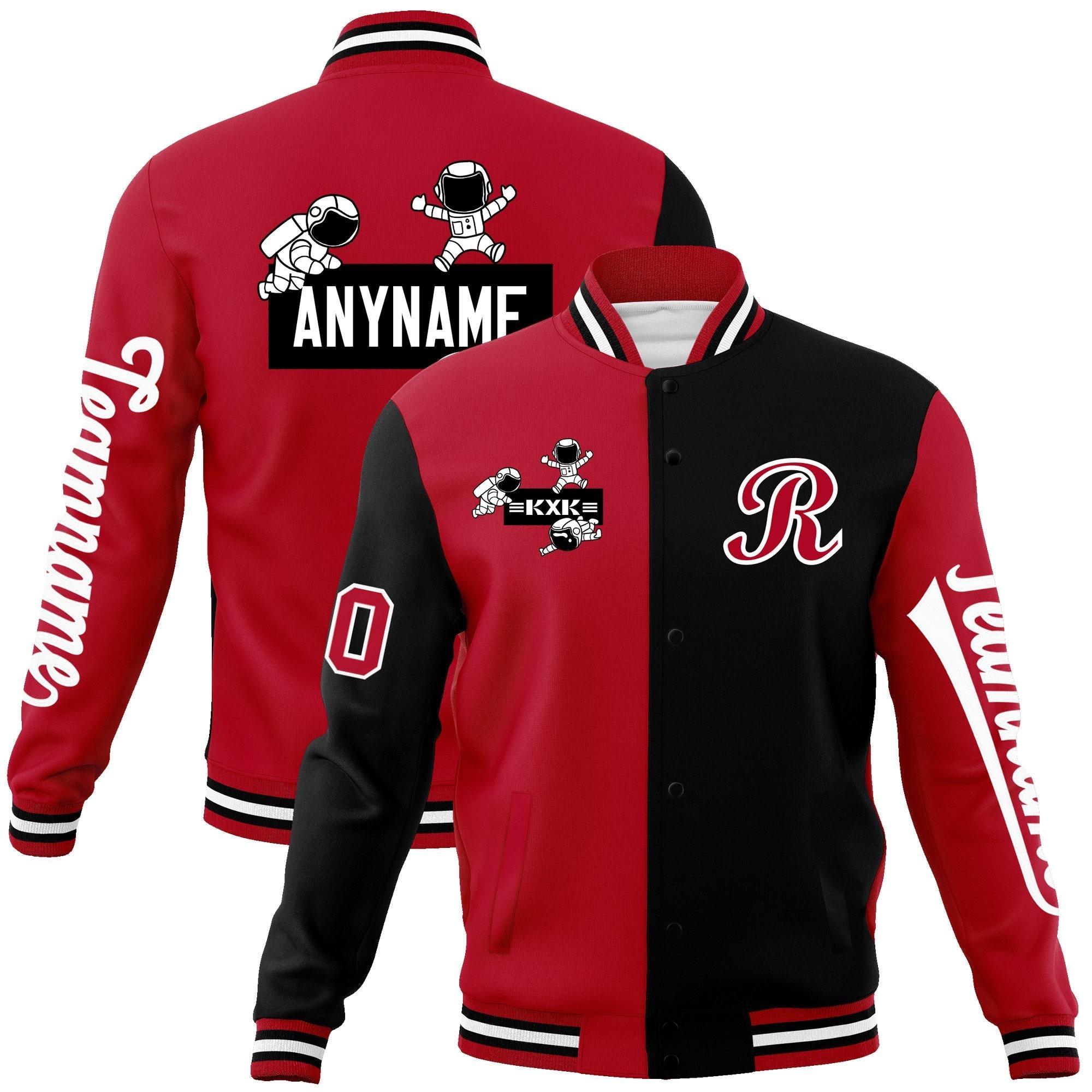 Custom Red Black Two Tone Split Fashion Varsity Letterman Jacket with Raglan Sleeves