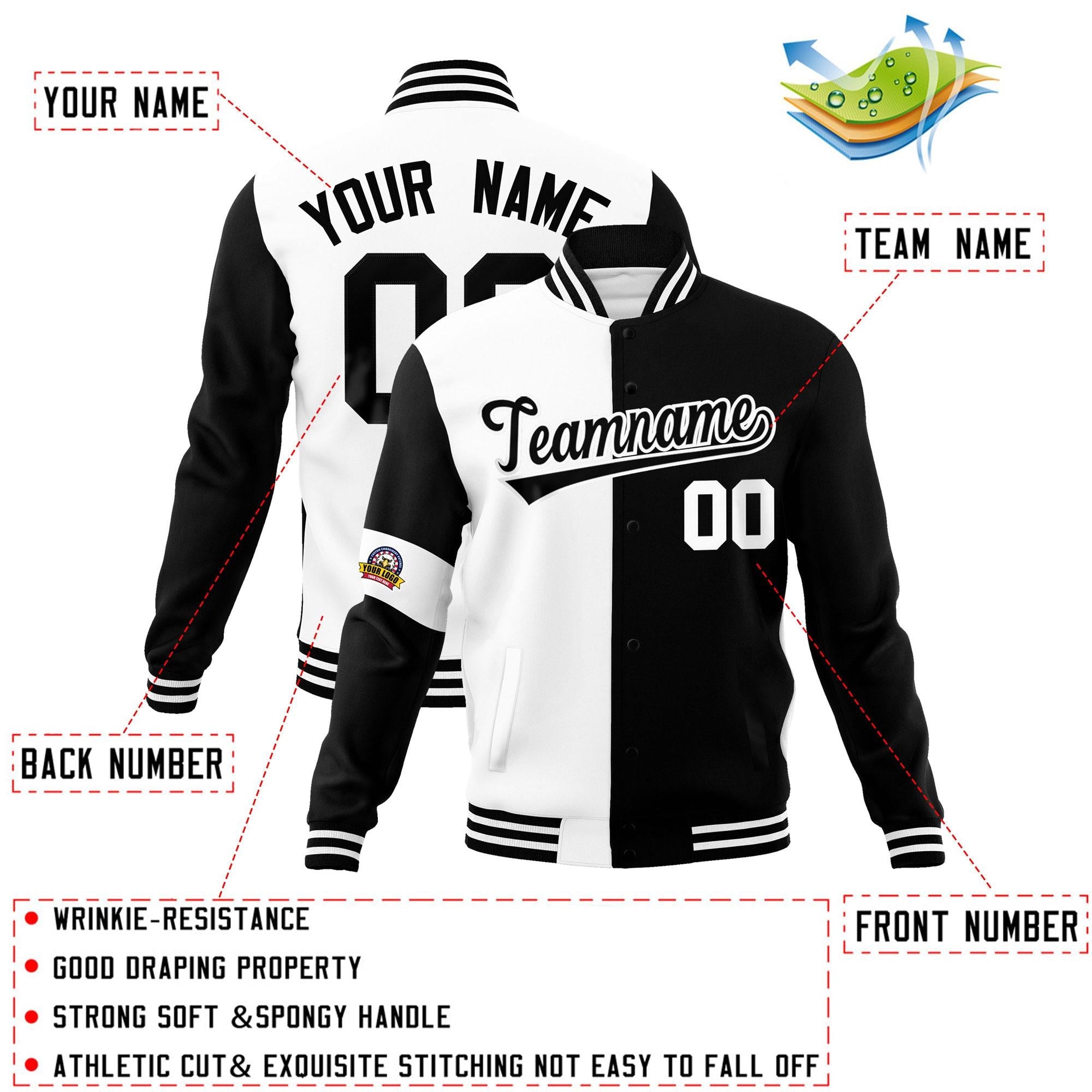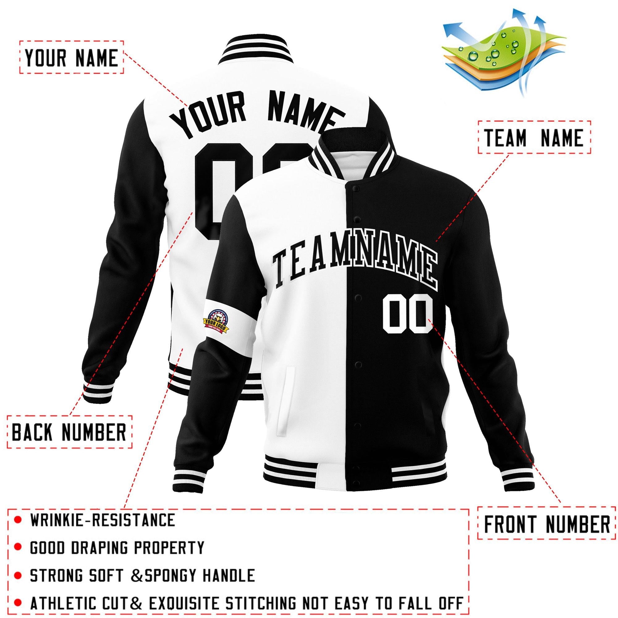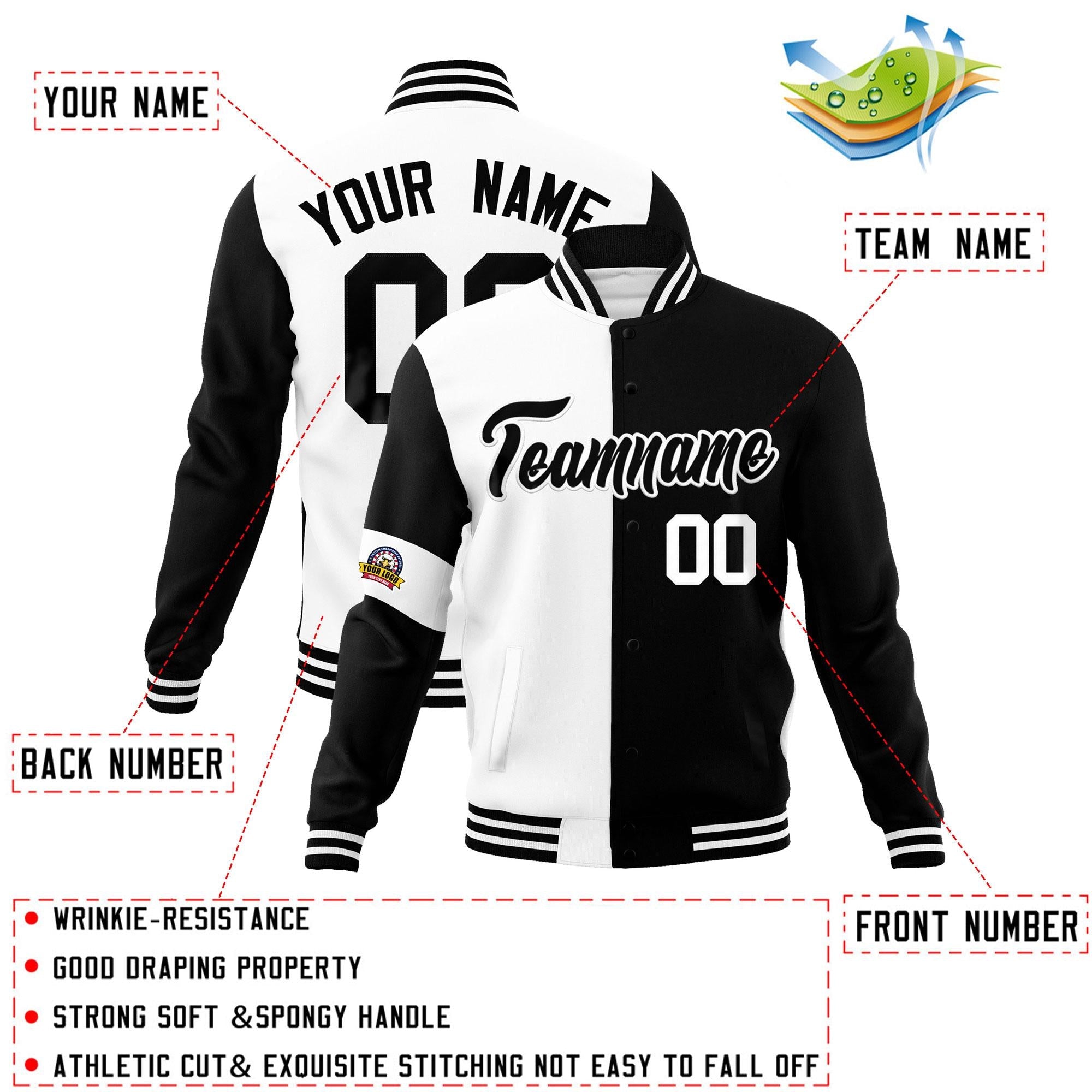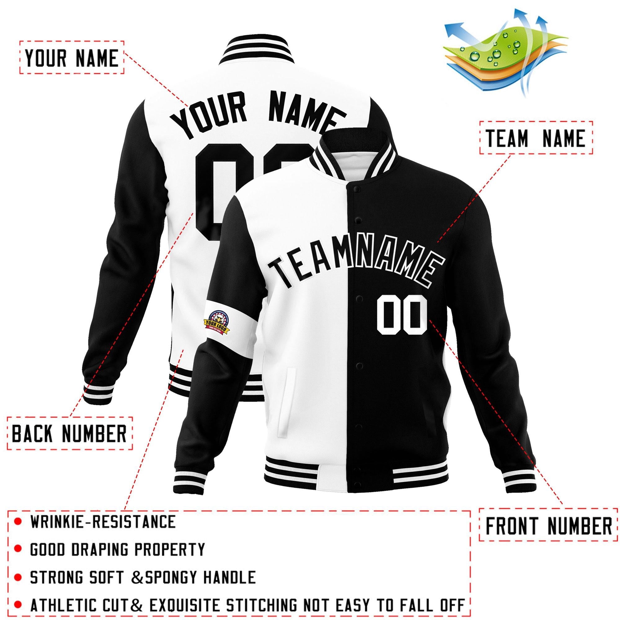 Custom White Black Letterman Two Tone Full-Snap Split Fashion Jacket