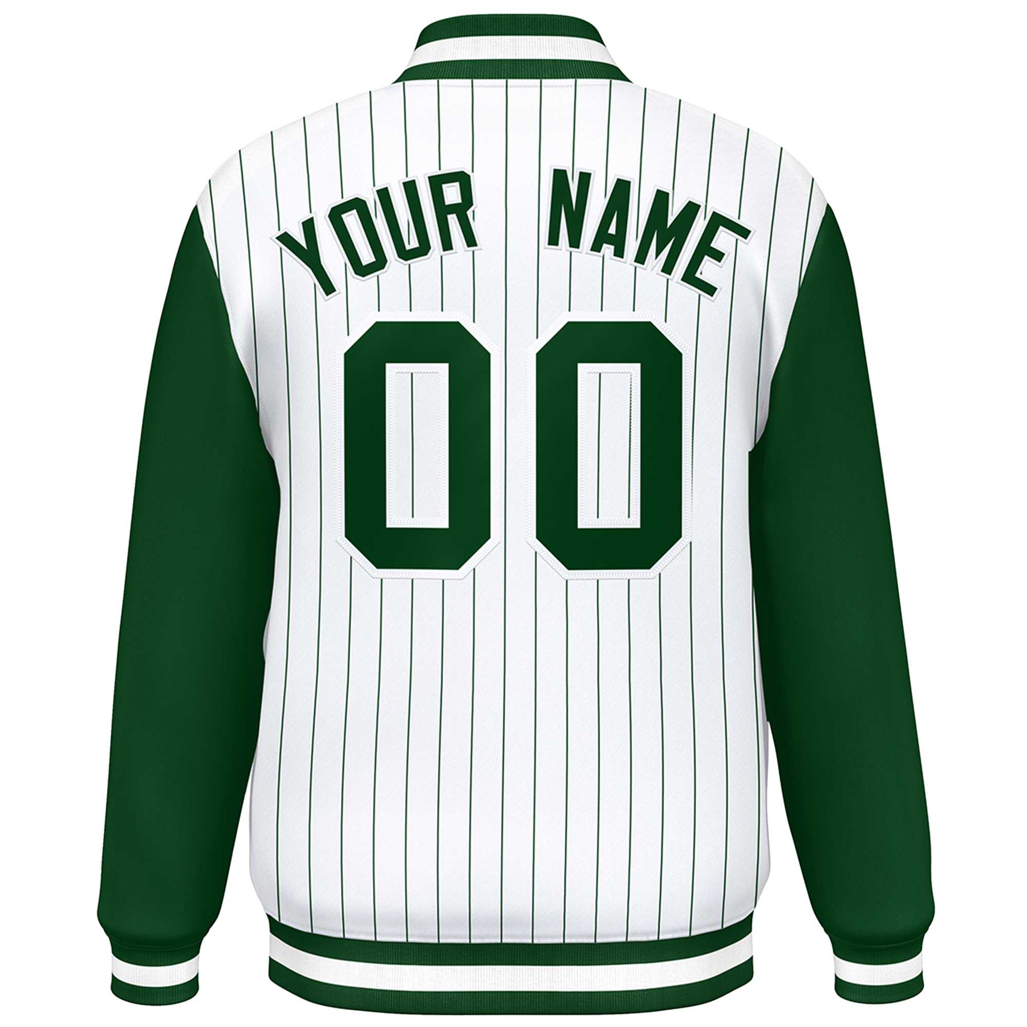 Custom White Green Stripe Fashion Bomber Varsity Jacket with Raglan Sleeves