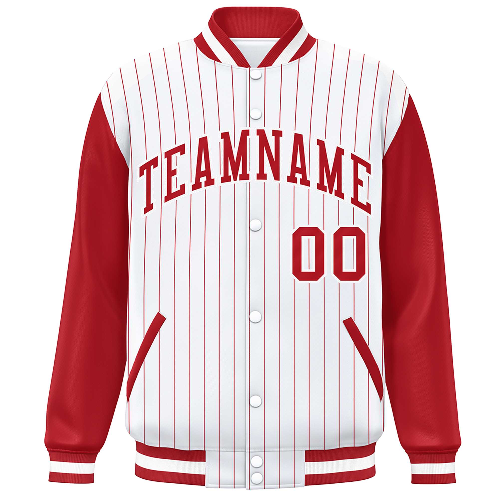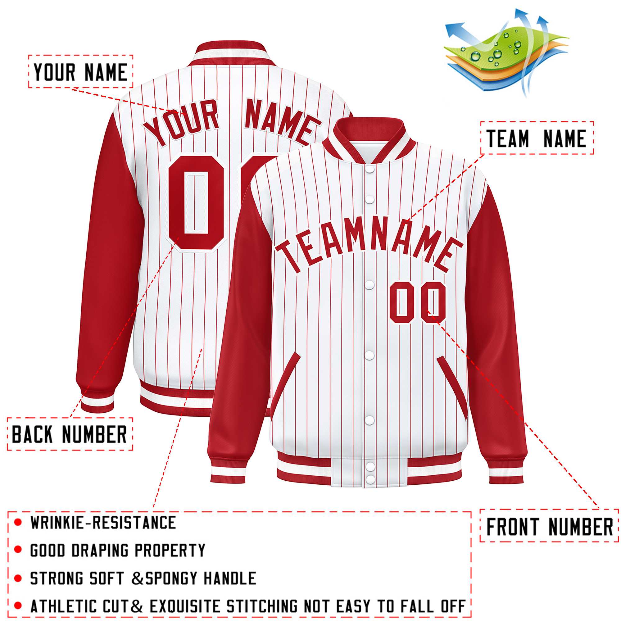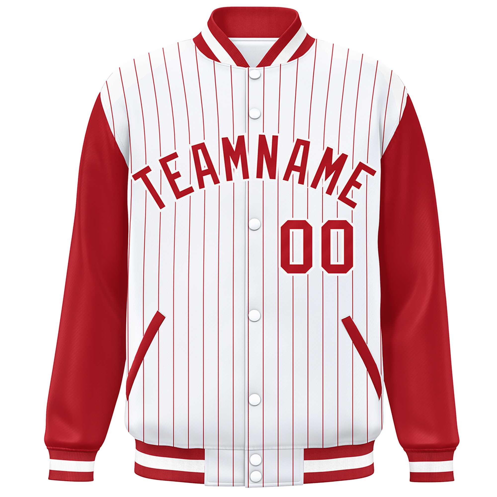 Custom White Red Stripe Fashion Bomber Varsity Jacket with Raglan Sleeves