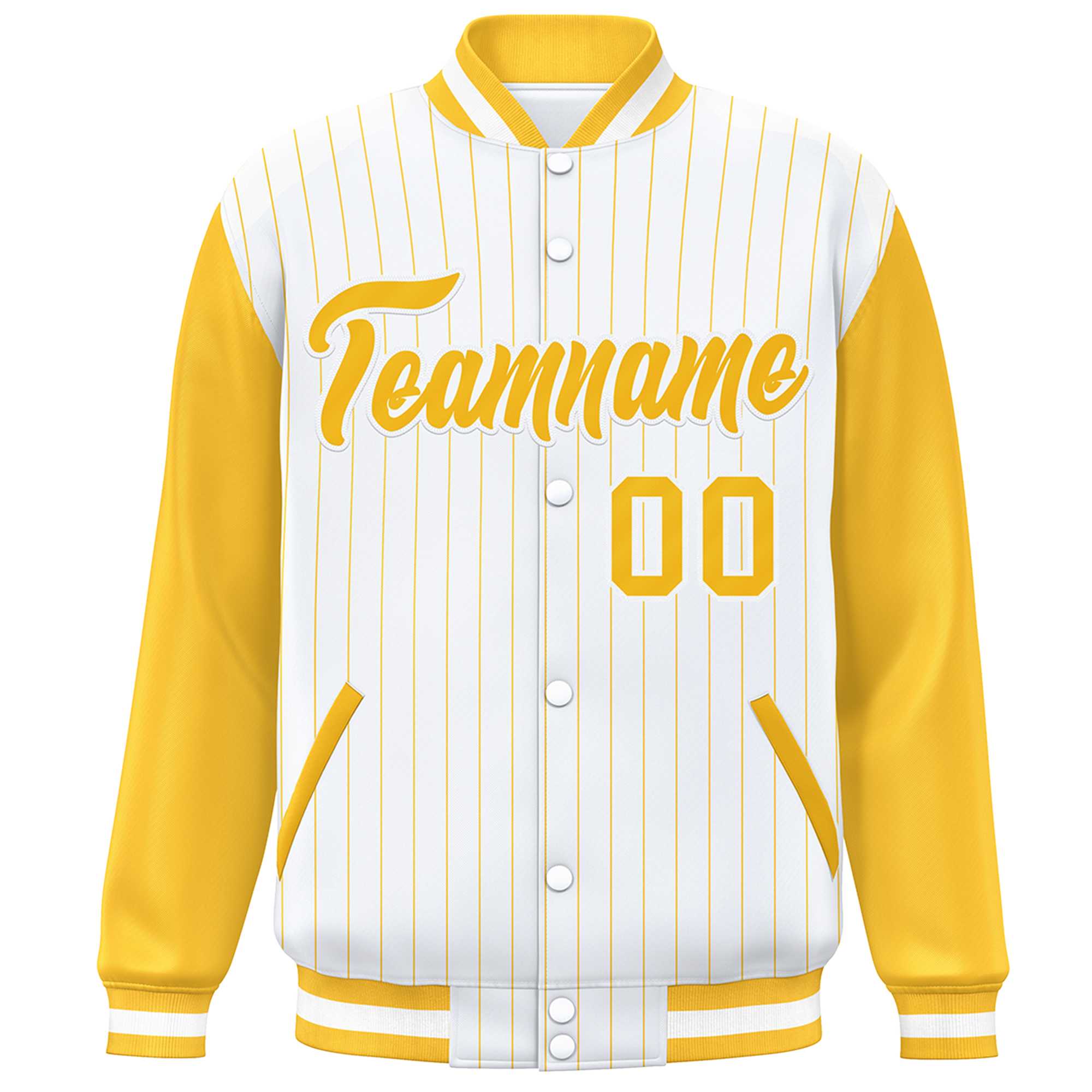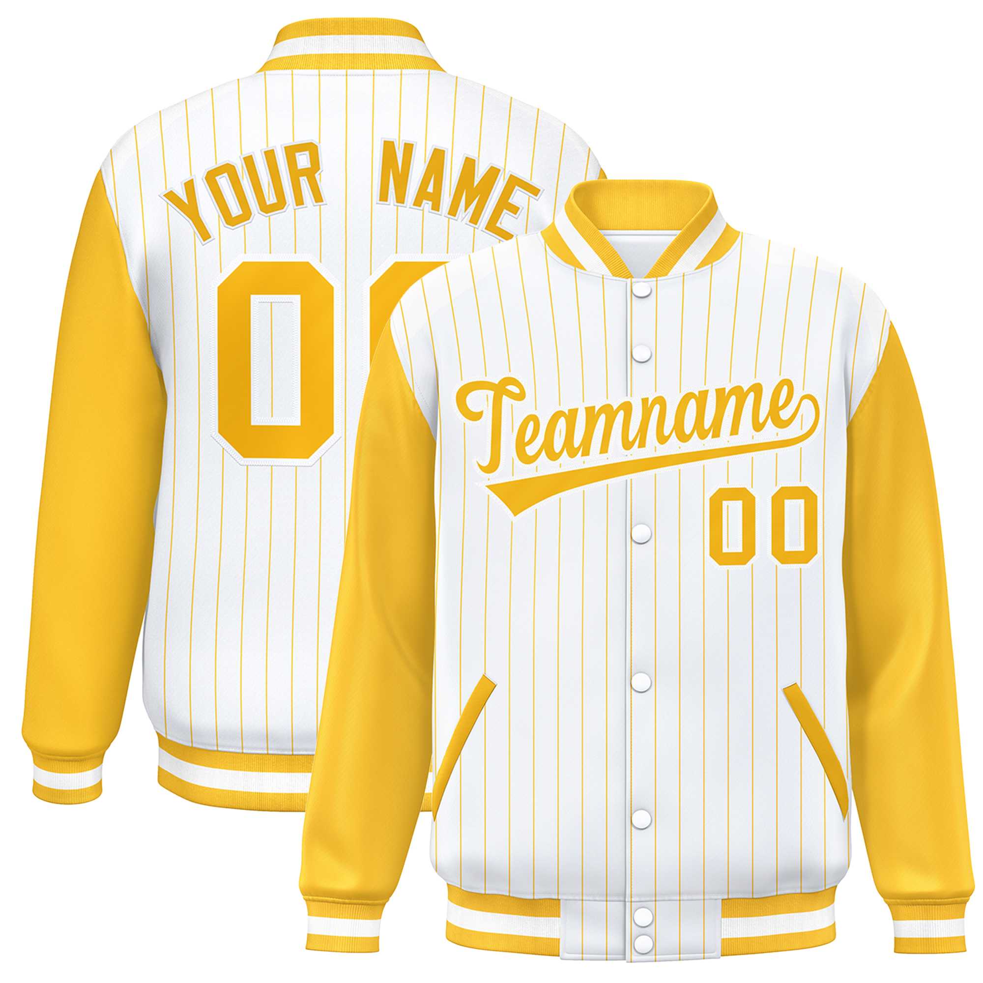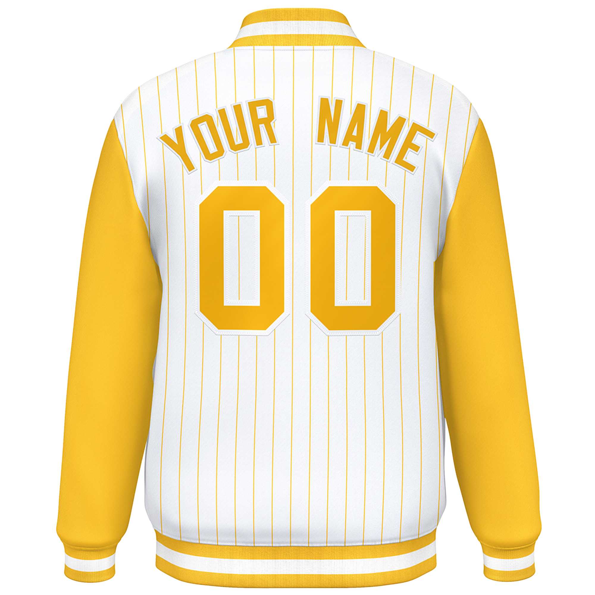 Custom White Gold Stripe Fashion Bomber Varsity Jacket with Raglan Sleeves