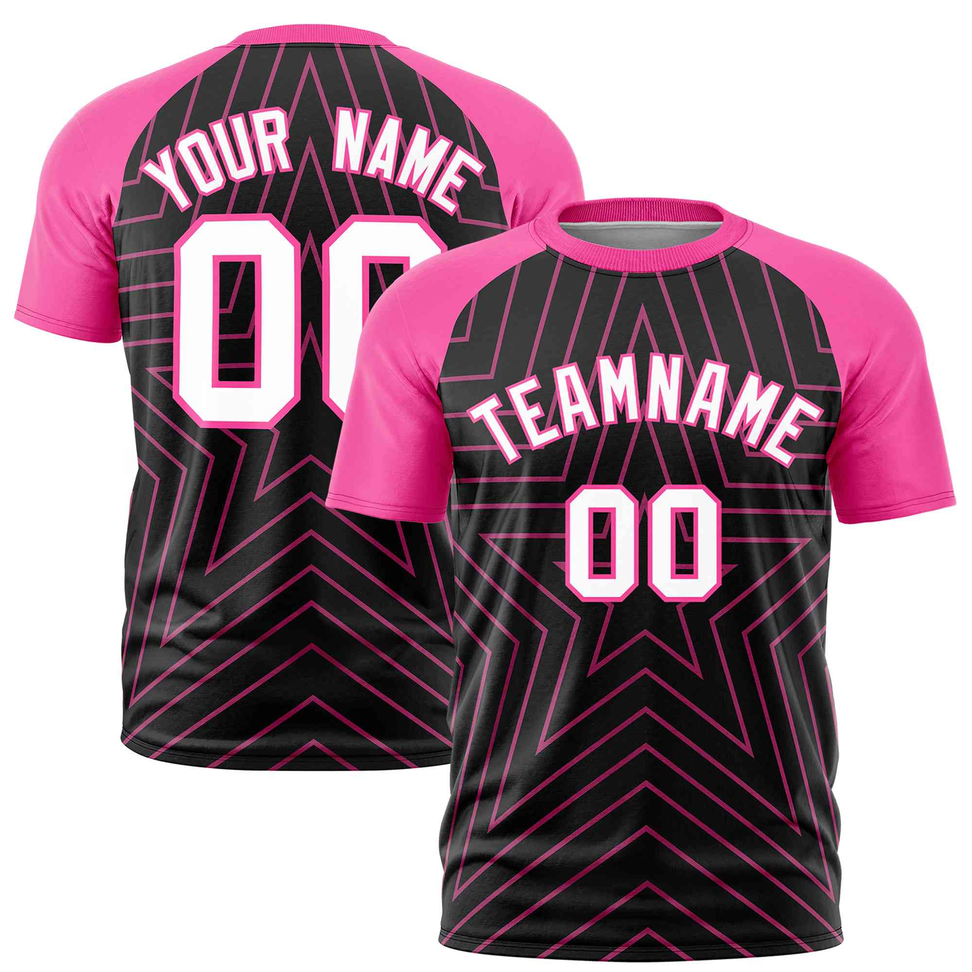 Custom Black Pink Personalized Star Pattern Raglan Sleeves Performance T-Shirt