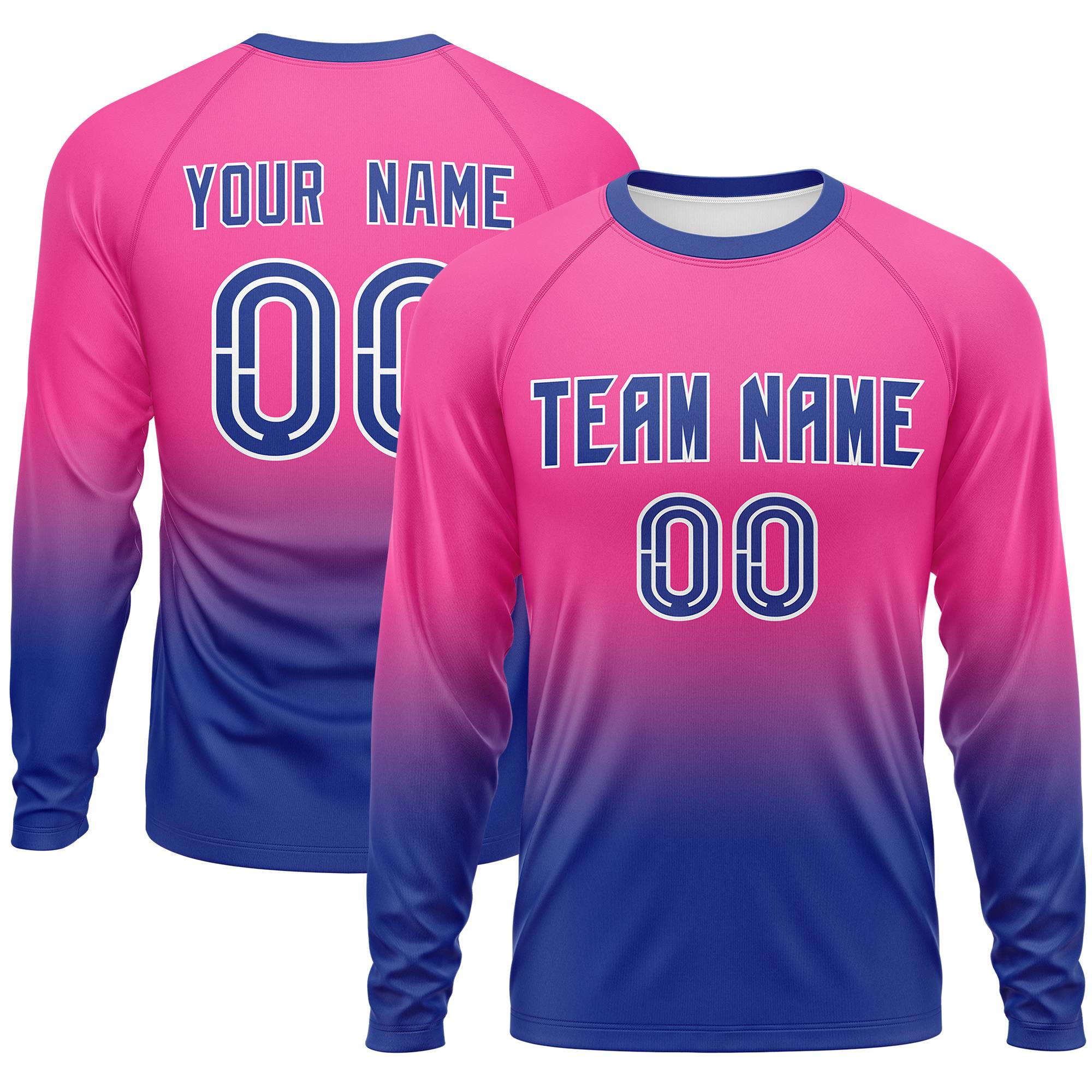 Custom Pink-Royal Gradient Fashion Design Long Sleeve Performance T-Shirt