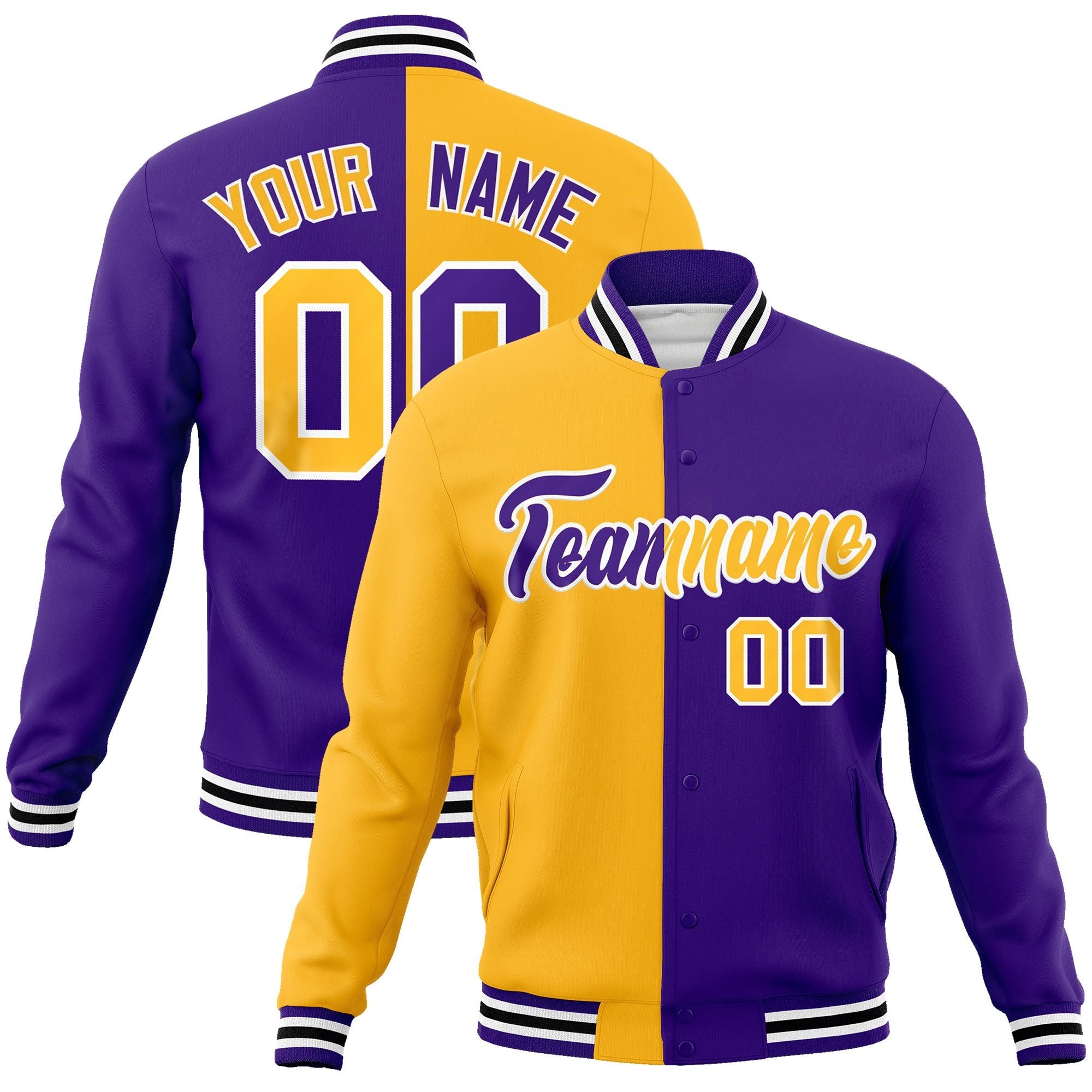 Custom Yellow Purple-Purple Varsity Full-Snap Letterman Two Tone Split Fashion Jacket