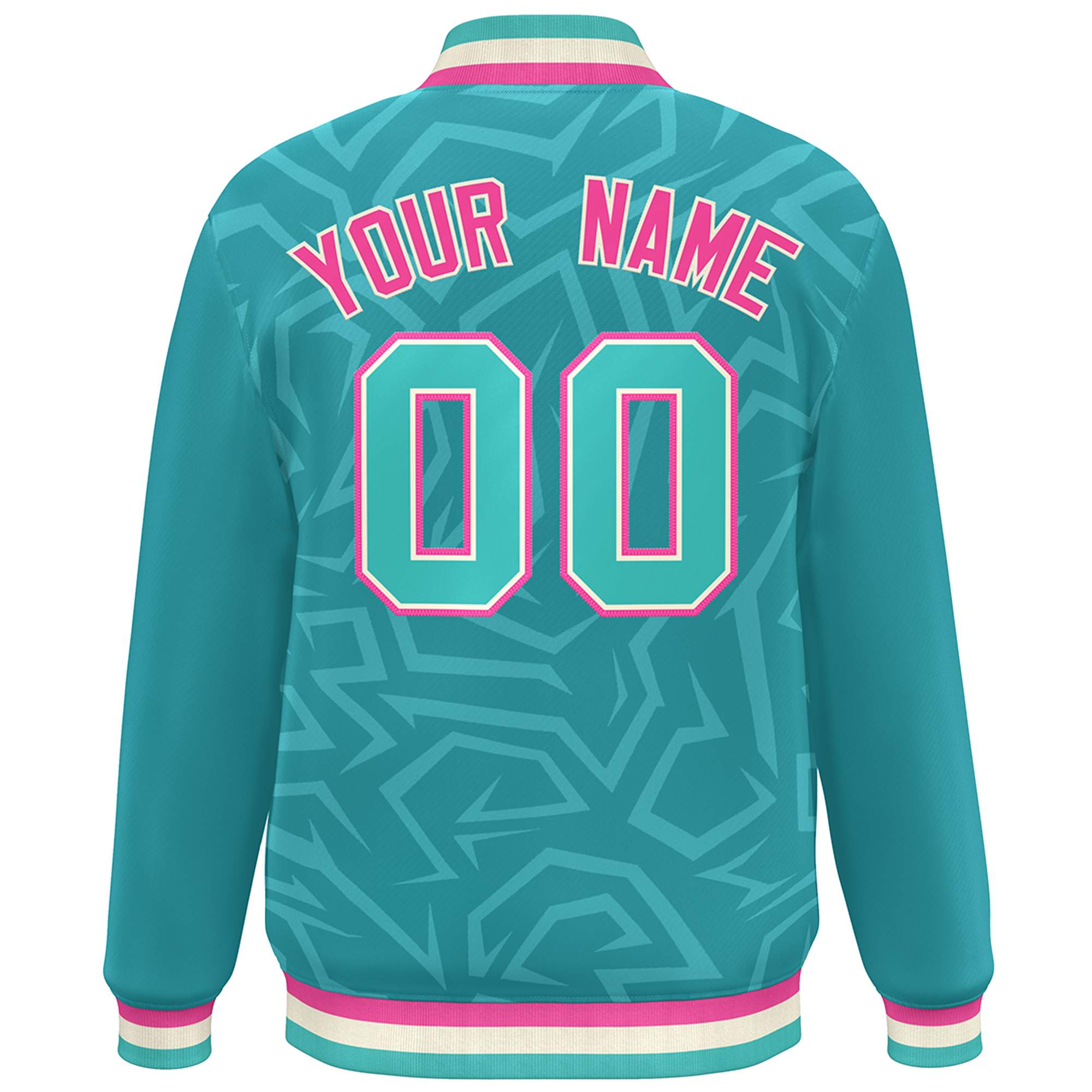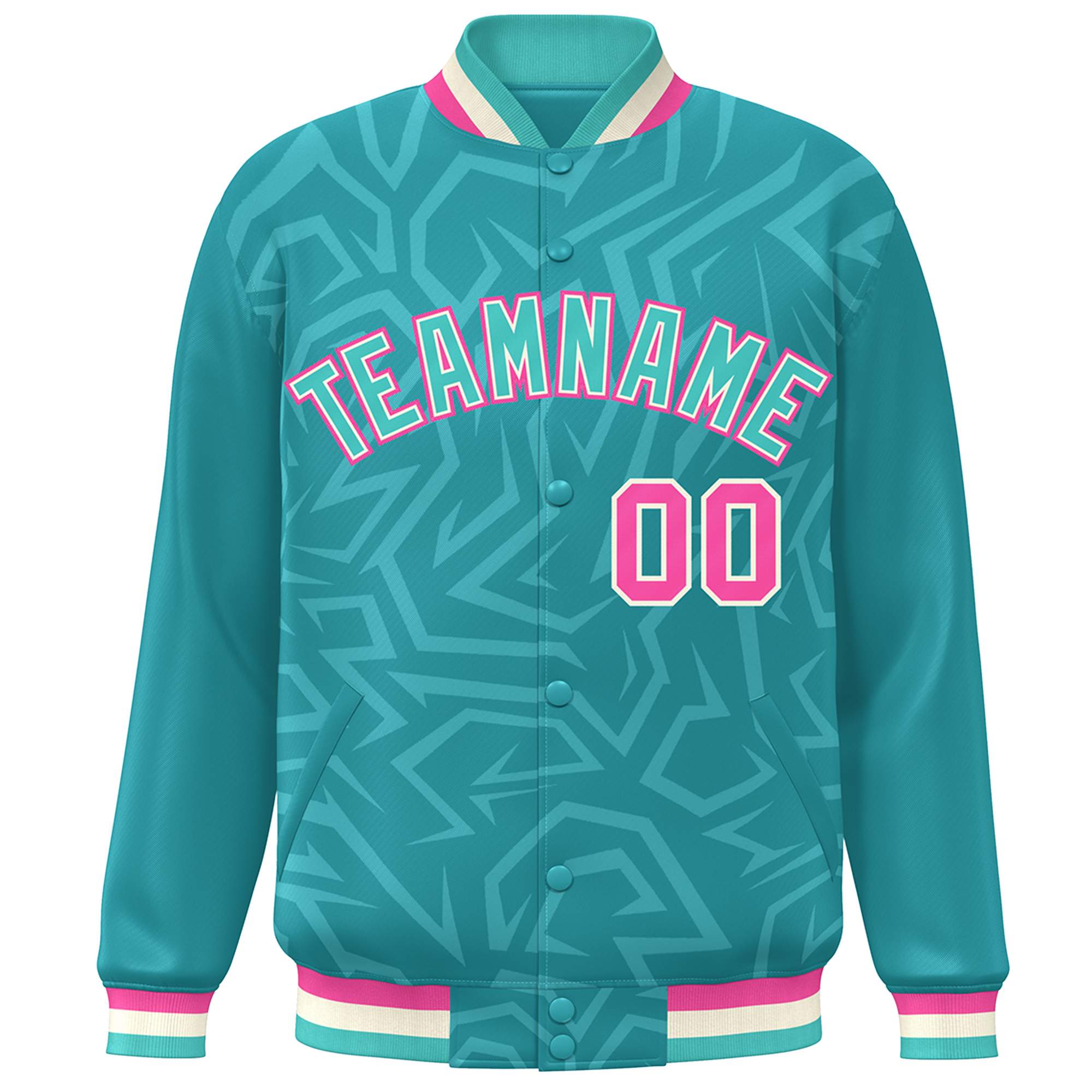 Custom Aqua Cream-Pink Stripe Graffiti Pattern Varsity Full-Snap Jacket