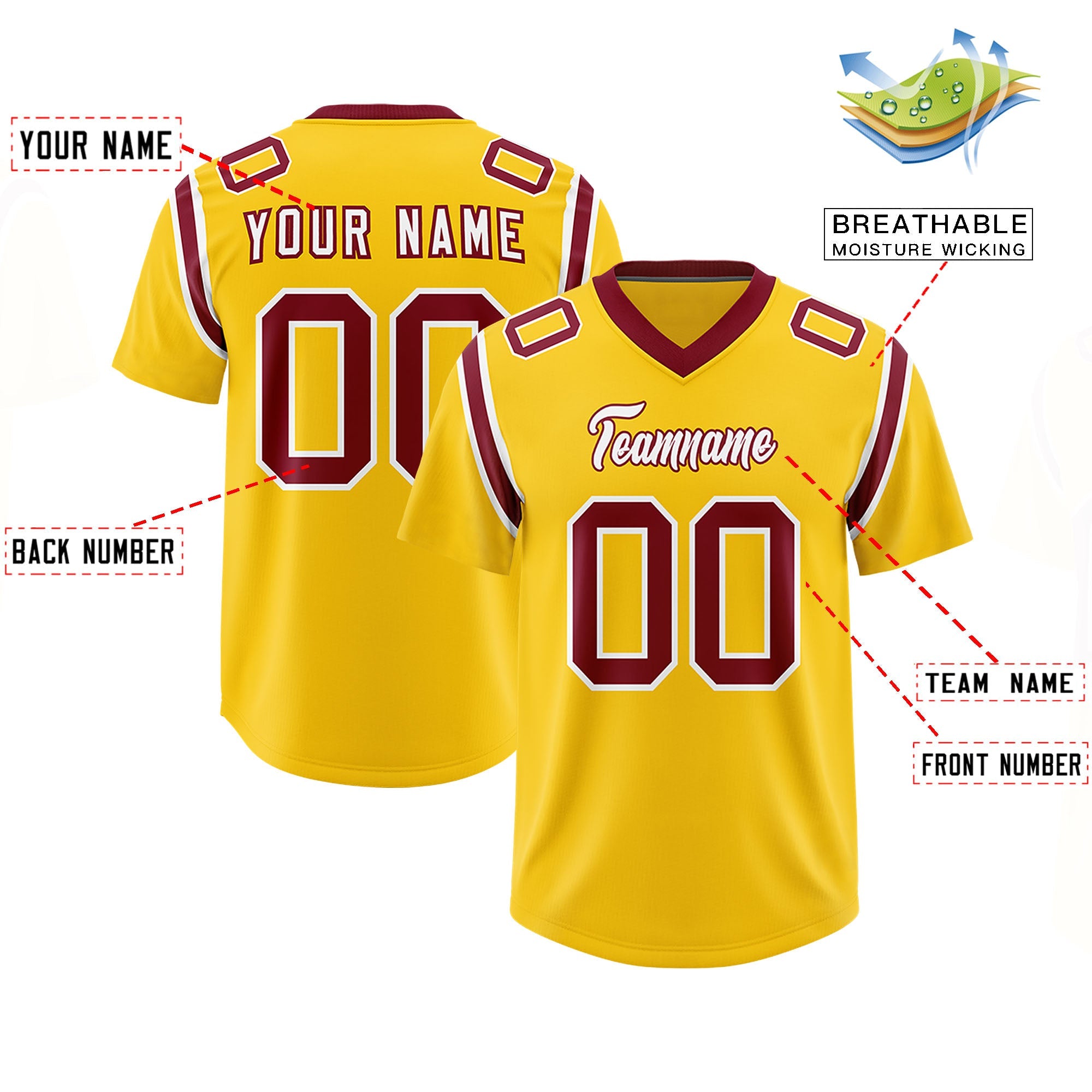 Custom Gold Personalized Shoulder Cut Two-Tone Authentic Football Jersey